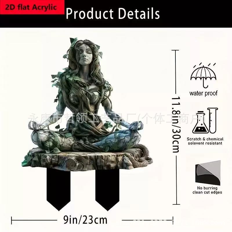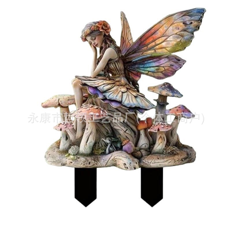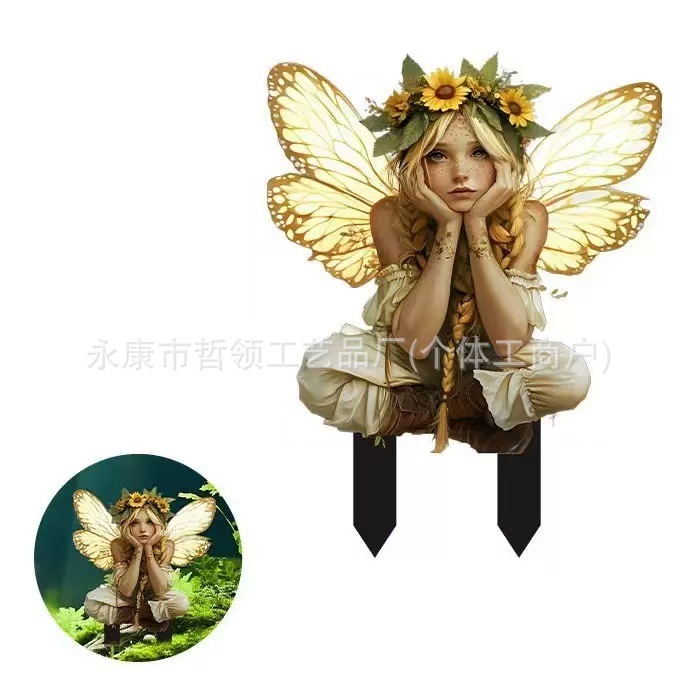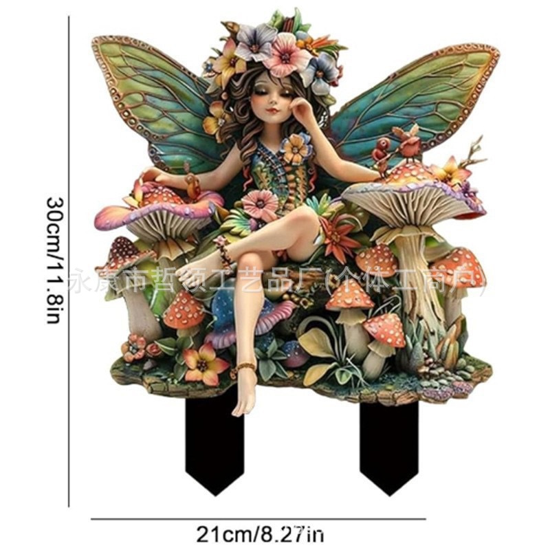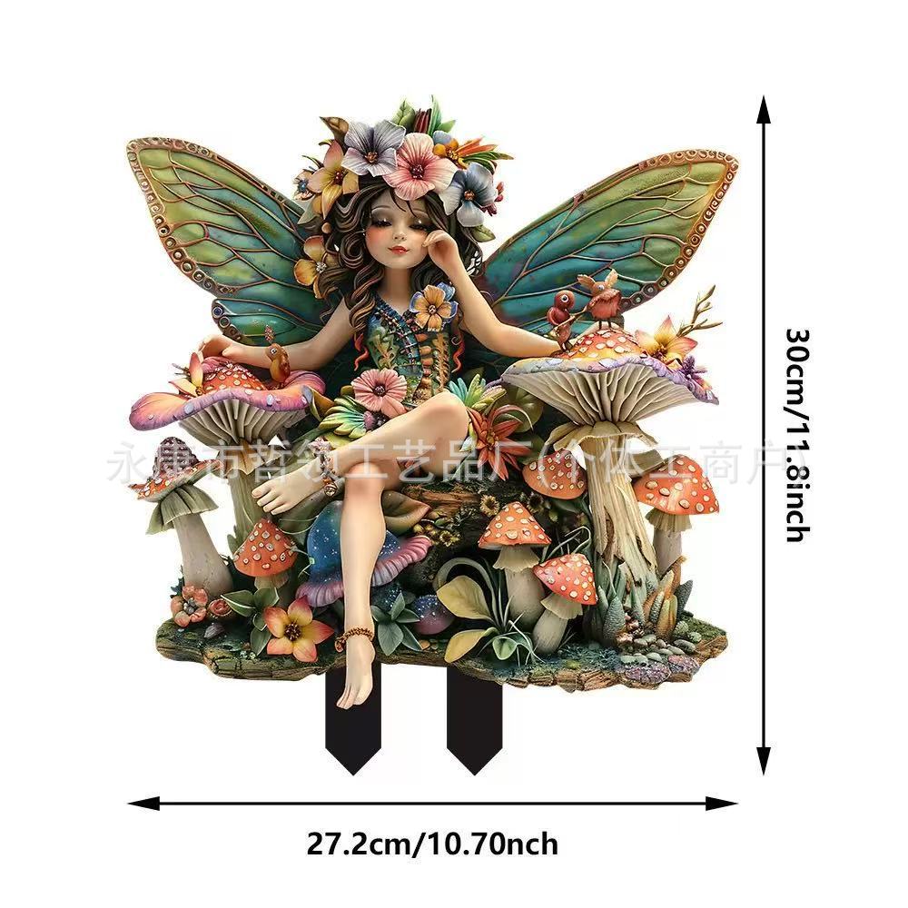 국경 간 보헤미안 요정과 고양이 화분 정원 장식 장식품 아크릴 야외 정원 장식 바닥 삽입