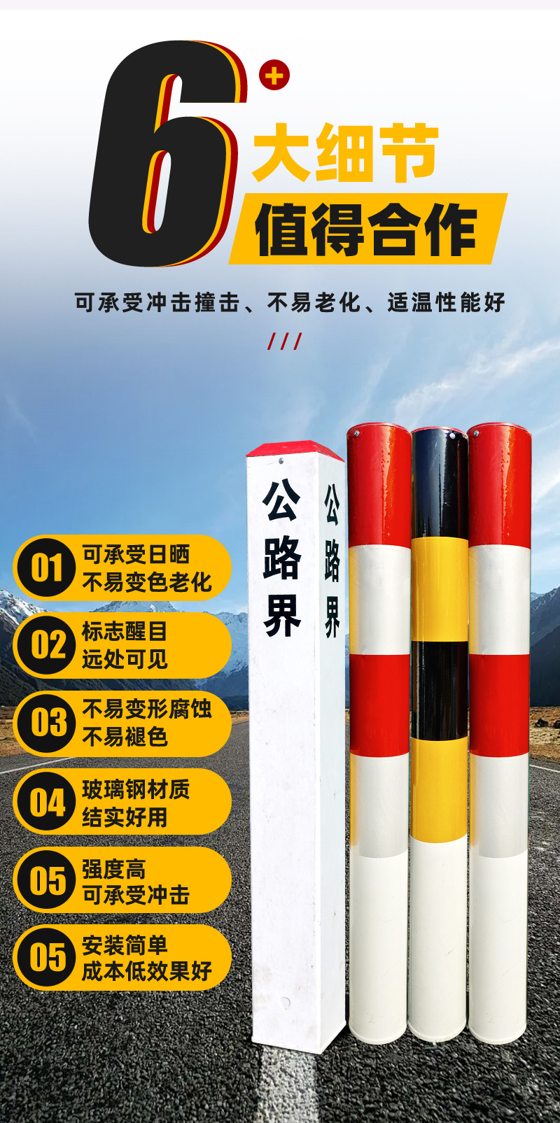 유리 섬유 0m 기둥 마일스톤 도로 교차로 지하 반사 빨간색과 흰색 경고 기둥 국가 및 지방 도로 국경 표시 기둥스토어 가기