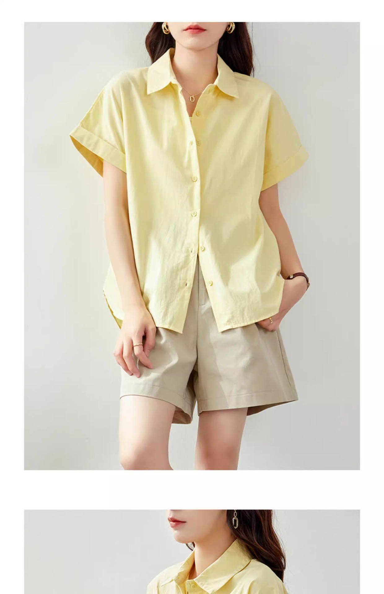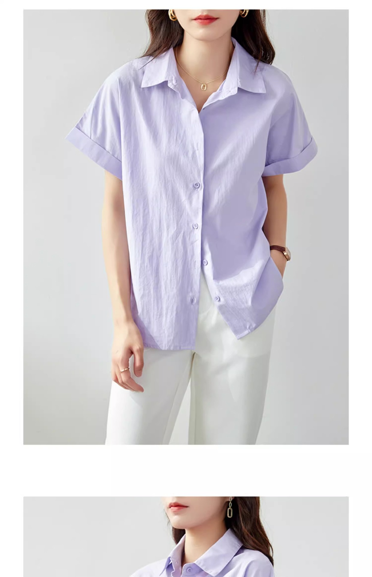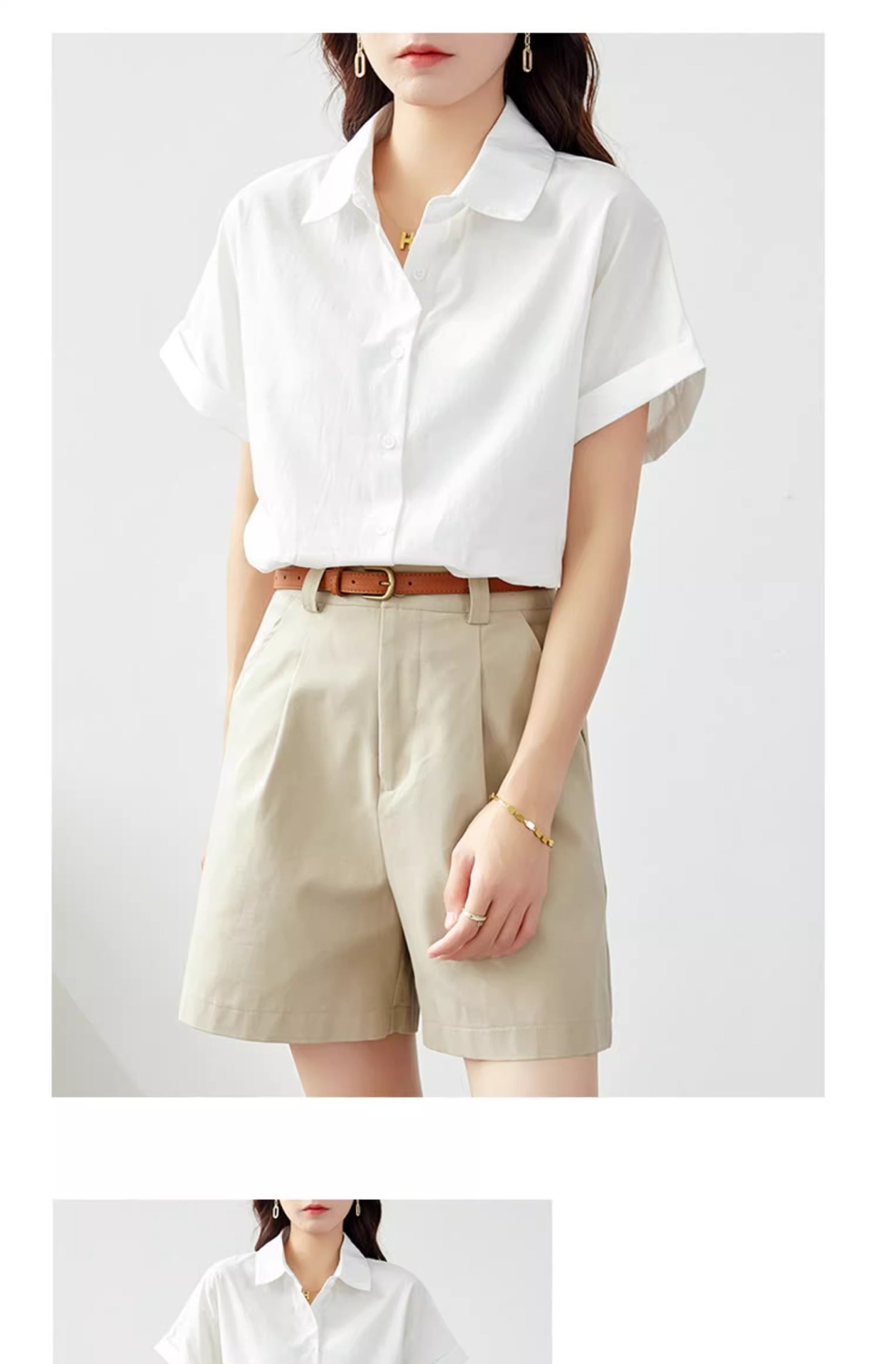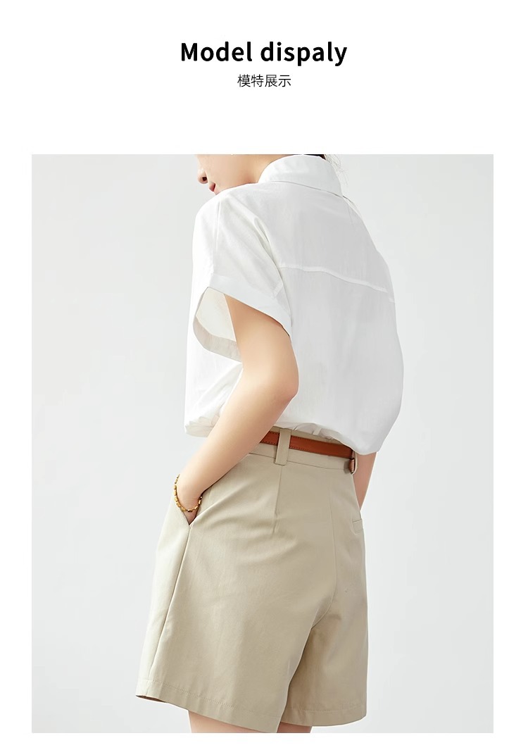 코튼 여자 반소매 화이트 셔츠 여자 2025 뉴 화이트 셔츠 프로 통근 여성 여름 반소매 탑스토어 가기