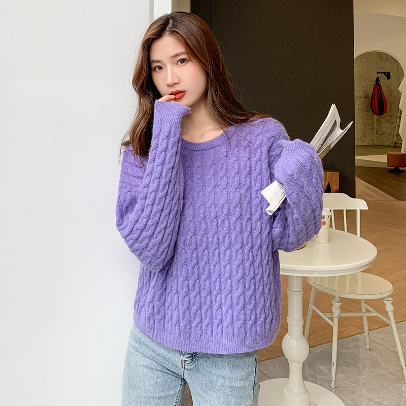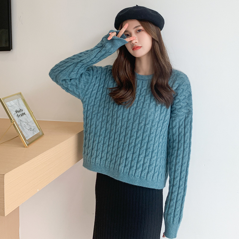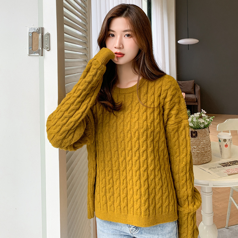 새로운 여성 의류 봄과 가을 한국 스타일 트위스트 라운드 넥 느슨한 게으른 스타일 스웨터 재킷 니트 베이스 셔츠 클리어런스스토어 가기