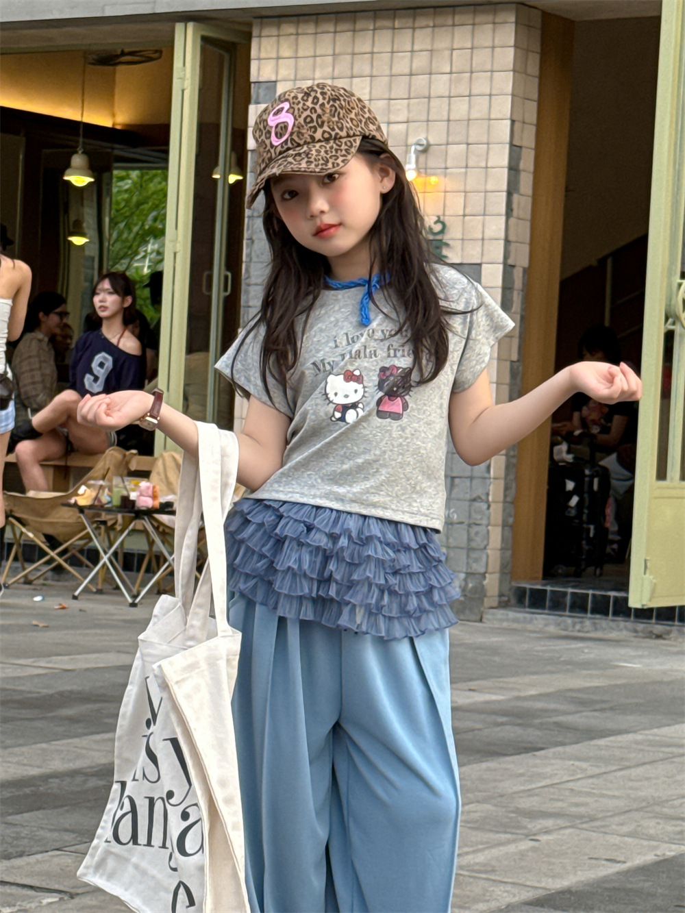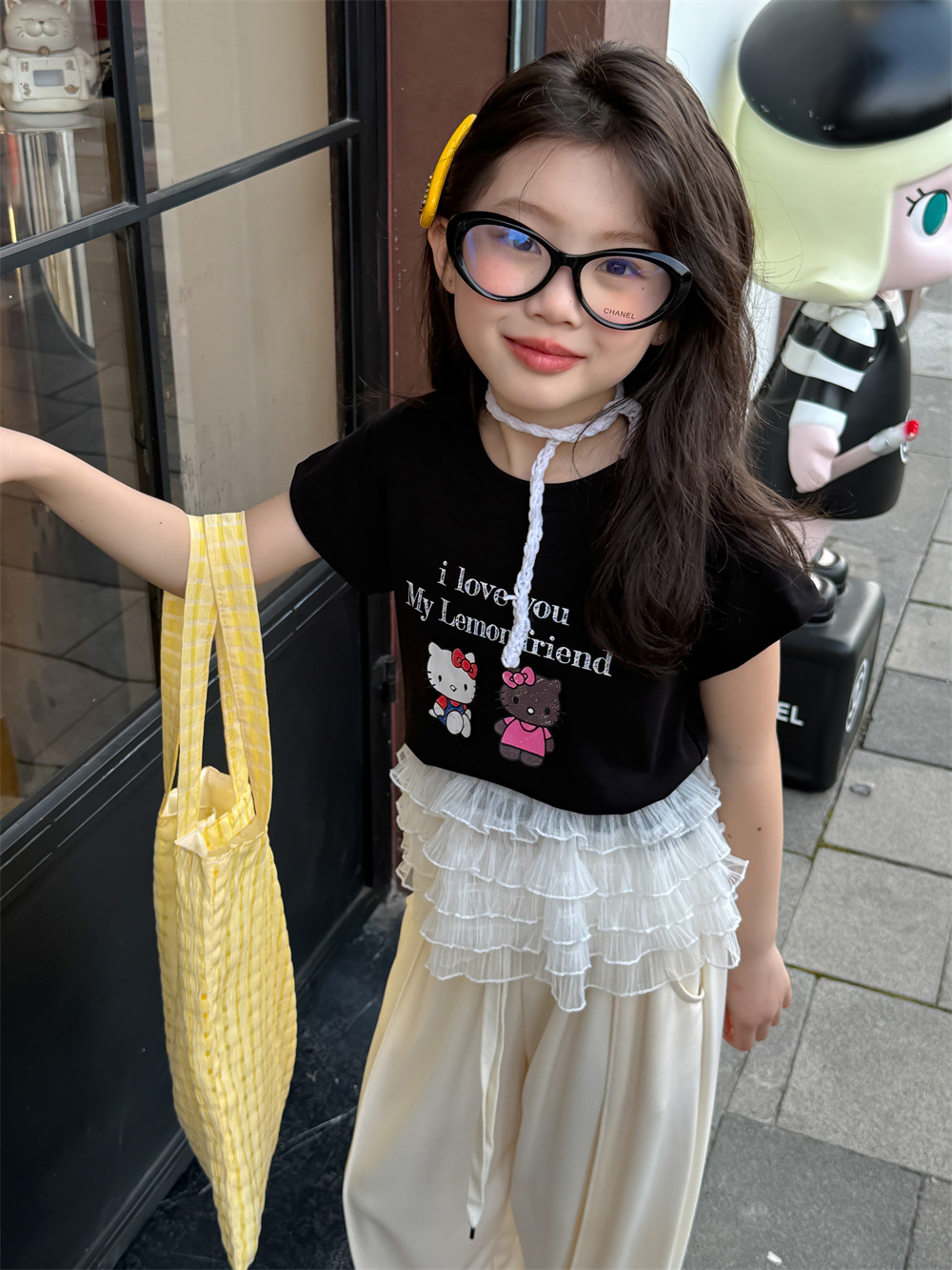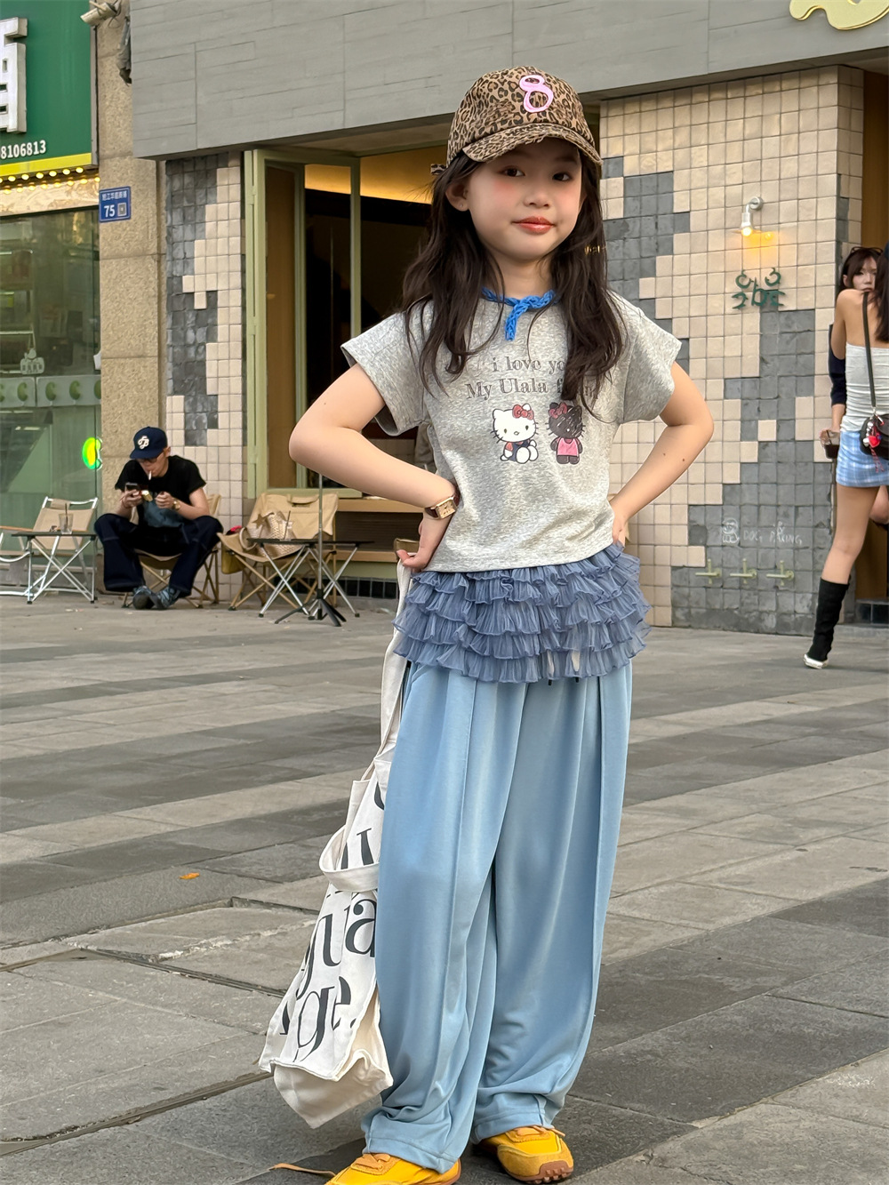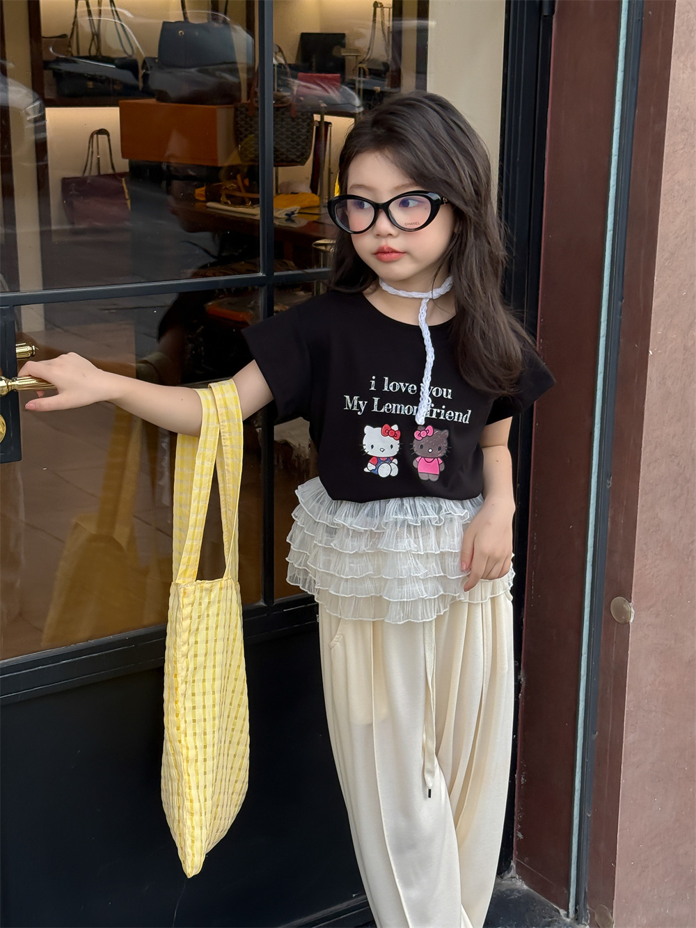꽃과 어린이 의류 소녀 티셔츠 2025 여름 새로운 KT 고양이 만화 인쇄 짧은 소매 면화 통기성 탑 조수스토어 가기