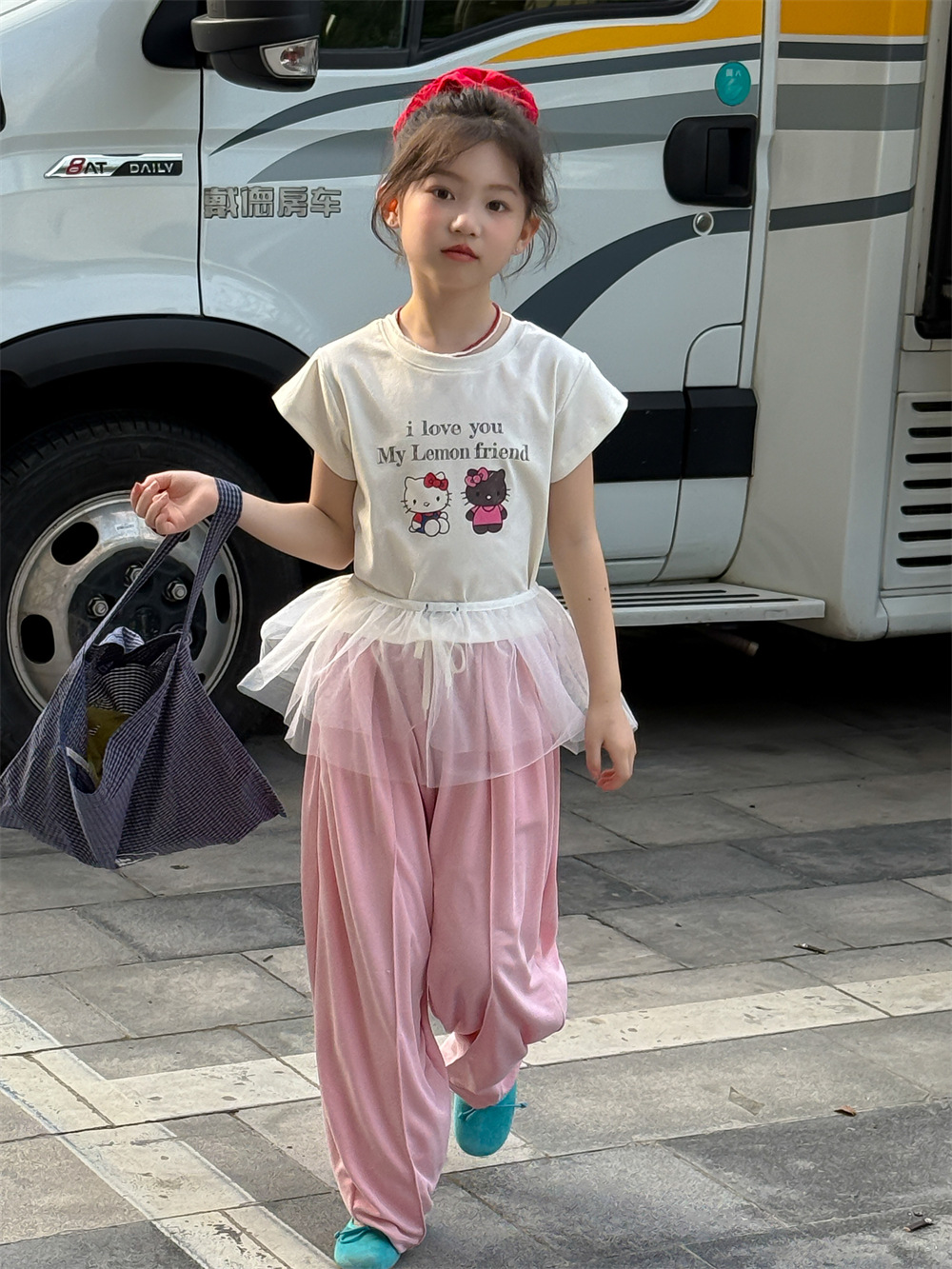 꽃과 어린이 의류 소녀 티셔츠 2025 여름 새로운 KT 고양이 만화 인쇄 짧은 소매 면화 통기성 탑 조수