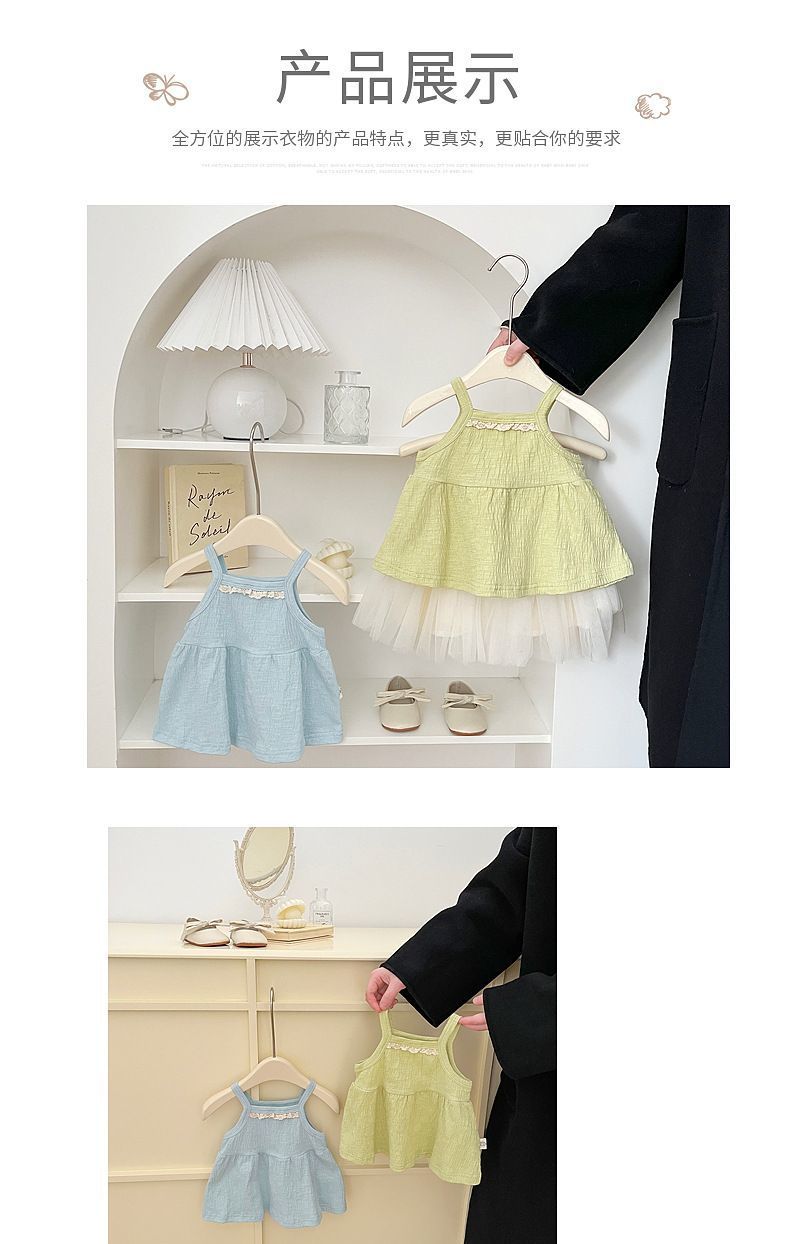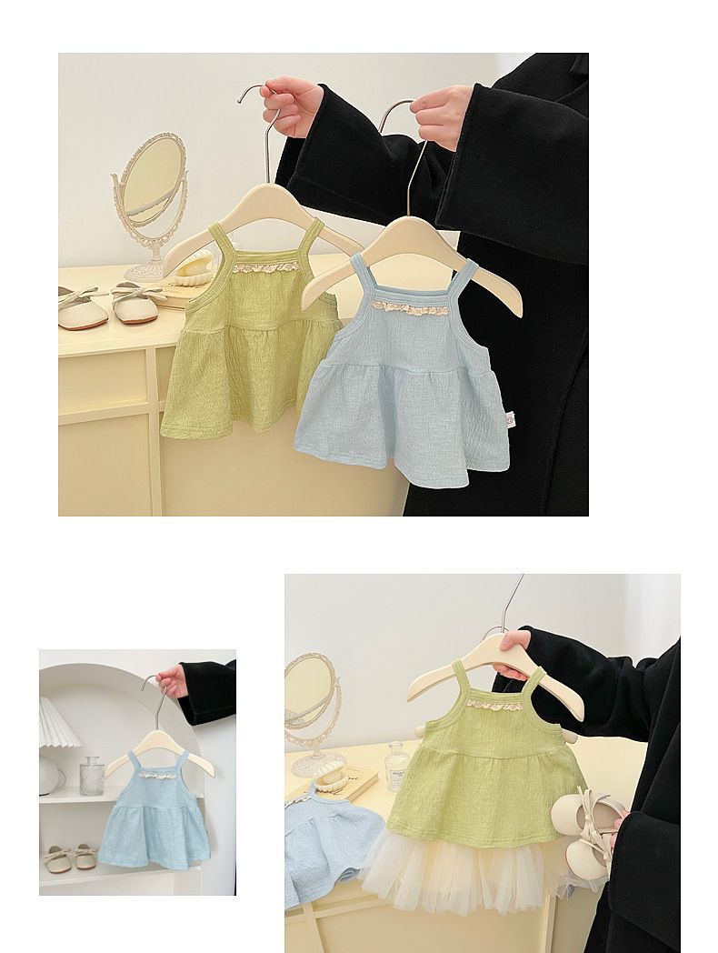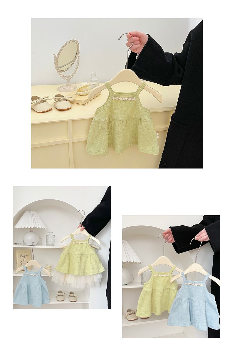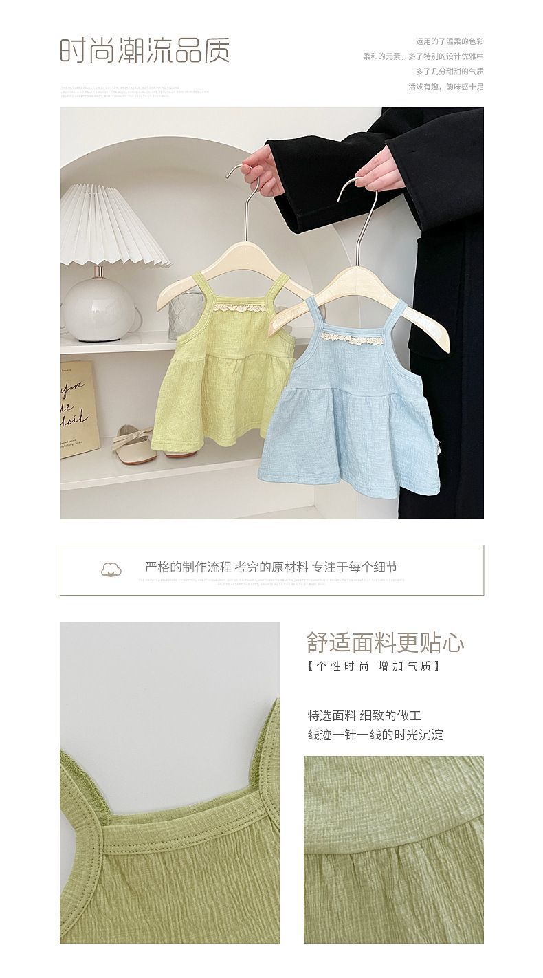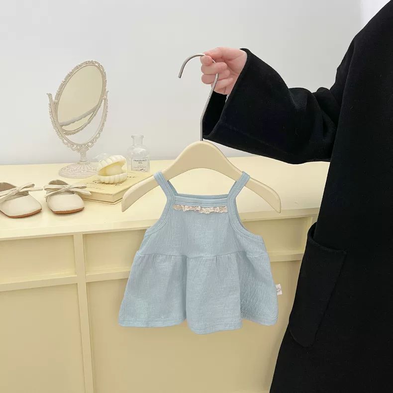 아기 여름 카미솔 2025 새로운 달콤한 여자 우아한 얇은 조끼 세련된 작은 소녀 외부 옷스토어 가기