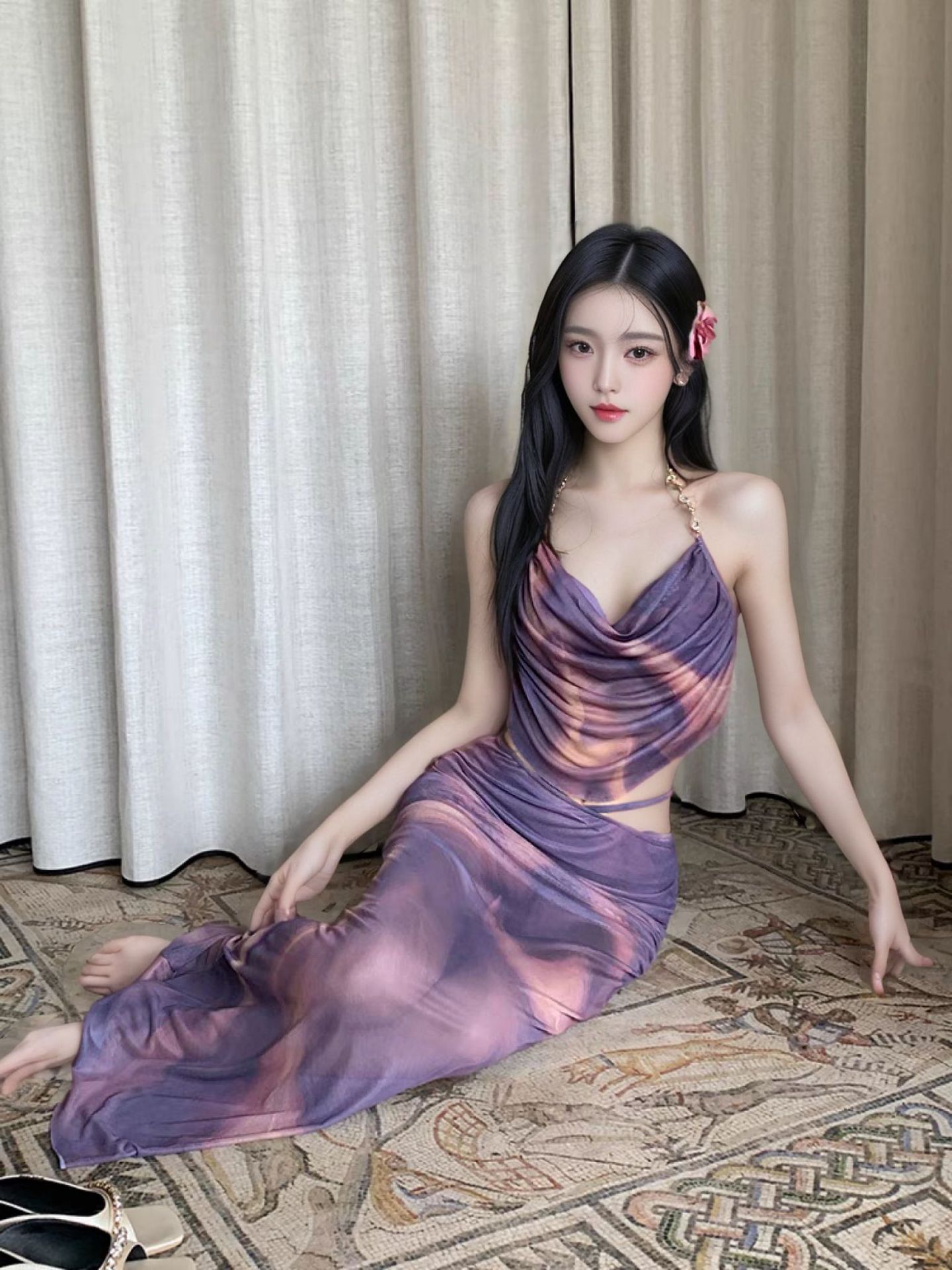 여성용 수영복 여름 핫 스타일 2025 새로운 섹시한 여신 등이없는 작은 가슴 언더 와이어 푸시 업 배 커버 슬리밍 롱 스커트