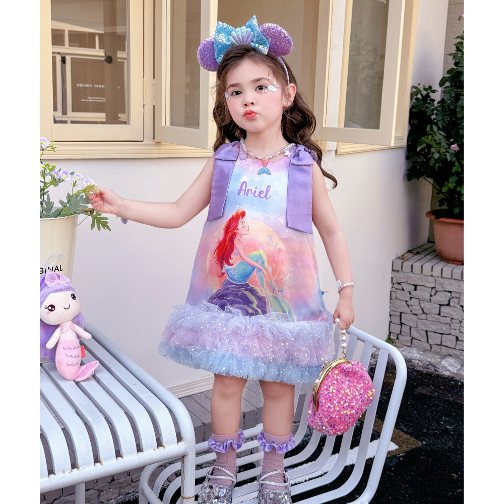 인어 공주 퍼프 메쉬 케이크 원피스 여름 새로운 만화 소녀의 활 판타지 달콤한 원피스