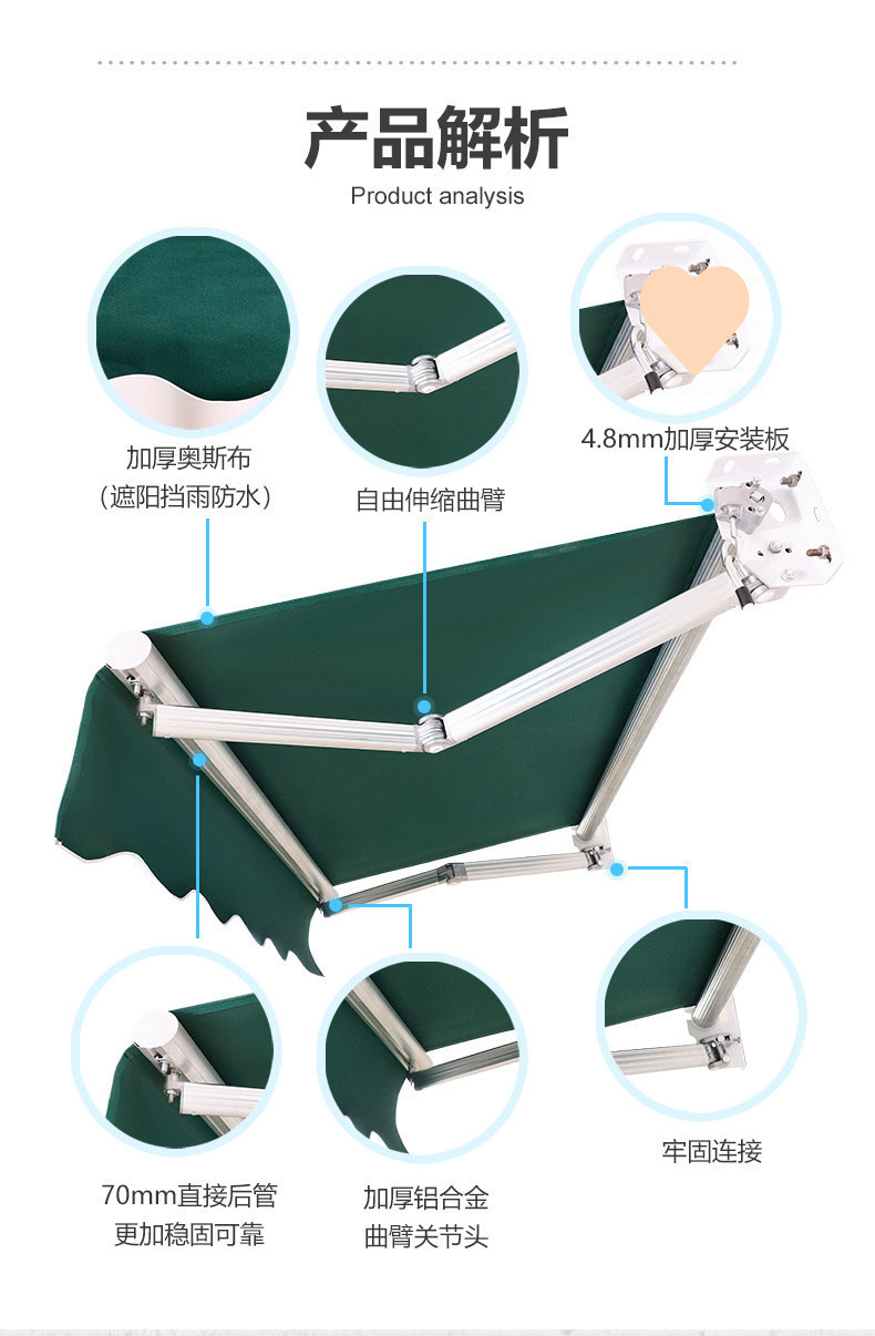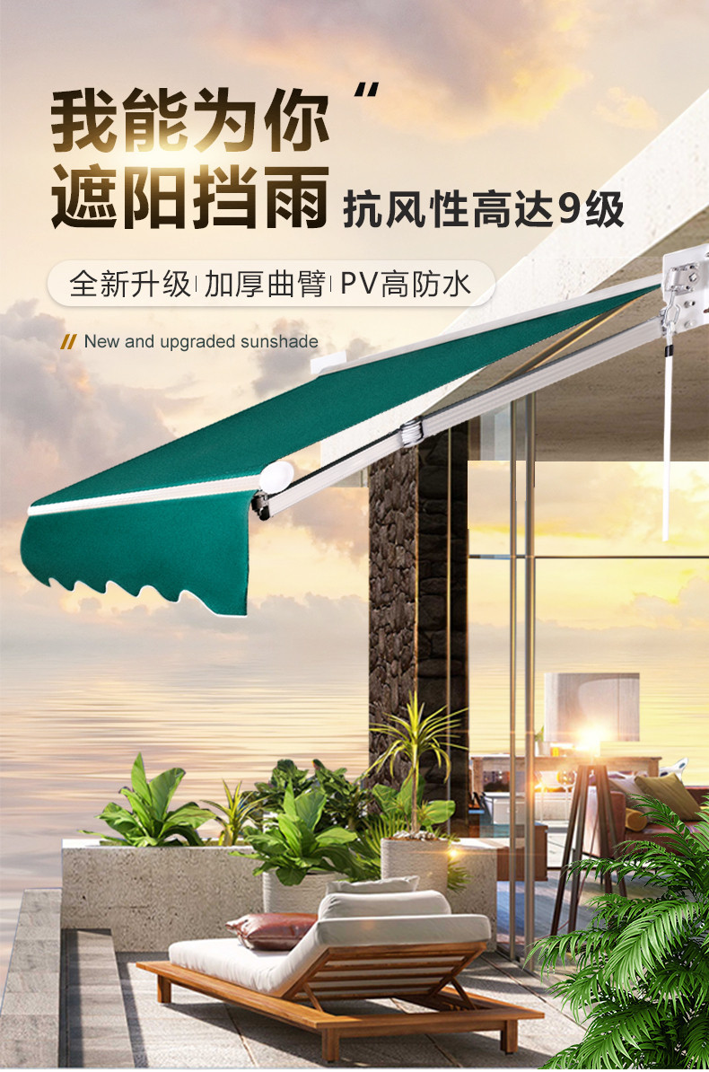 태양 그늘 접이식 개폐식 전기 수동 수축 태양 그늘 발코니 방수 야외 텐트 안뜰 차양