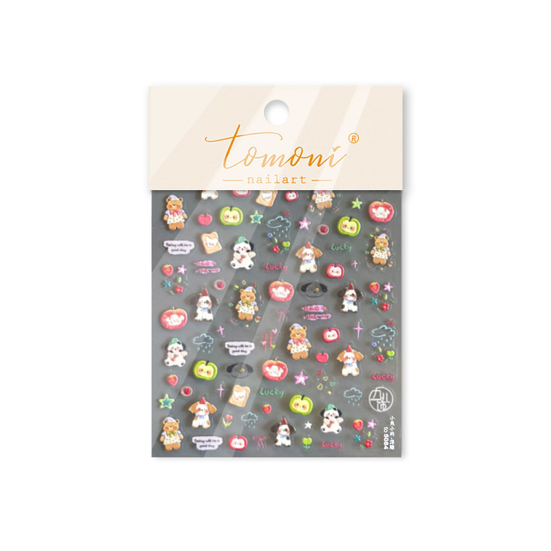 tomoni 네일 아트 양각 스티커 슈퍼 귀여운 간단한 만화 문구 휴대 전화 아트 네일 스티커 곰 강아지 혼합 스타일