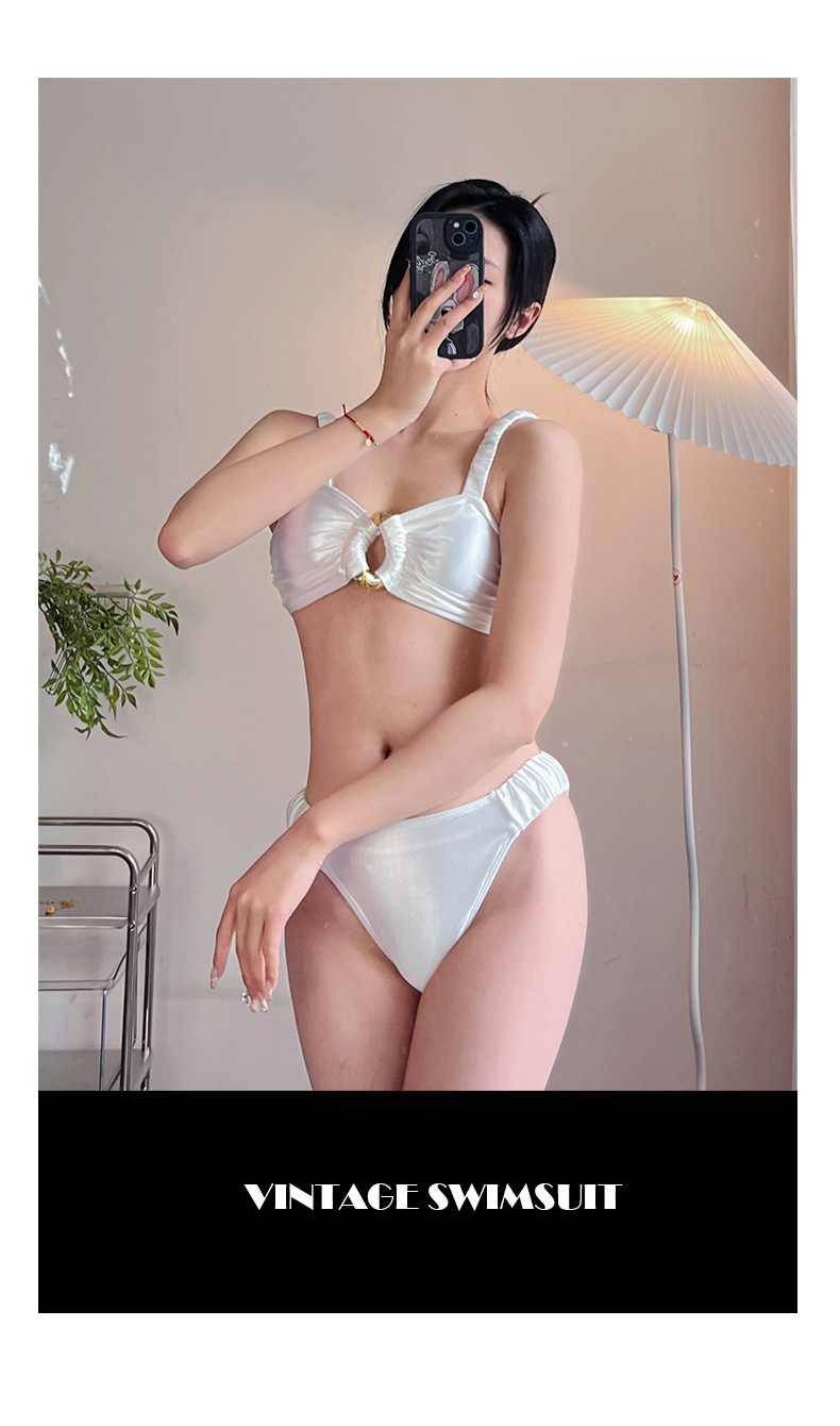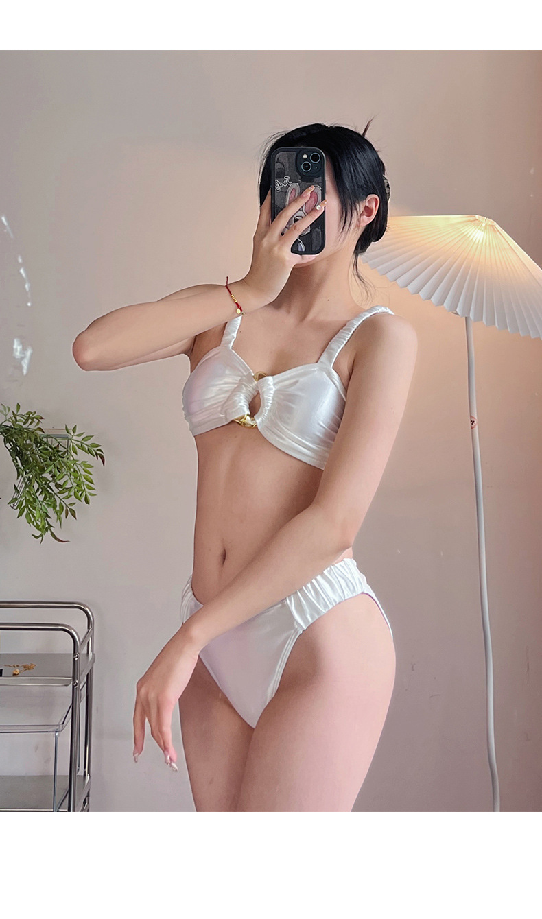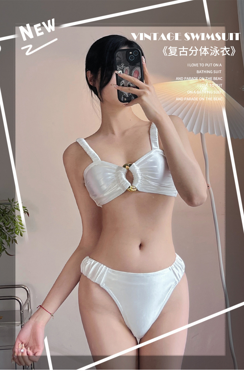 新款纯色泳衣女小胸聚拢性感高腰三角分体比基尼沙滩度假bikini