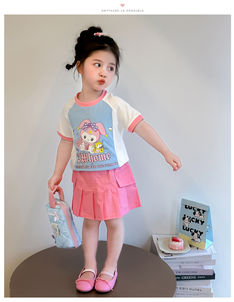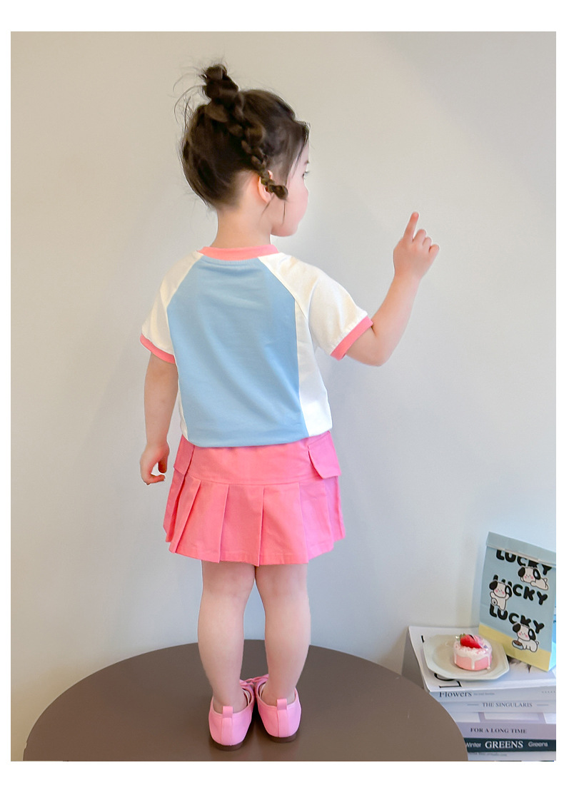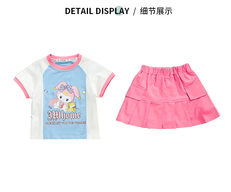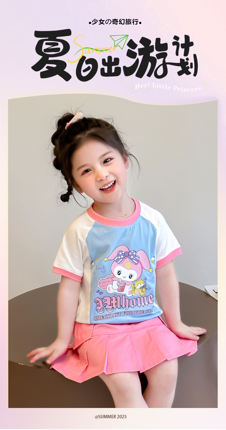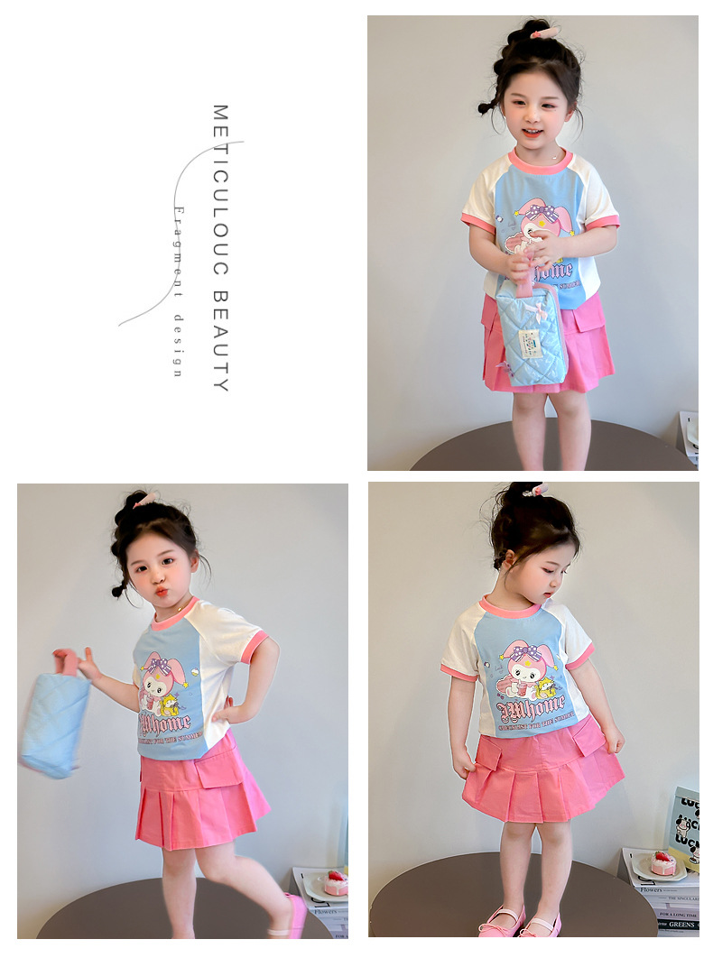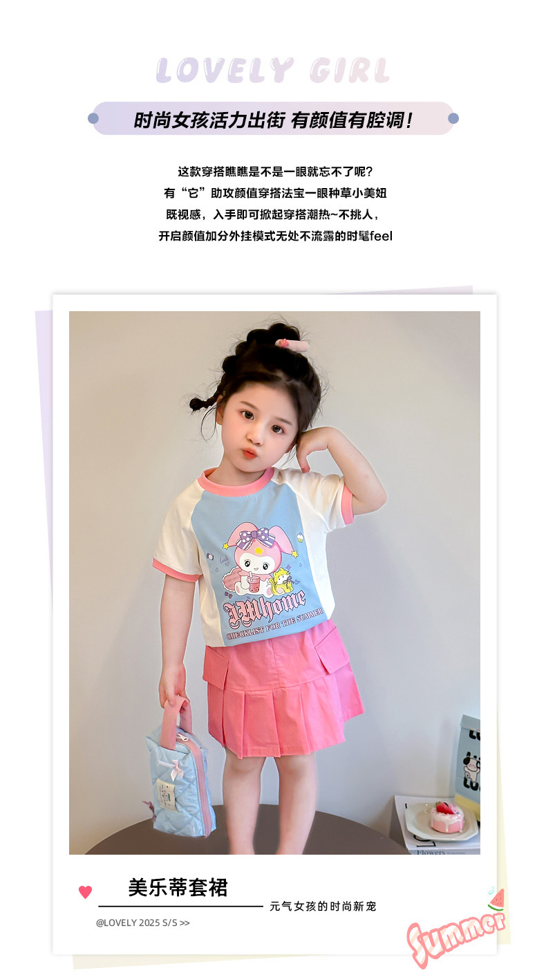 소녀들의 여름 원피스 샬롯 반팔 세트 2025 새로운 어린이 주름 치마 투피스 아기면 옷스토어 가기