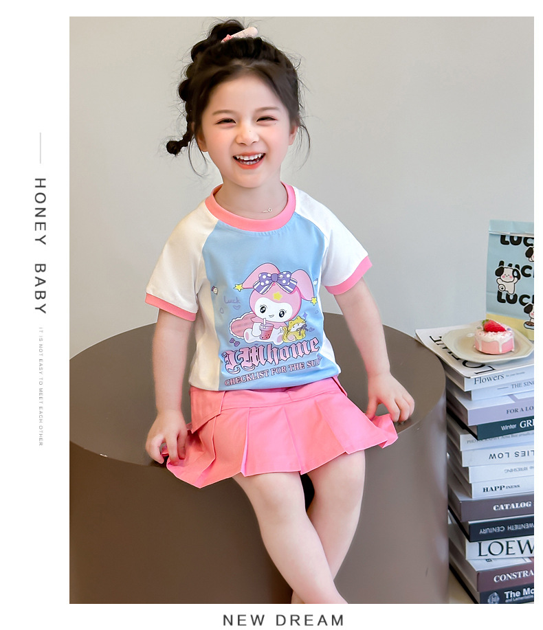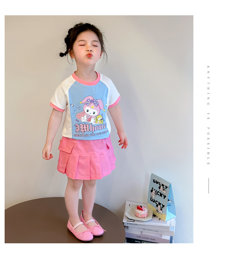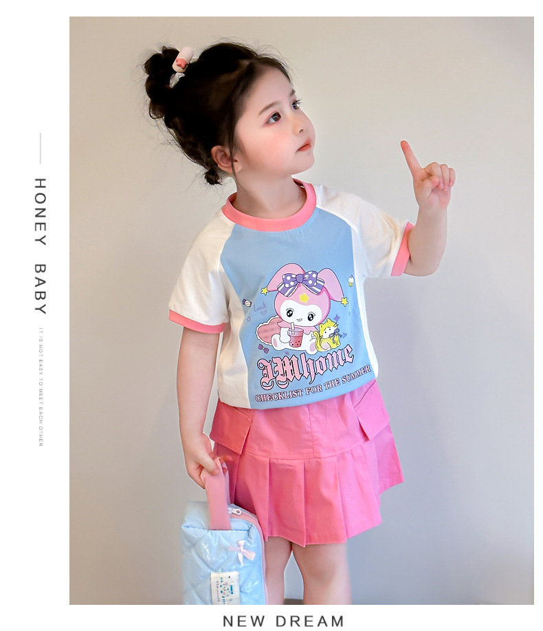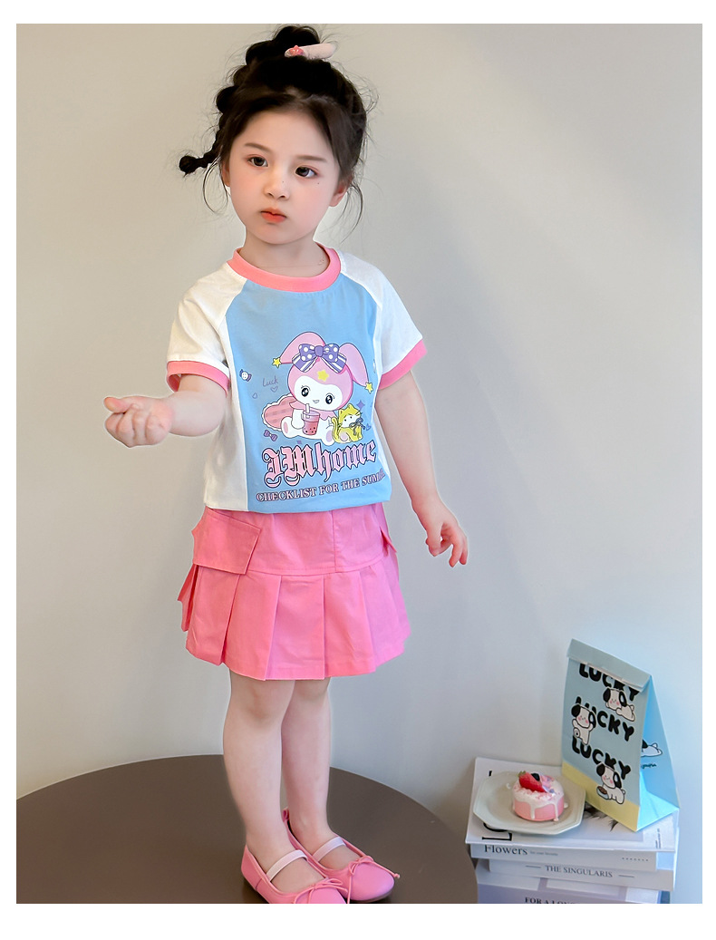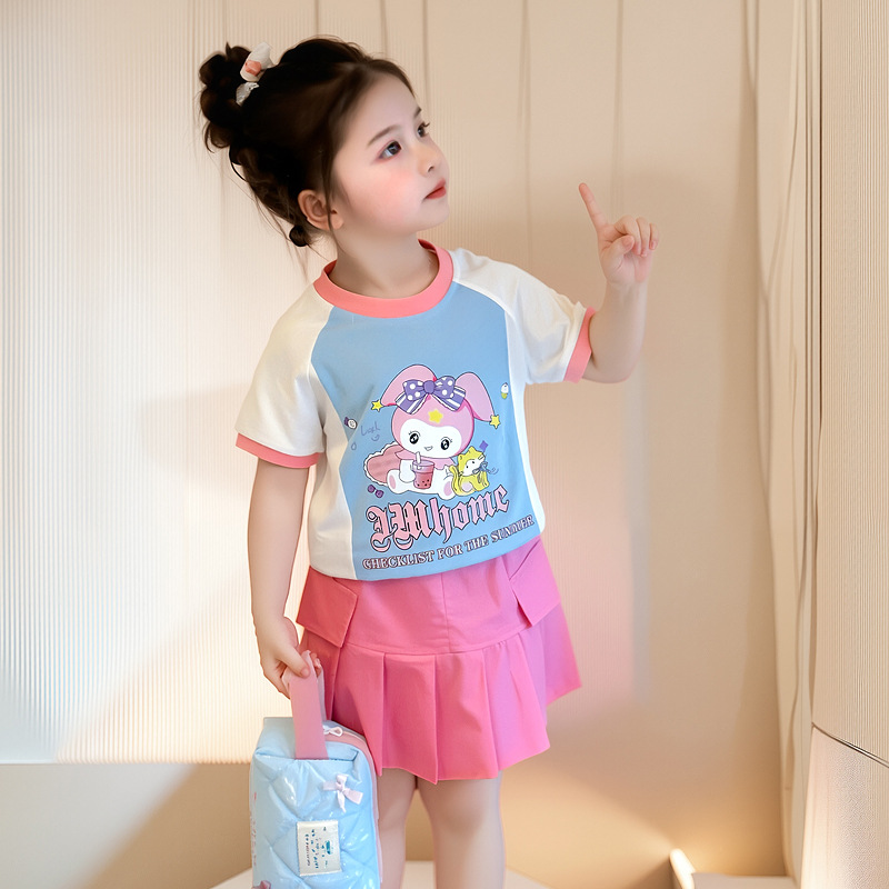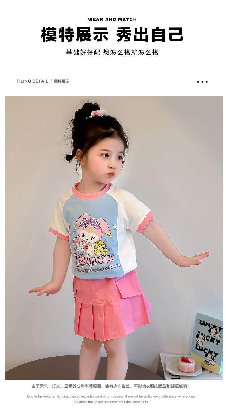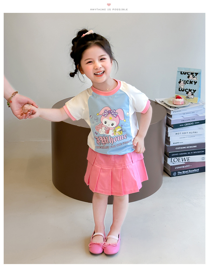 소녀들의 여름 원피스 샬롯 반팔 세트 2025 새로운 어린이 주름 치마 투피스 아기면 옷스토어 가기