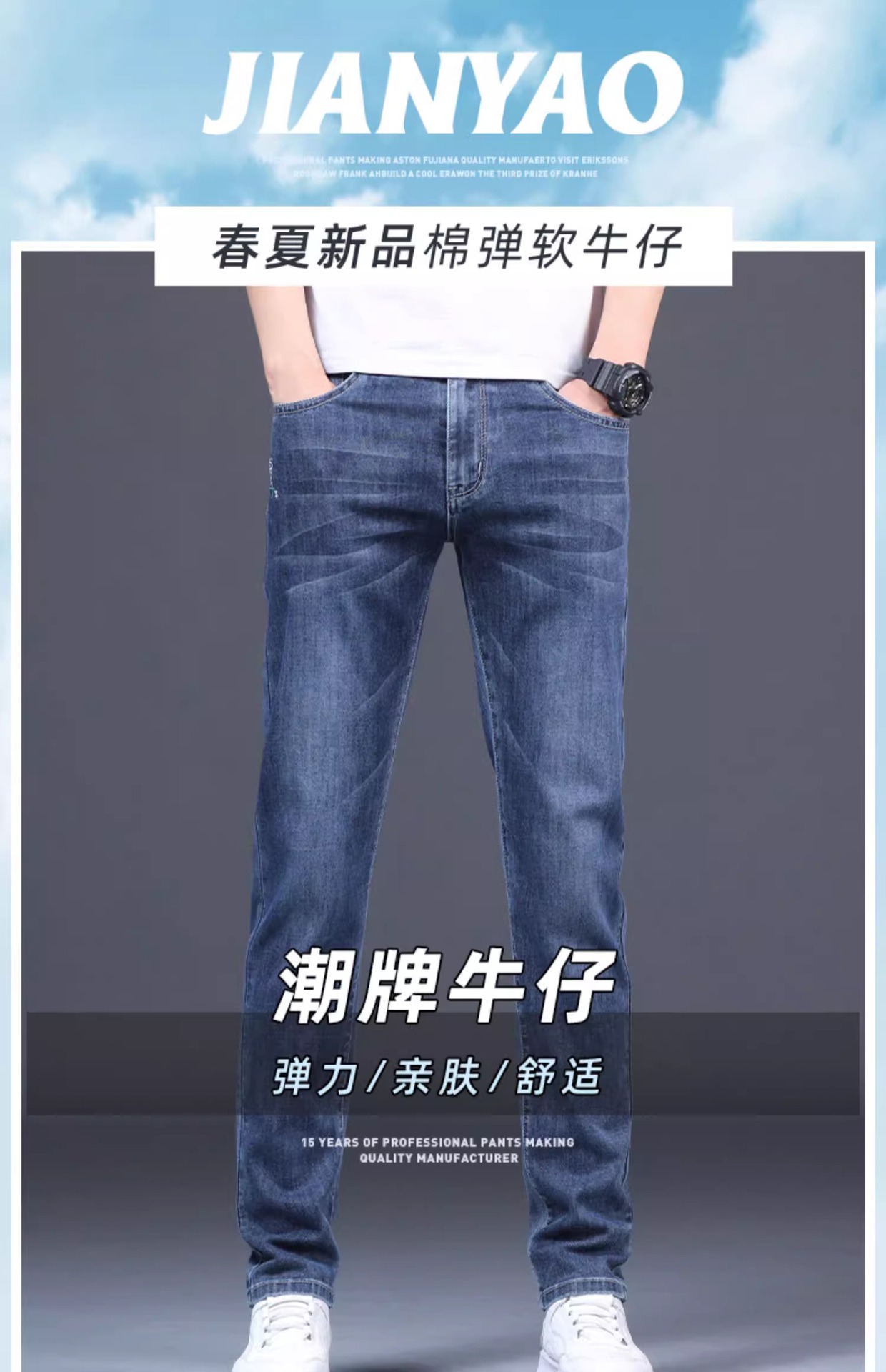 청바지 남성 여름 얇은 느슨한 스트레이트 바지 2025 여름 새로운 유행 브랜드 블루 캐주얼 바지 남성스토어 가기