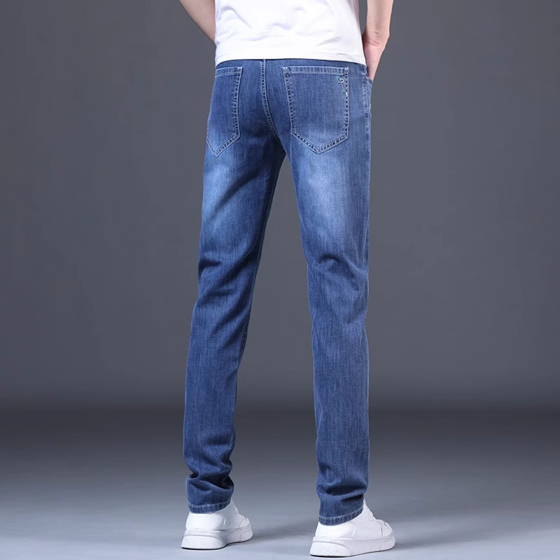 청바지 남성 여름 얇은 느슨한 스트레이트 바지 2025 여름 새로운 유행 브랜드 블루 캐주얼 바지 남성