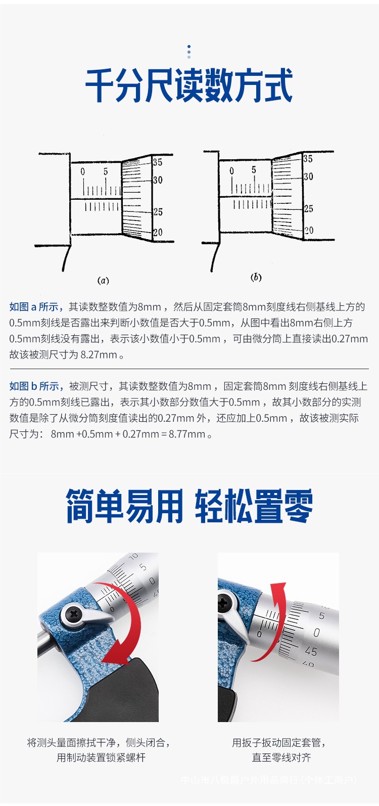 칭하이 측정 도구 이중 팁 외경 마이크로미터 고정밀 디지털 디스플레이 두께 측정기 산업용 등급 고정 시트 액세서리 8극스토어 가기