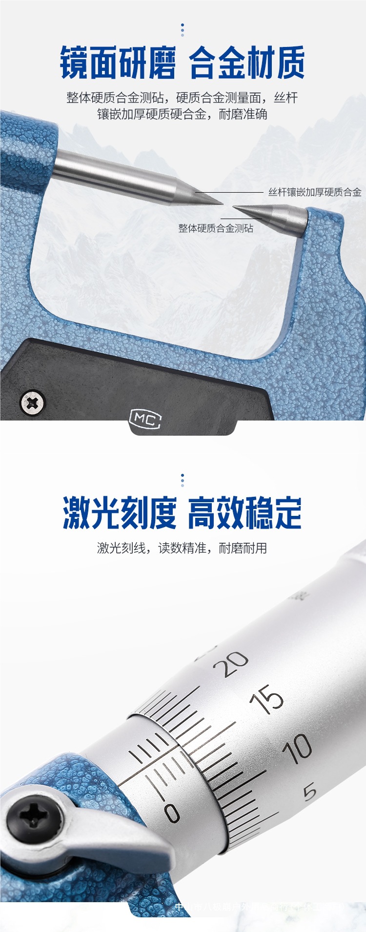 • 독일산 이중 팁 마이크로미터 0-25 팁 각도 60 °