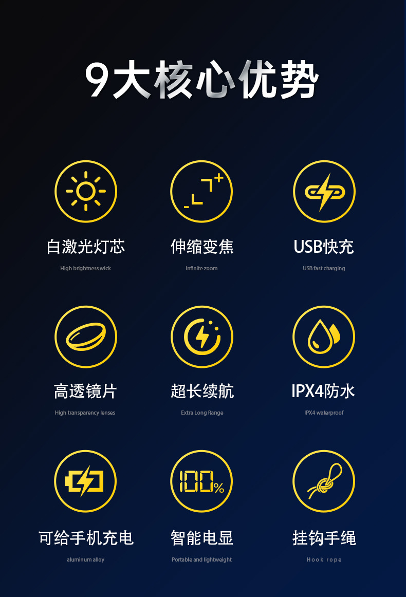 • 텔레스코픽 숨겨진 투광 손전등 [색상 상자 + 데이터 케이블]
