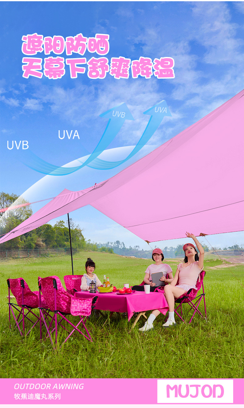Mujiao Di 나비 모양의 캐노피 텐트 야외 실버 코팅 태양 보호 및 비 보호 캠핑 용품 캠핑 차양 만화 차양