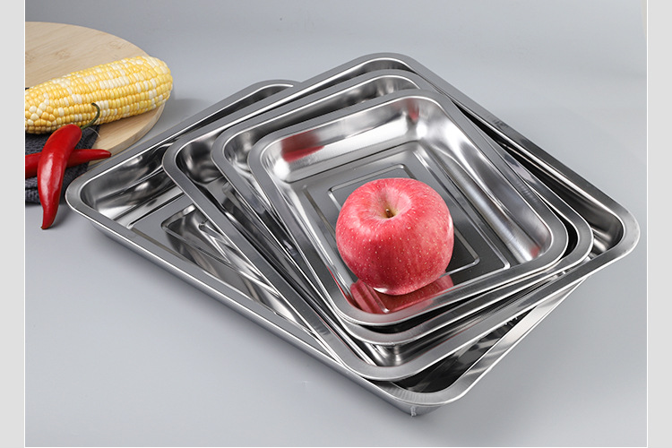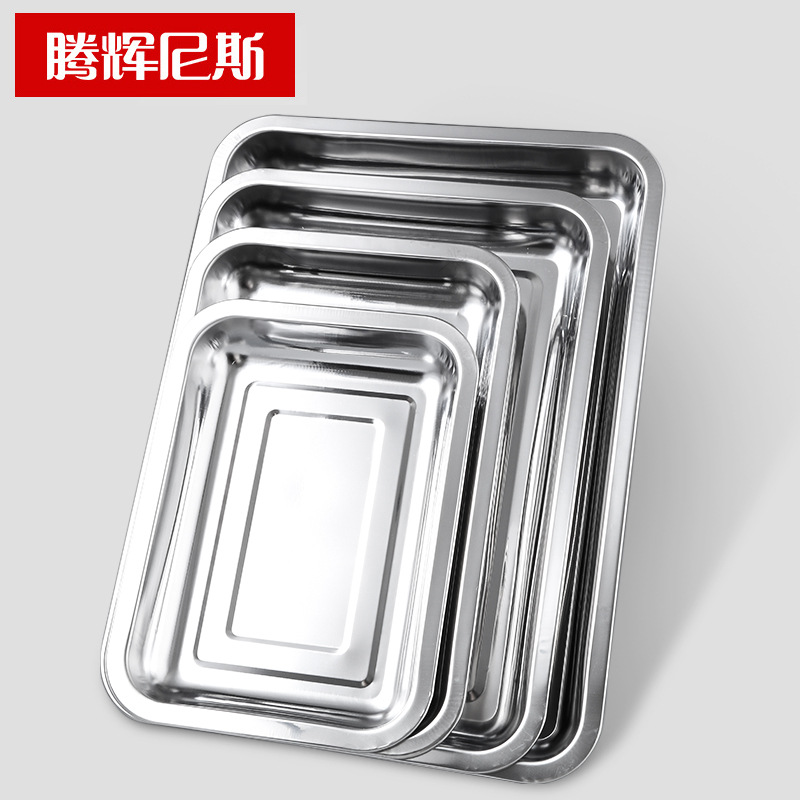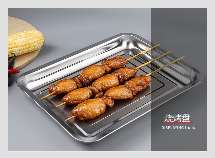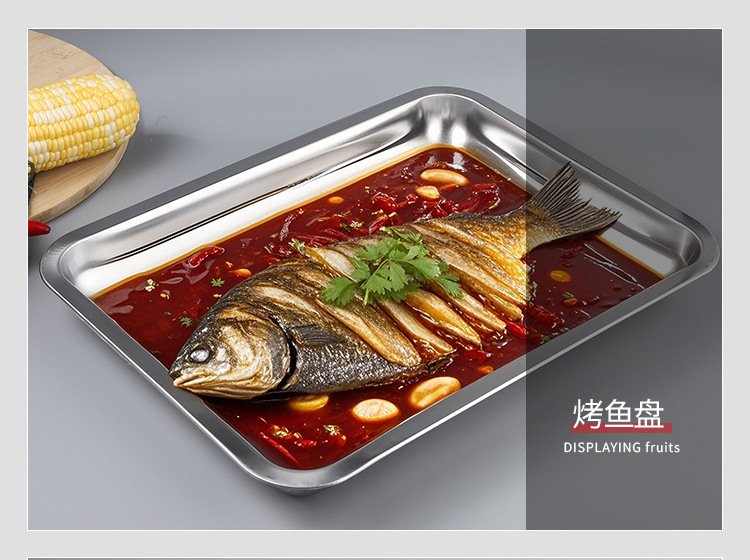 스테인레스 스틸 스퀘어 플레이트 두껍게 된 딥 멀티 사용 직사각형 구운 생선 트레이 바베큐 꼬치 찜 쌀판 매점 플레이트스토어 가기