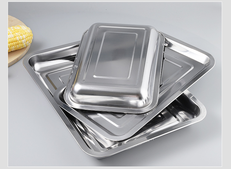 스테인레스 스틸 스퀘어 플레이트 두껍게 된 딥 멀티 사용 직사각형 구운 생선 트레이 바베큐 꼬치 찜 쌀판 매점 플레이트