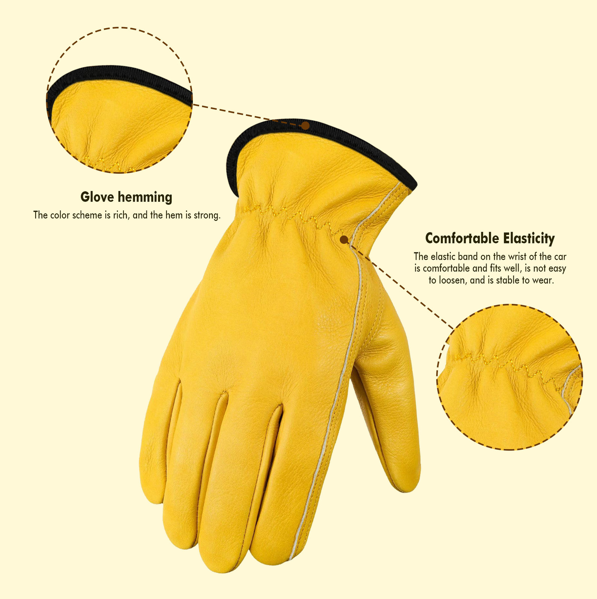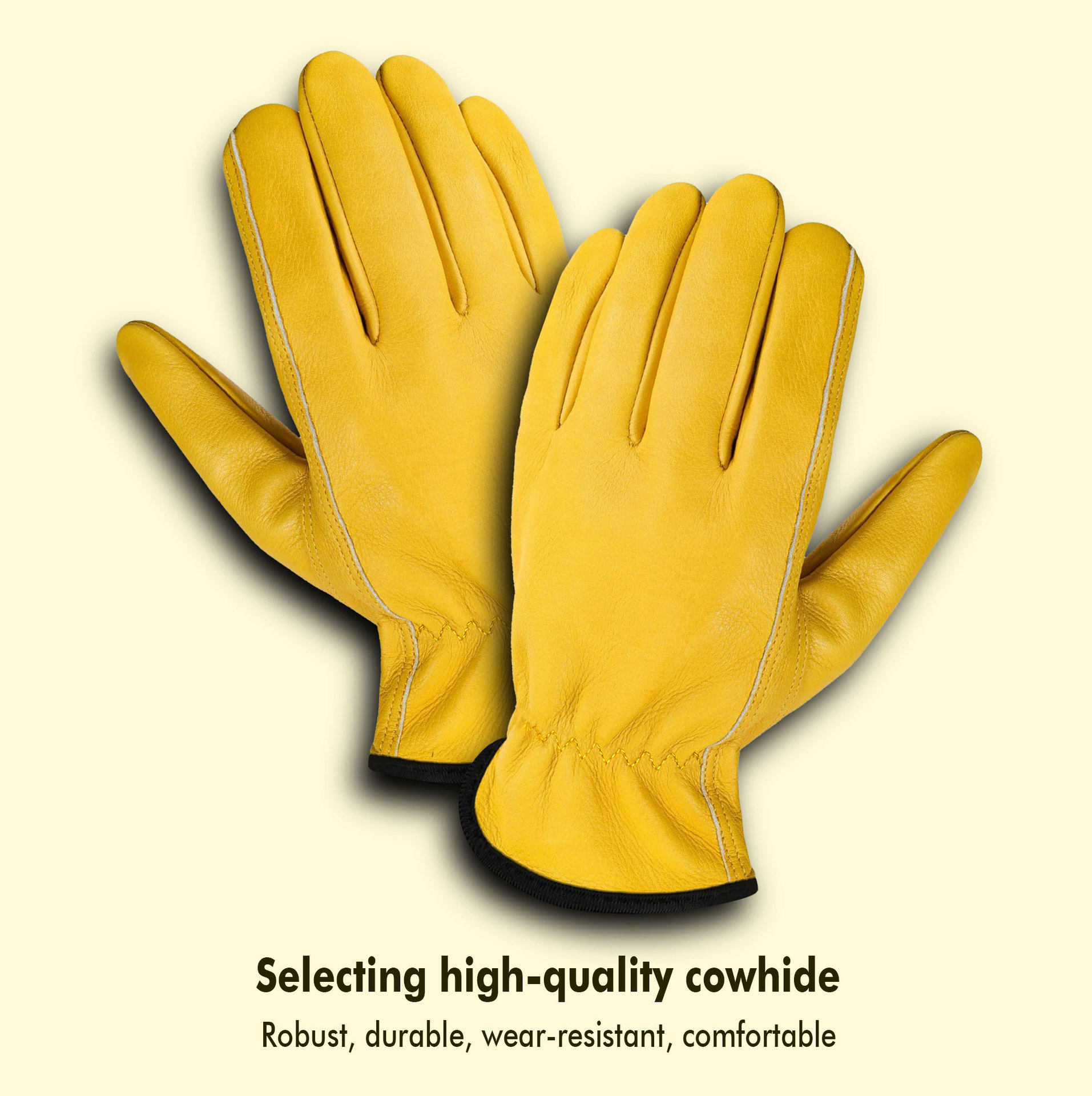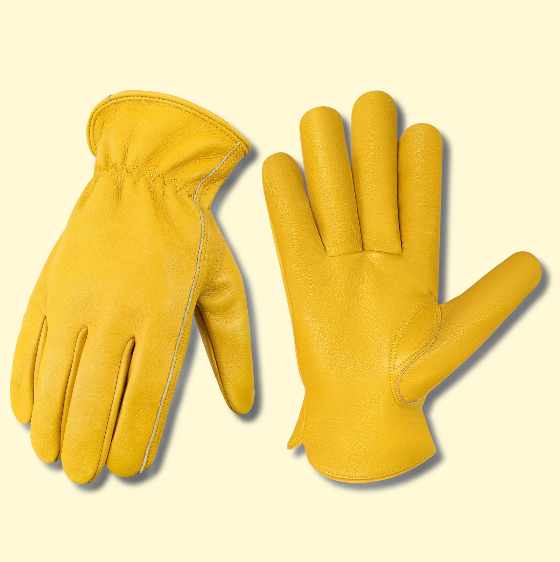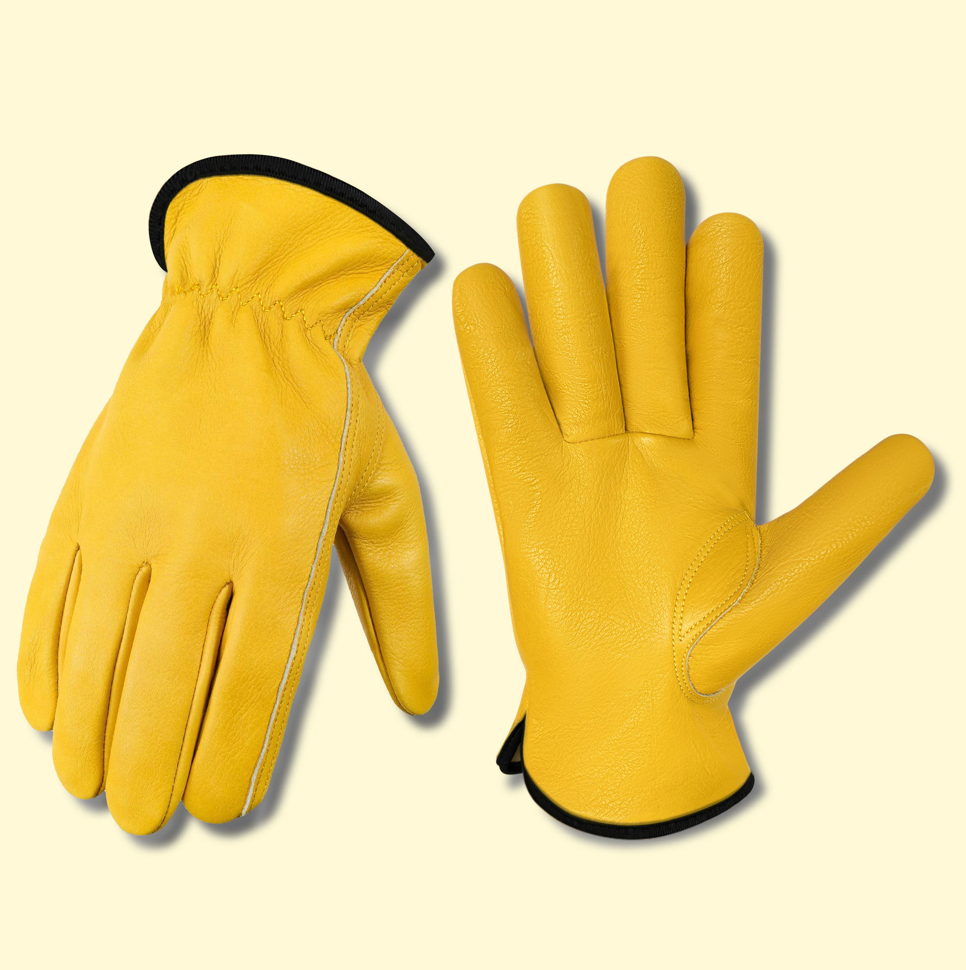 원예 장갑, 찌르기 방지 노란색 1층 소가죽, 견고하고 내마모성, 안뜰 농장 건설 운전사 가죽 작업 장갑