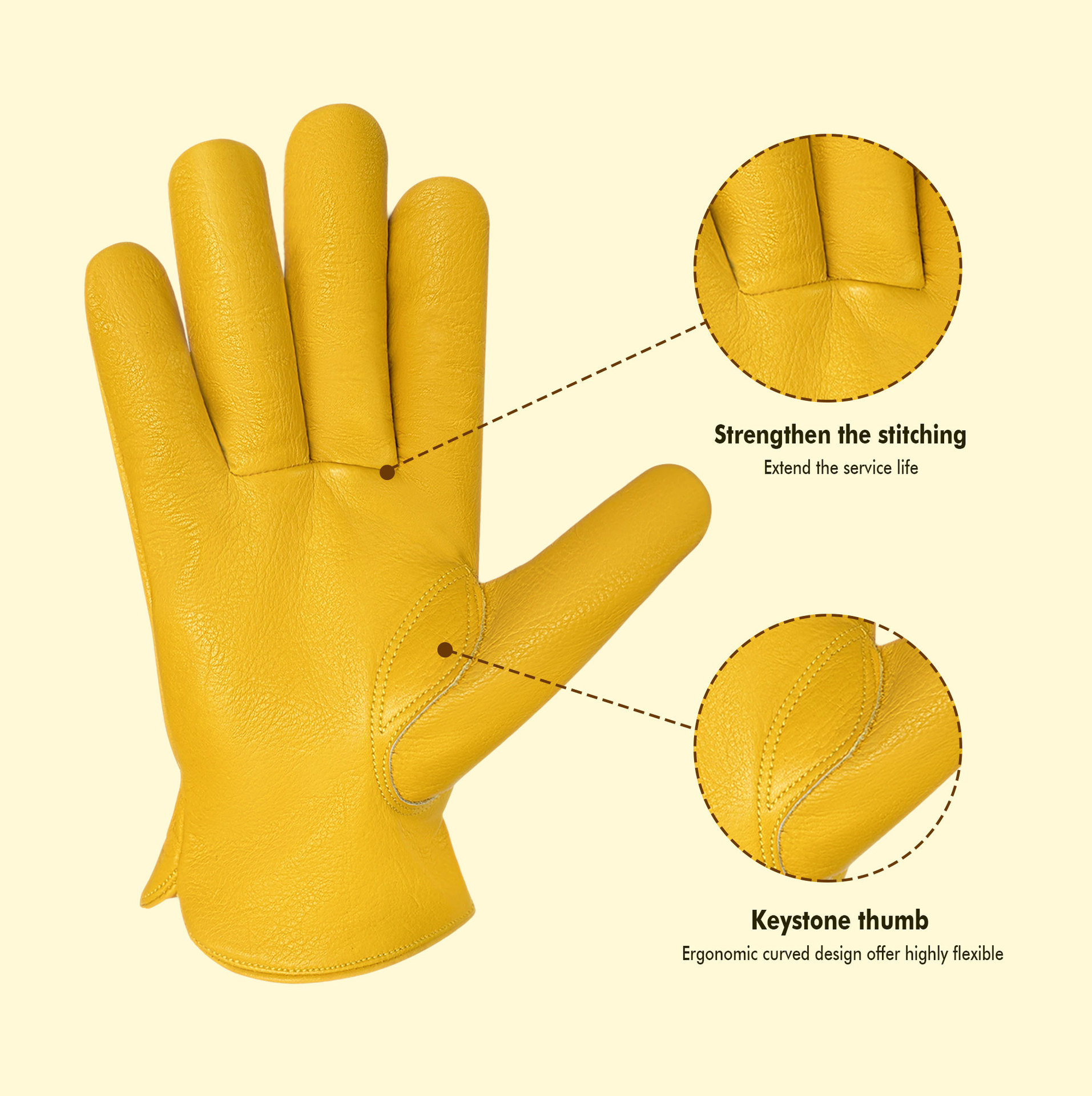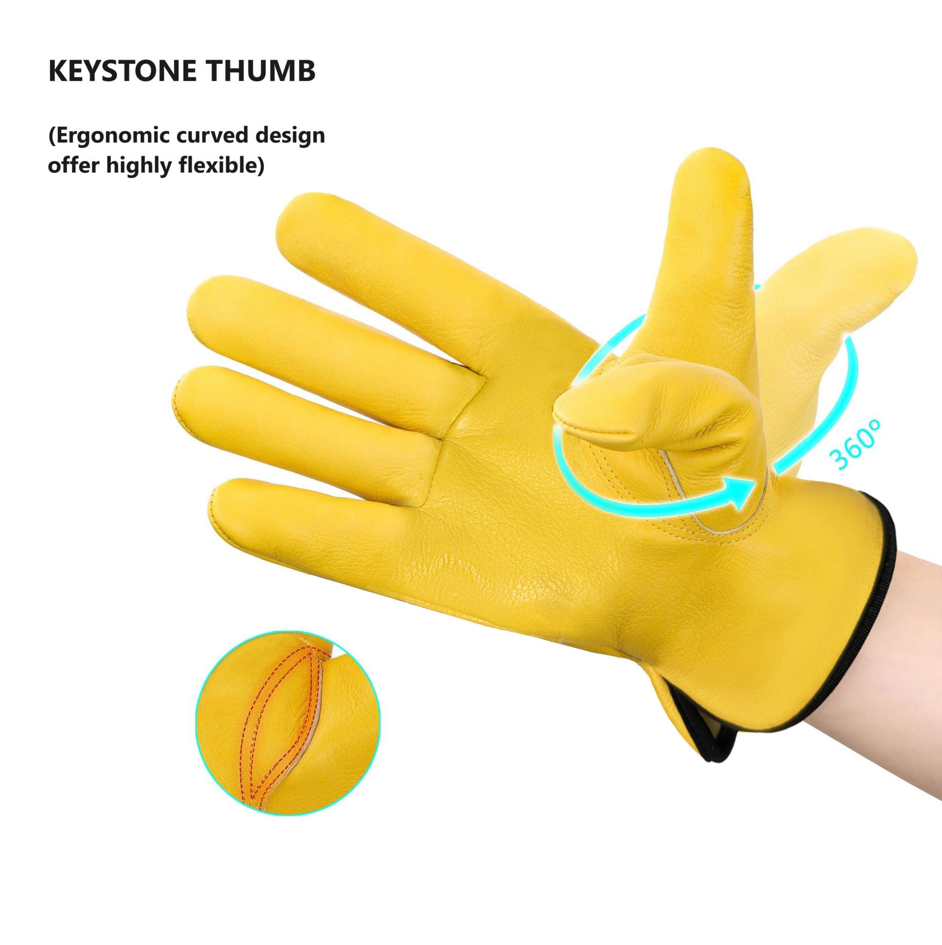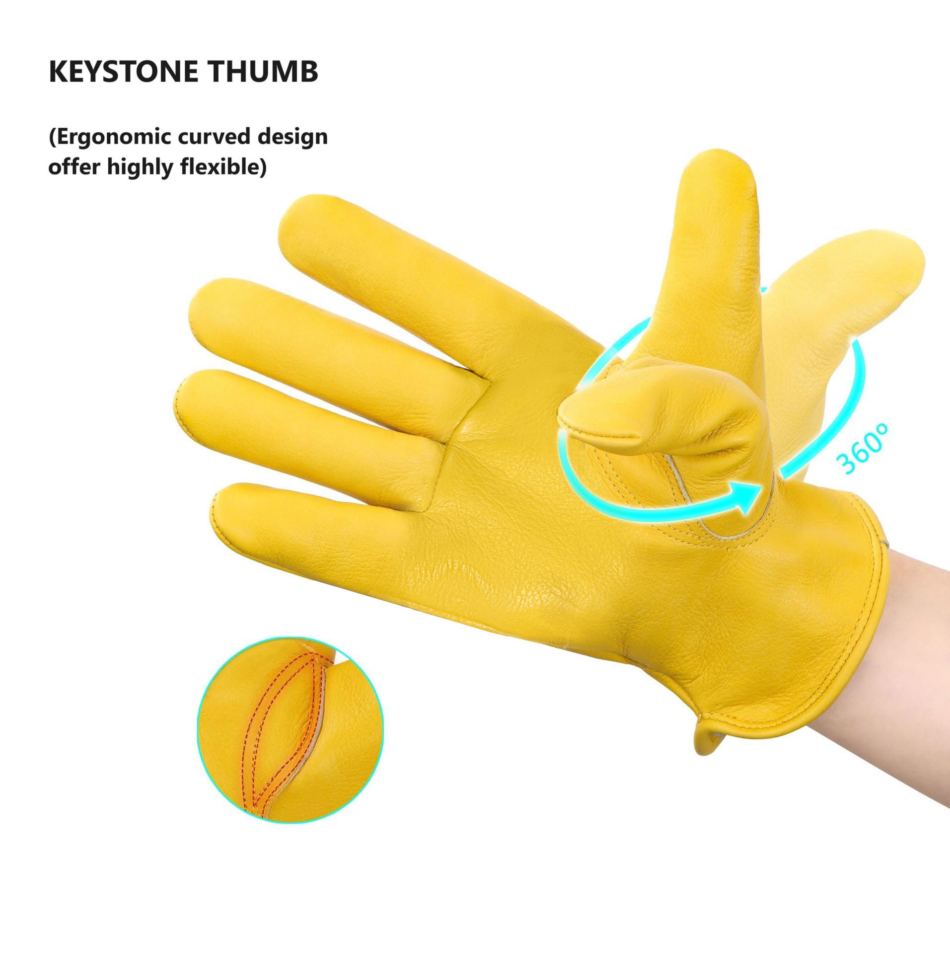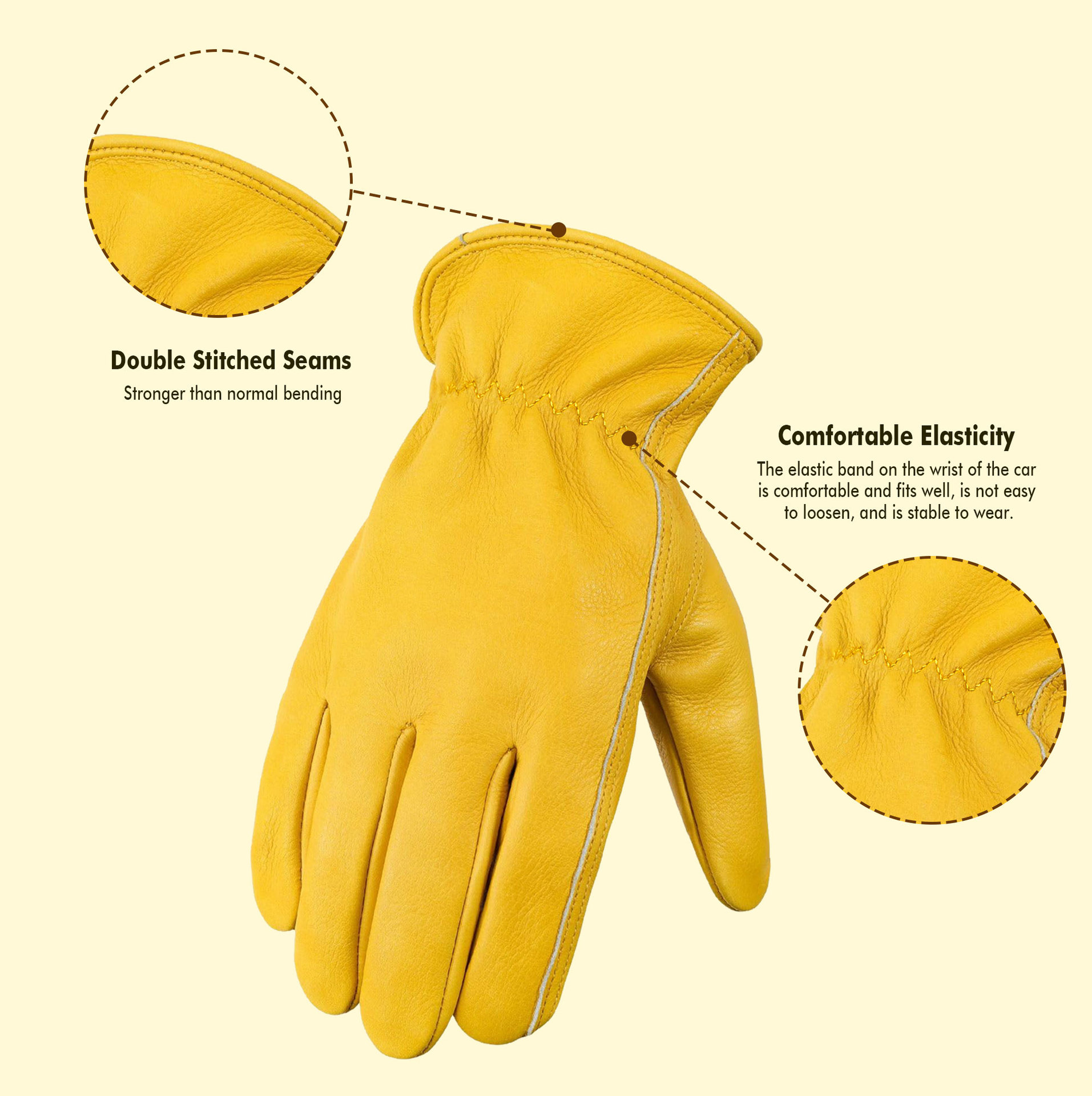 원예 장갑, 찌르기 방지 노란색 1층 소가죽, 견고하고 내마모성, 안뜰 농장 건설 운전사 가죽 작업 장갑