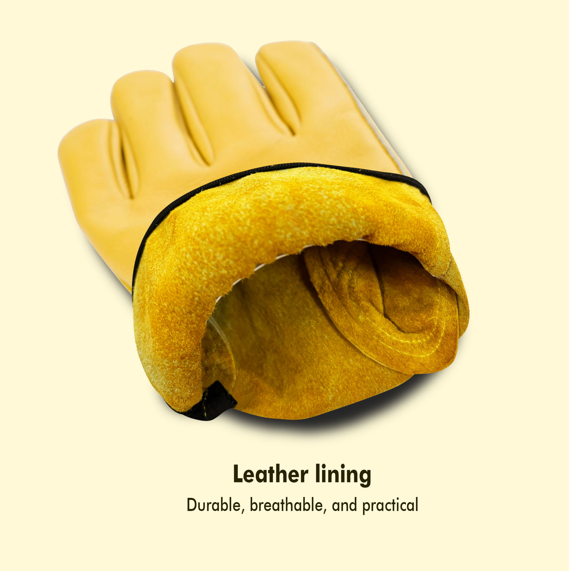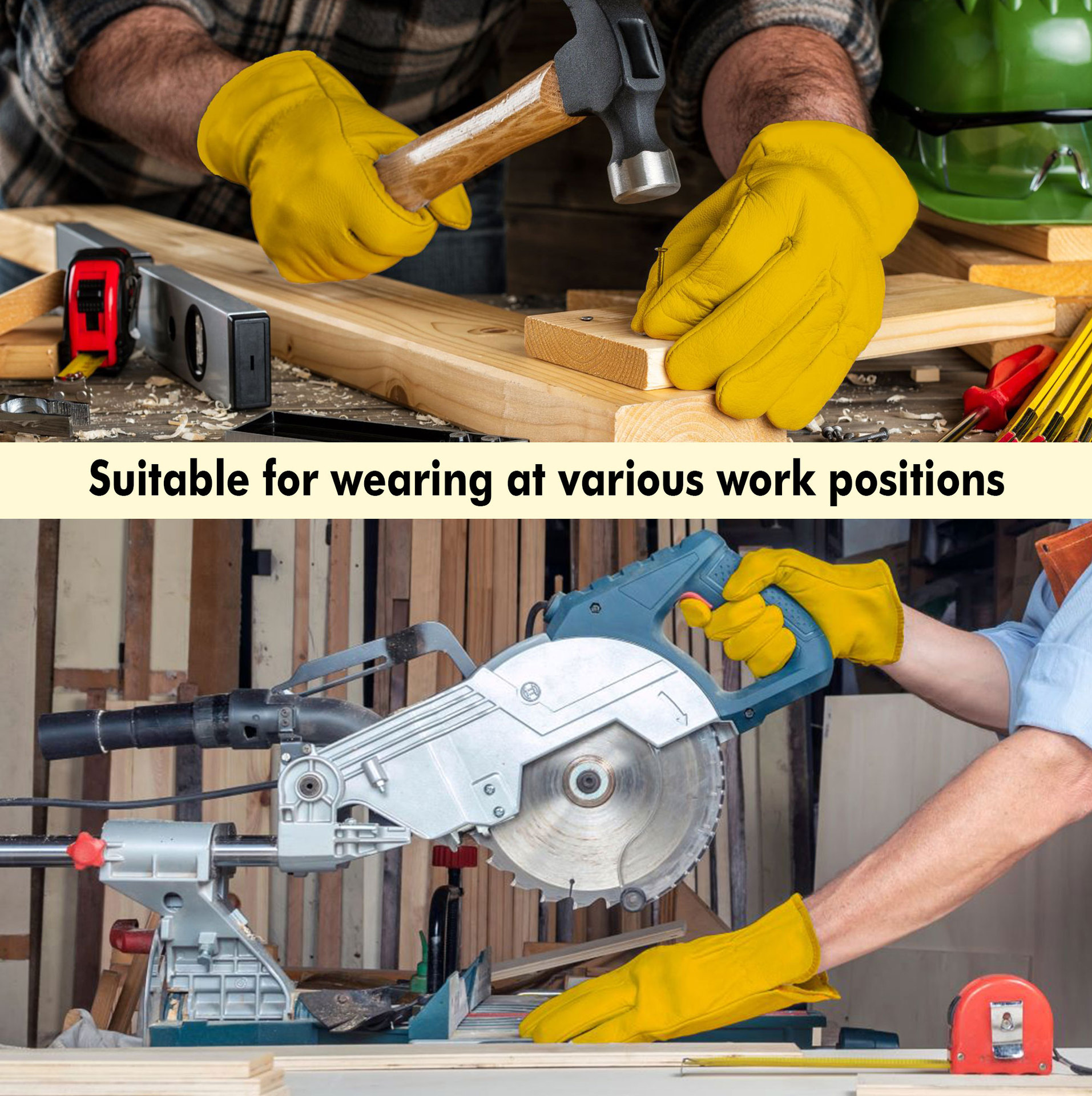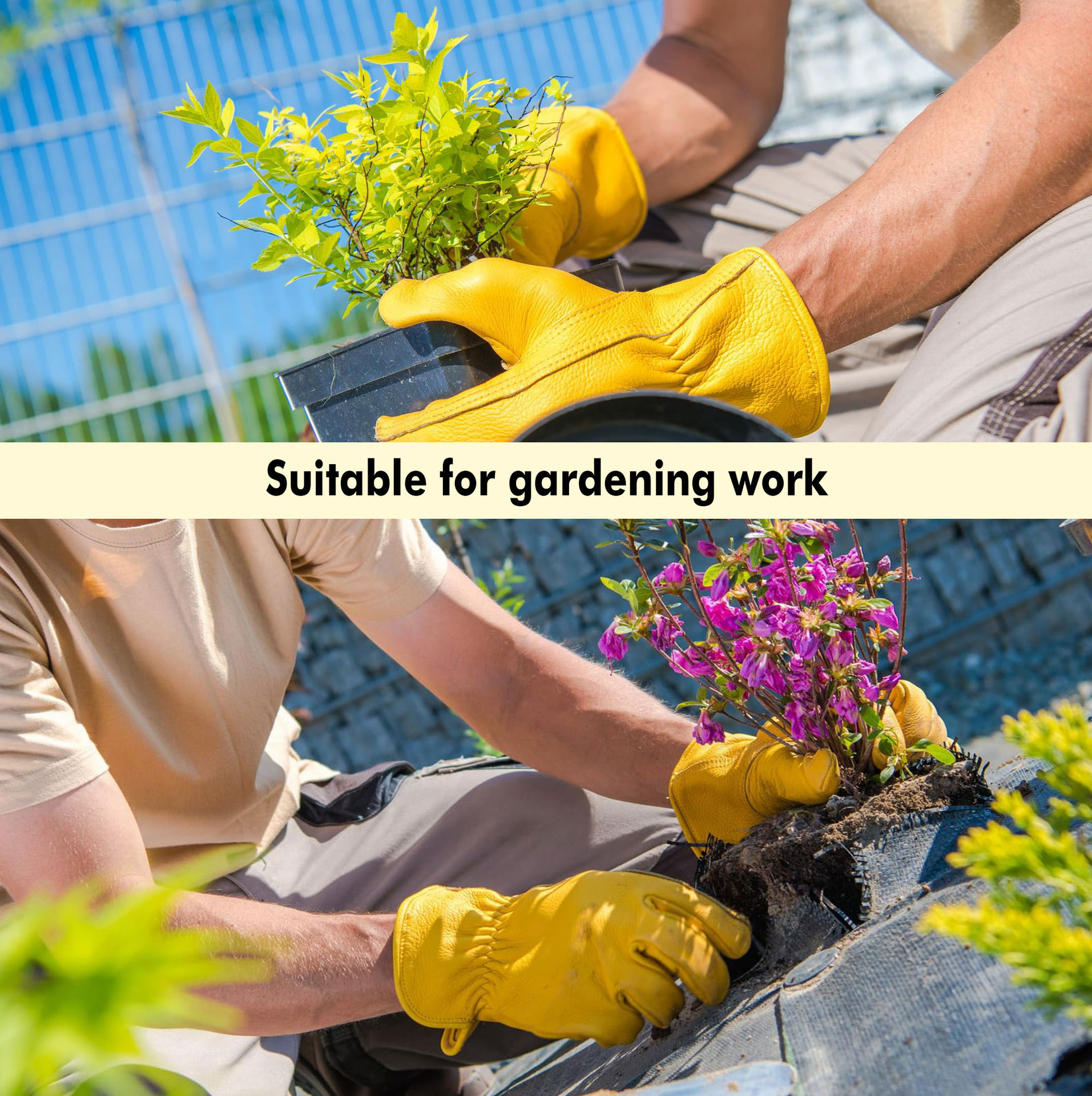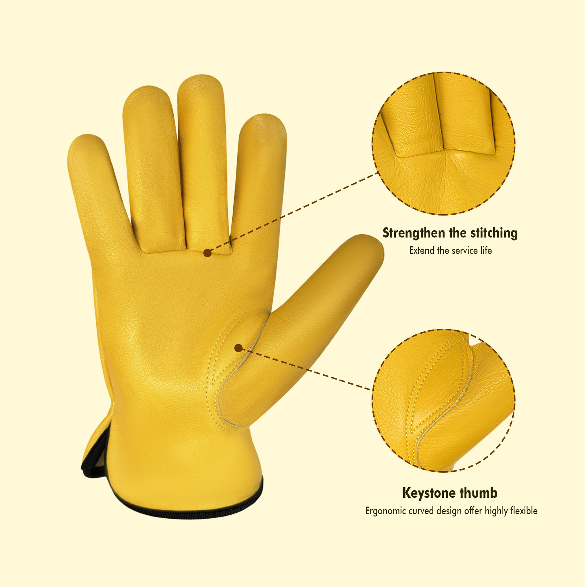 원예 장갑, 찌르기 방지 노란색 1층 소가죽, 견고하고 내마모성, 안뜰 농장 건설 운전사 가죽 작업 장갑