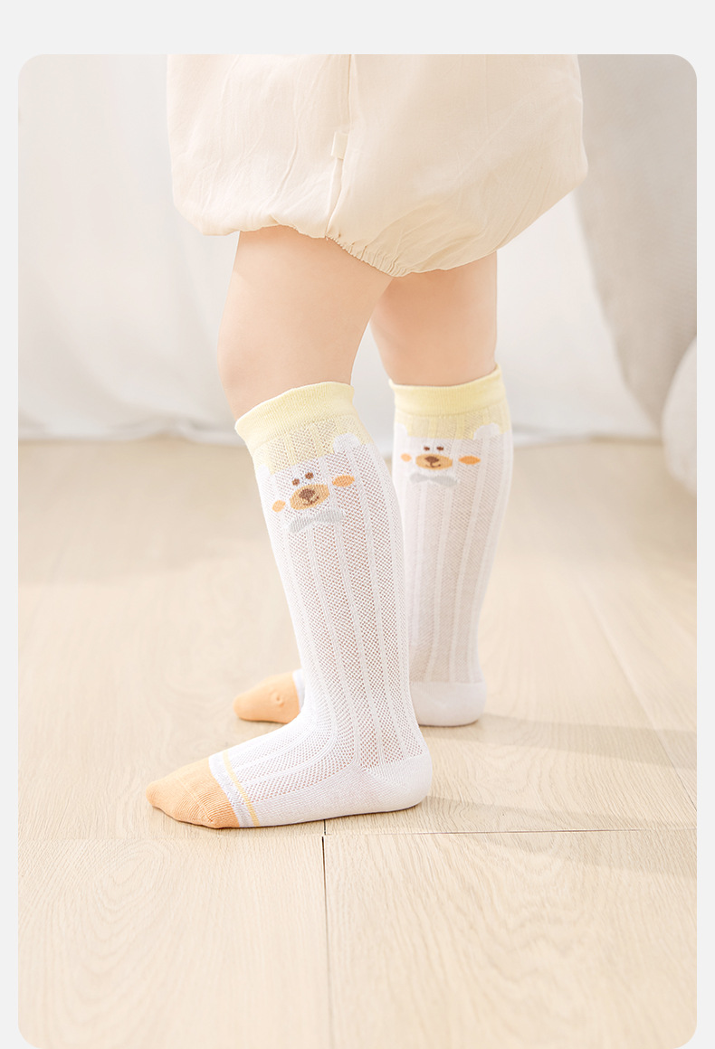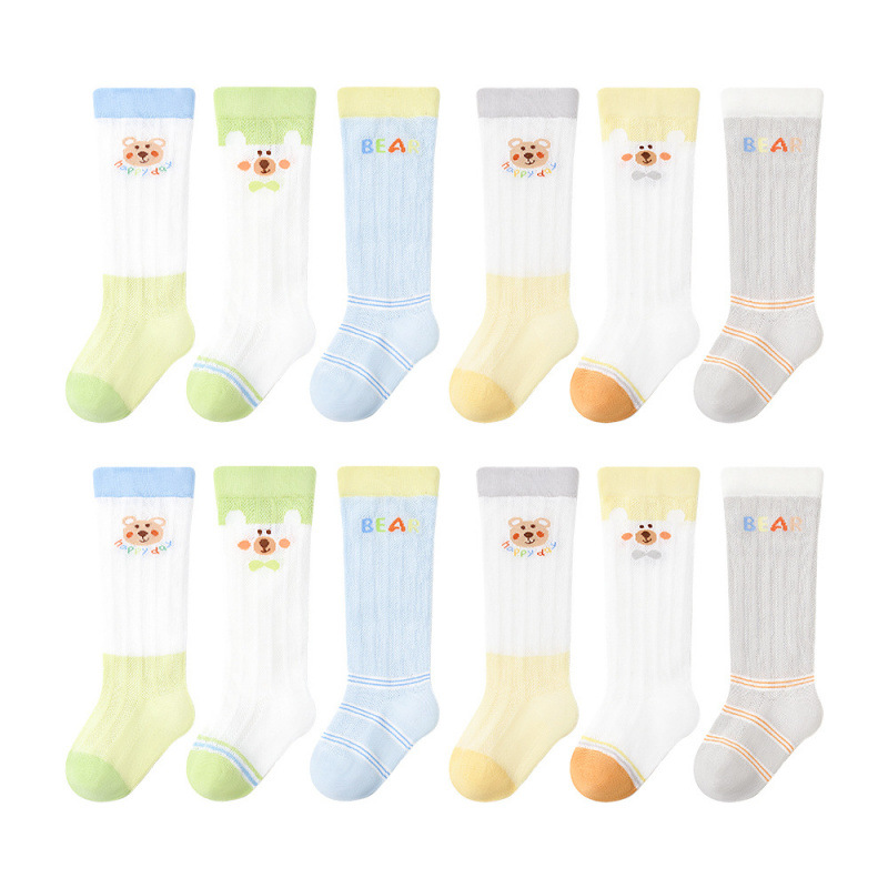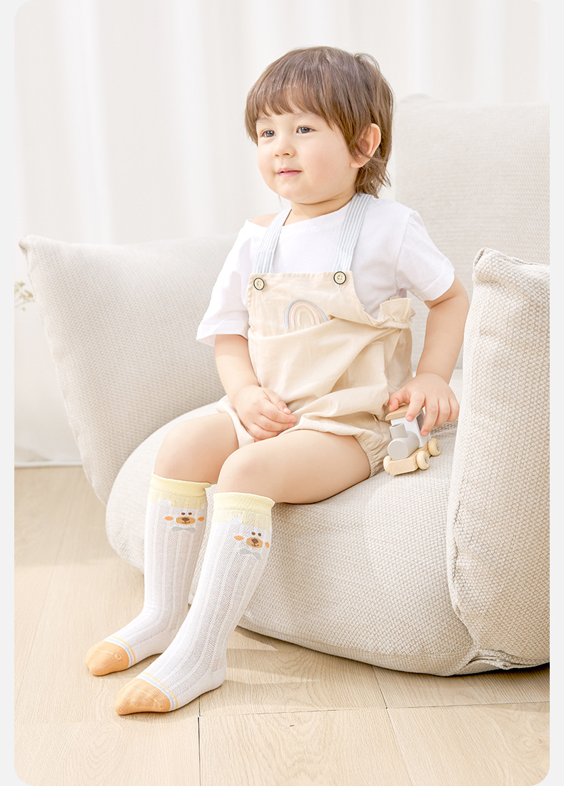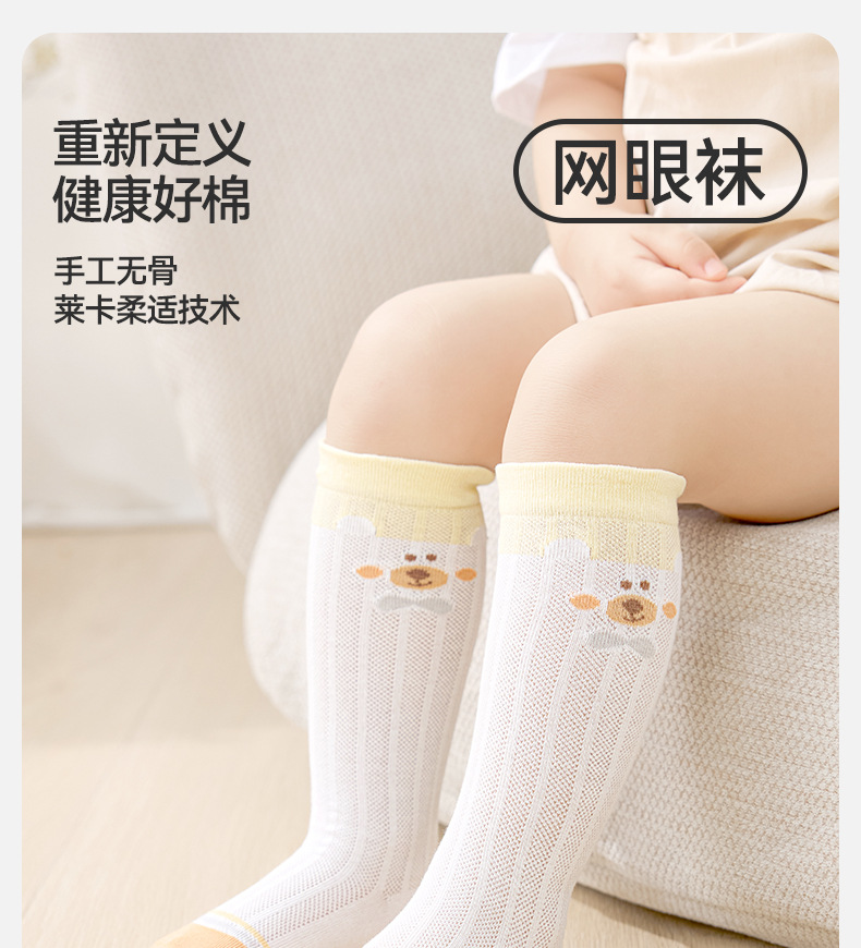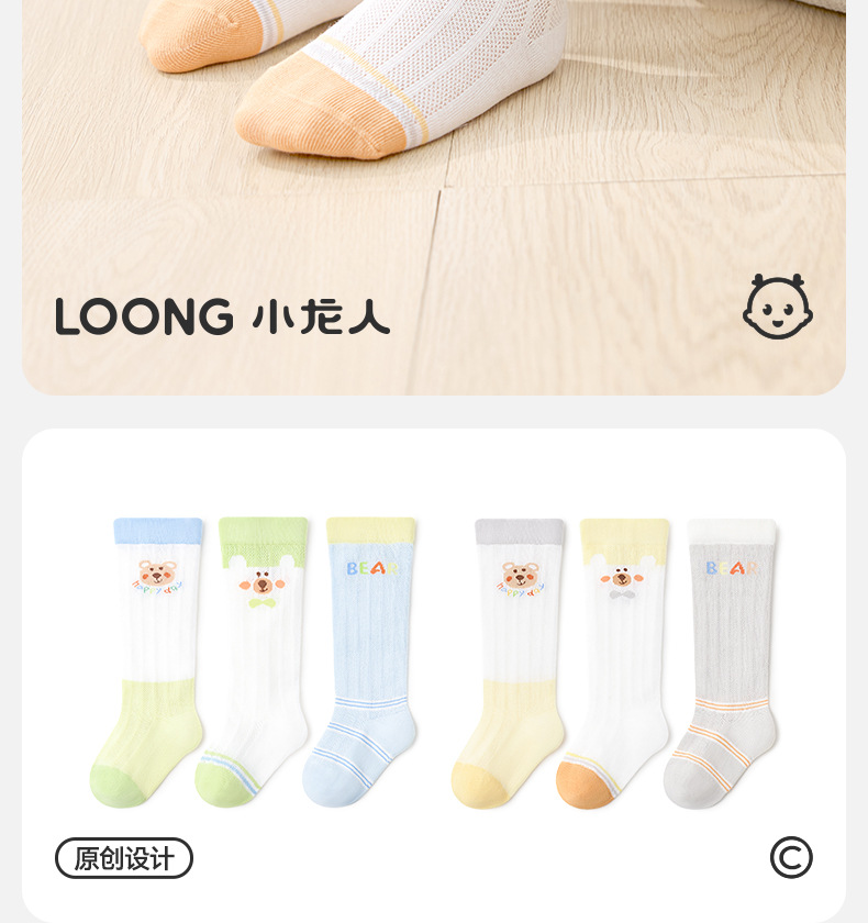 Xiaolongren 2025 봄과 여름 메쉬 튜브 신생아 면 양말 아기 0-3 세 긴 튜브 어린이 양말