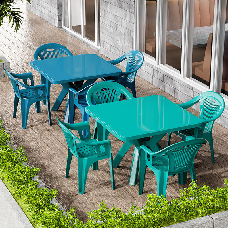 야시장 바베큐 스텐트 플라스틱 테이블과 의자 세트 가정용 안뜰 솔리드 렌탈 하우스 방수 야외 테이블 및 의자