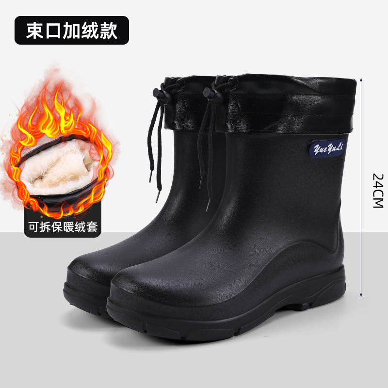 2025 국경을 넘는 새로운 미드 튜브 두꺼운 내마모성 코튼 레인 부츠 주방 미끄럼 방지 남성용 기모 따뜻한 장화