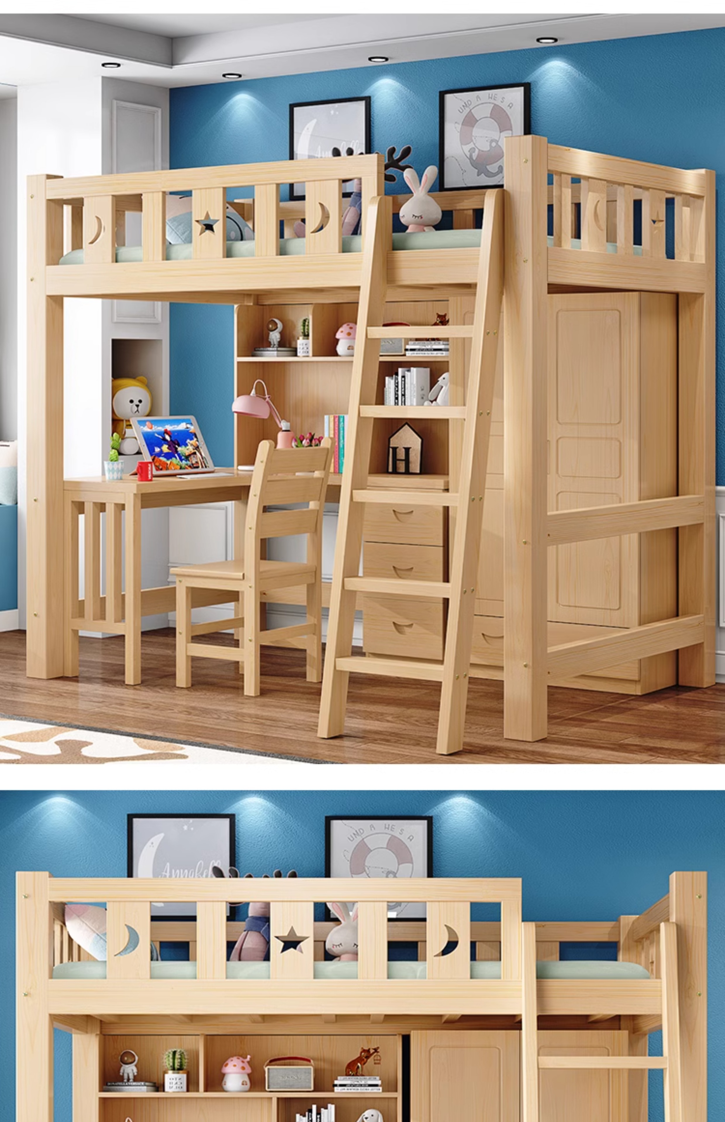 도매 침대와 낮은 테이블 높고 낮은 침대 다기능 조합 침대 가구 모든 단단한 나무 어린이 침대 책상 옷장 원피스 높이