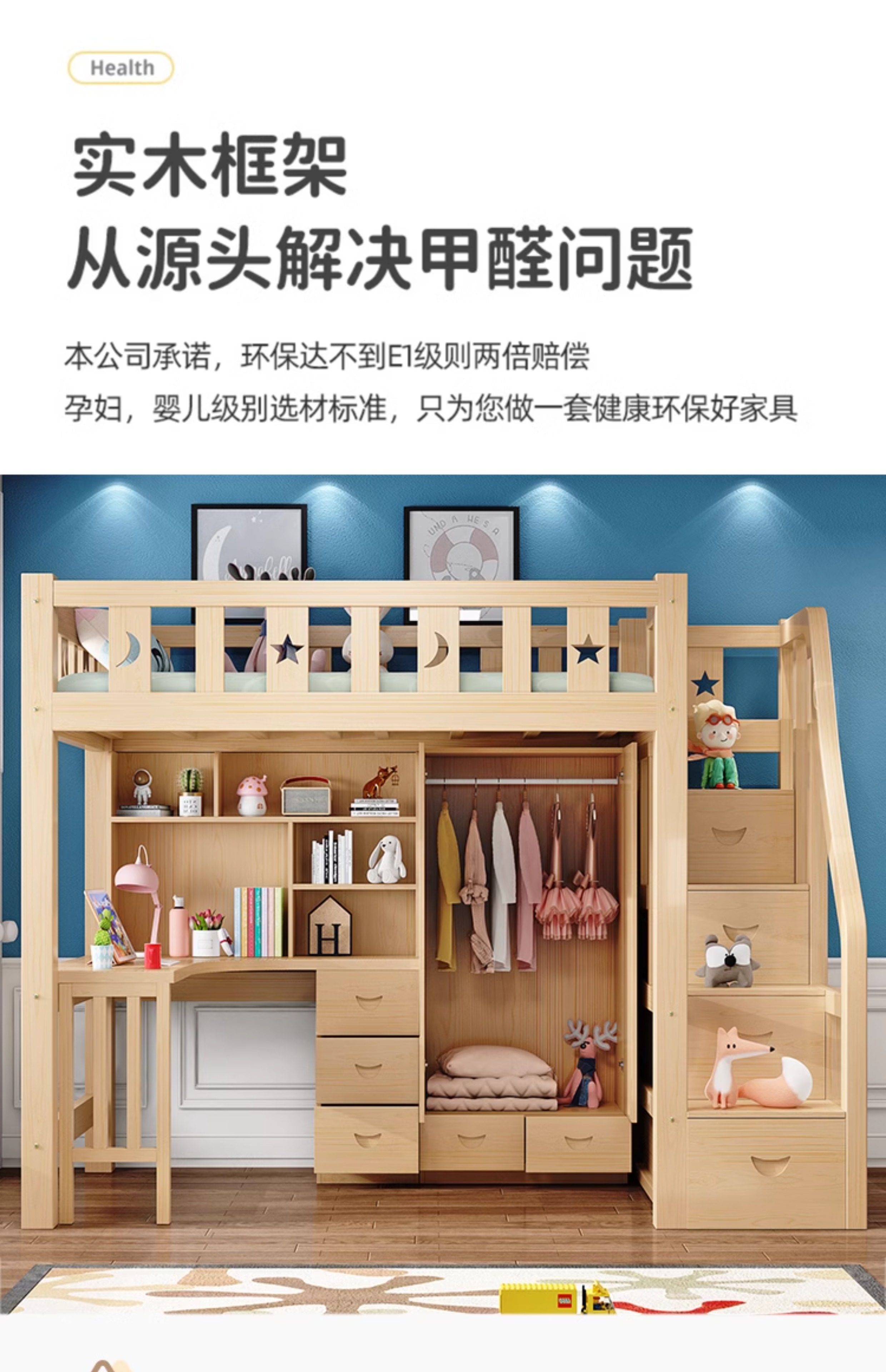 도매 침대와 낮은 테이블 높고 낮은 침대 다기능 조합 침대 가구 모든 단단한 나무 어린이 침대 책상 옷장 원피스 높이스토어 가기