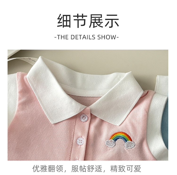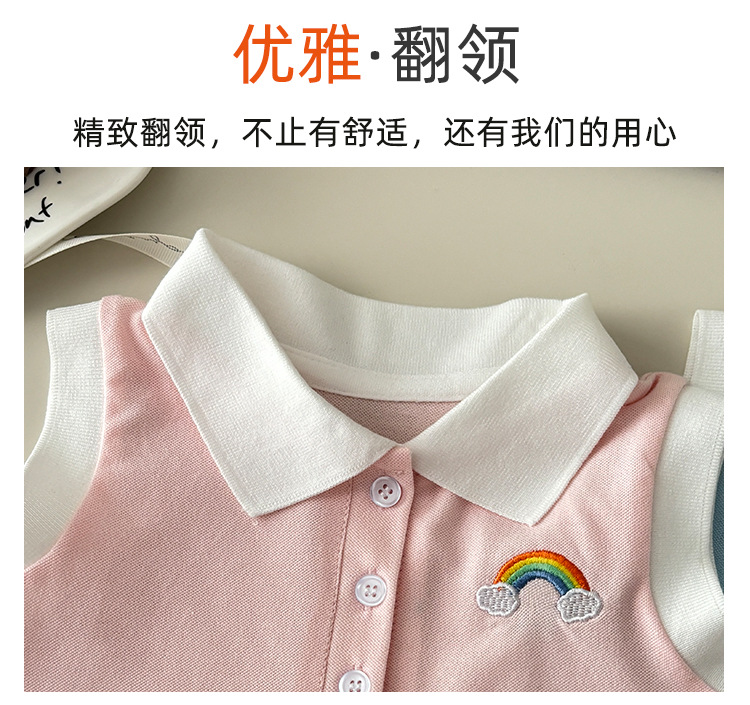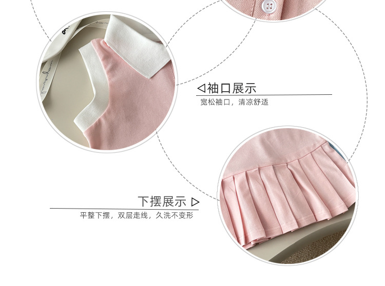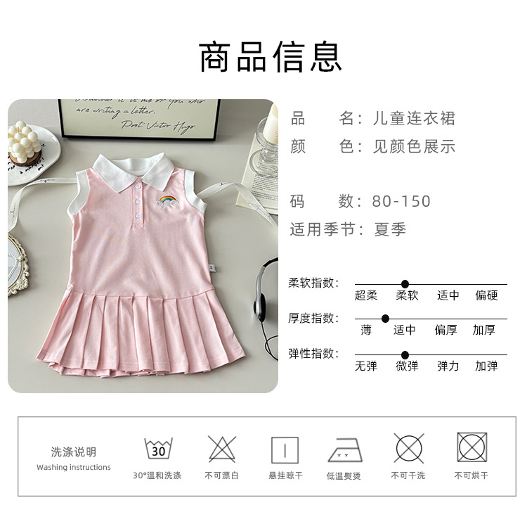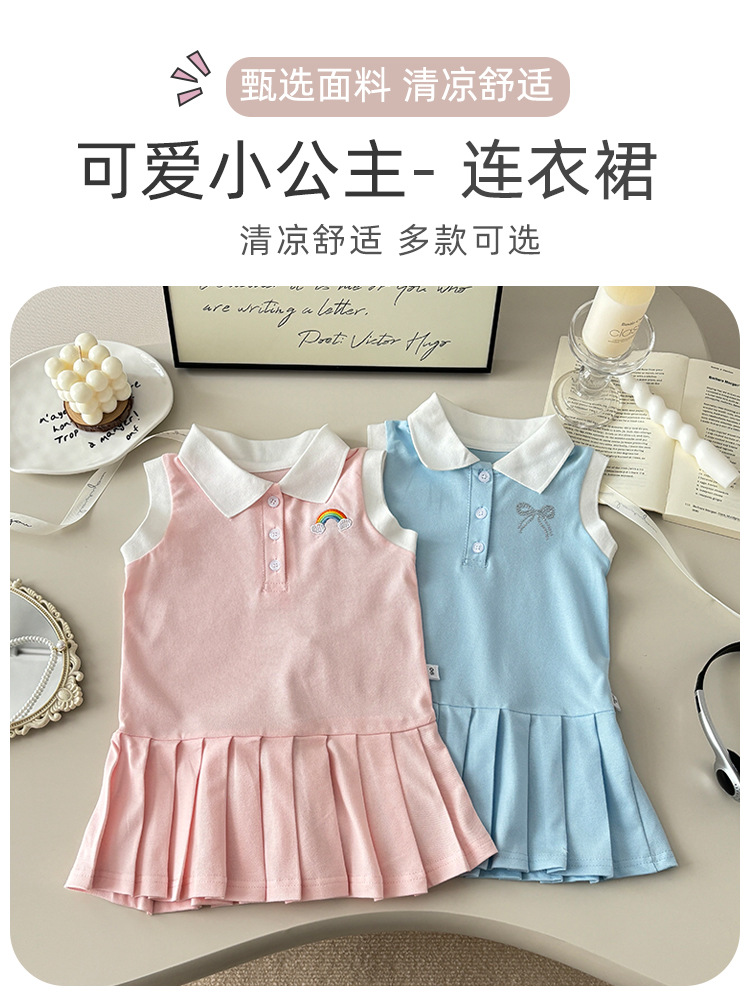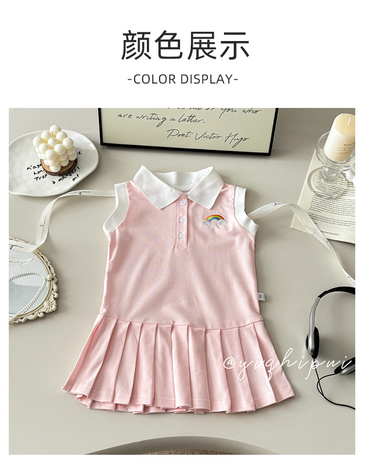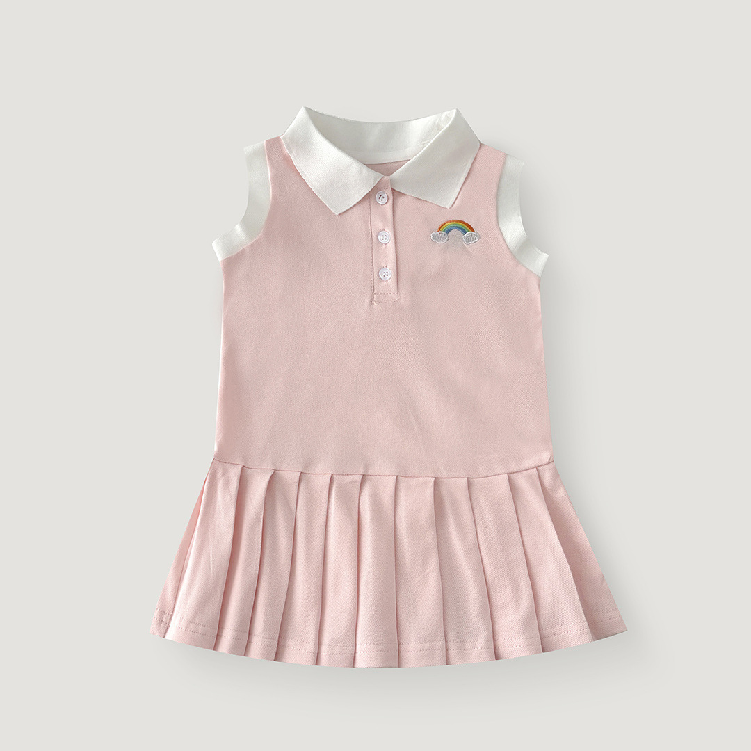 여아용 칼리지 스타일 원피스, 캐주얼 폴로 칼라 주름 스커트, 공주 원피스, 민소매 원피스, 원피스 드레스, 원피스 스커트