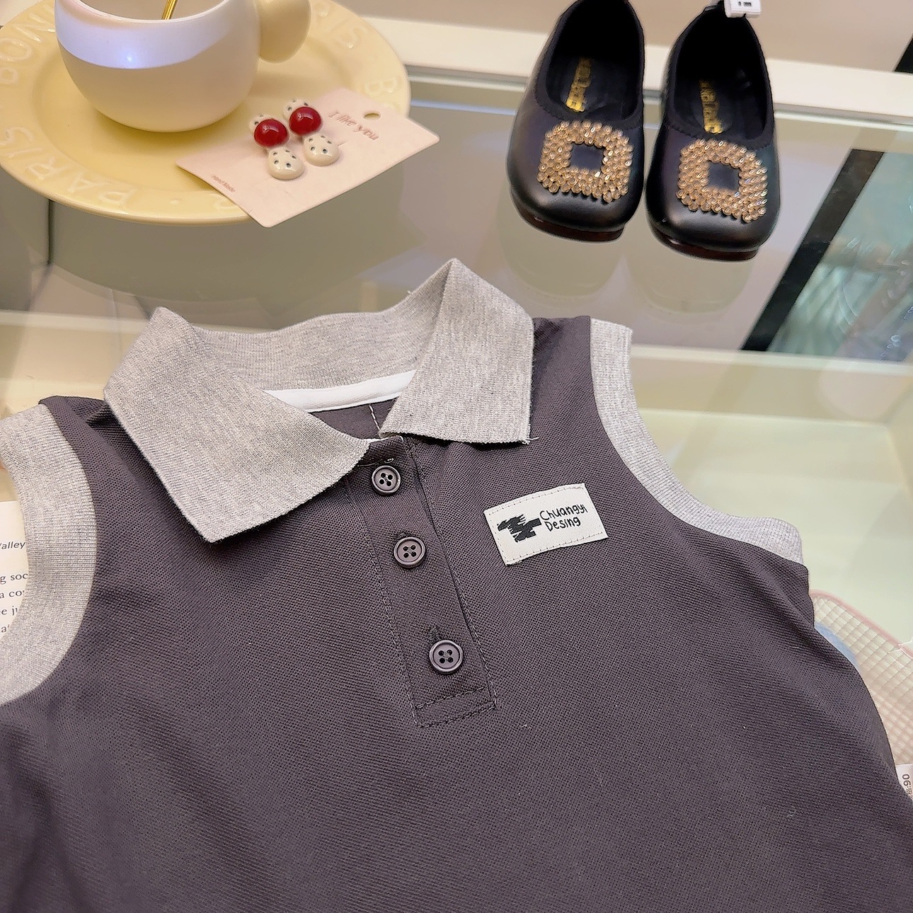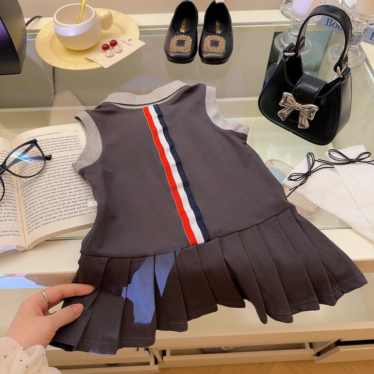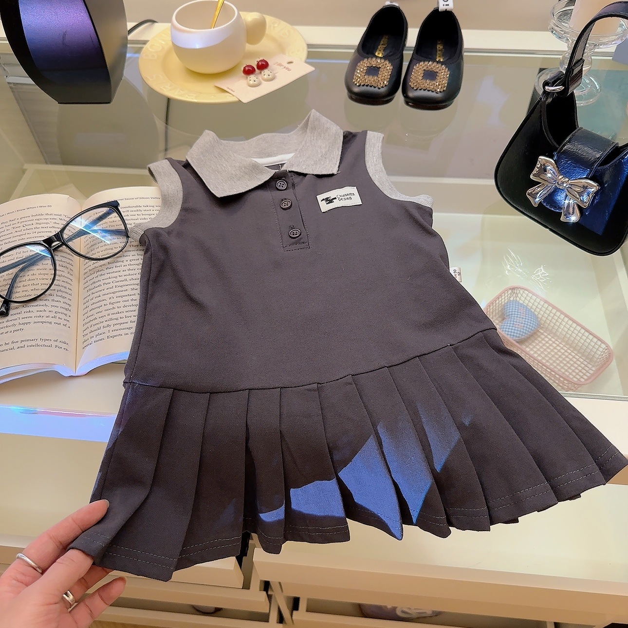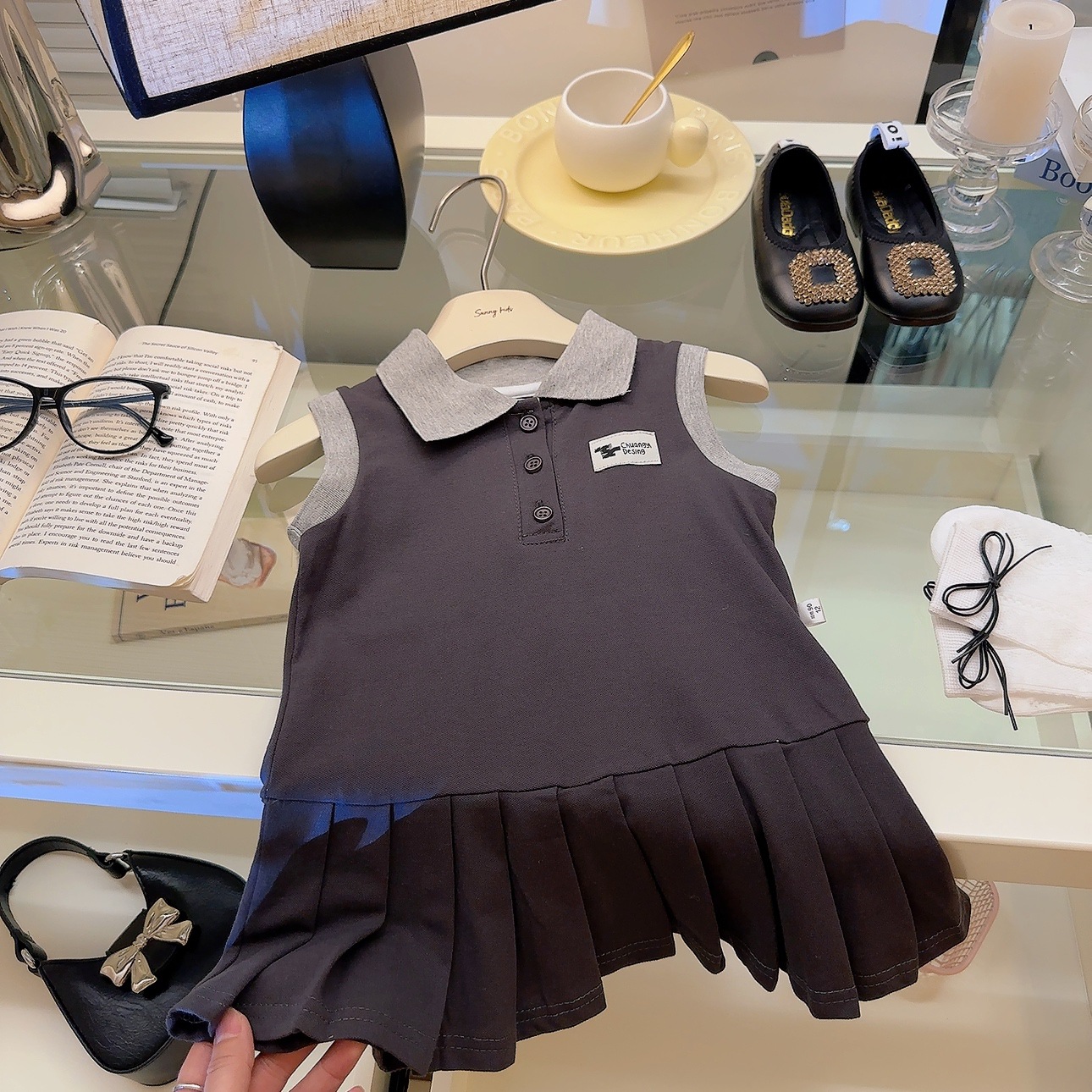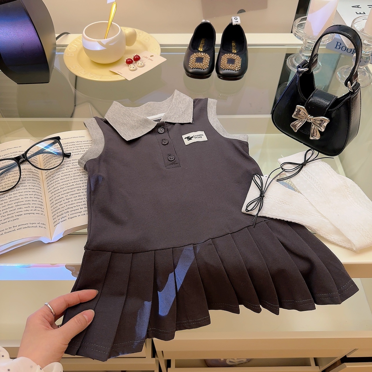 여아용 칼리지 스타일 원피스, 캐주얼 폴로 칼라 주름 스커트, 공주 원피스, 민소매 원피스, 원피스 드레스, 원피스 스커트스토어 가기