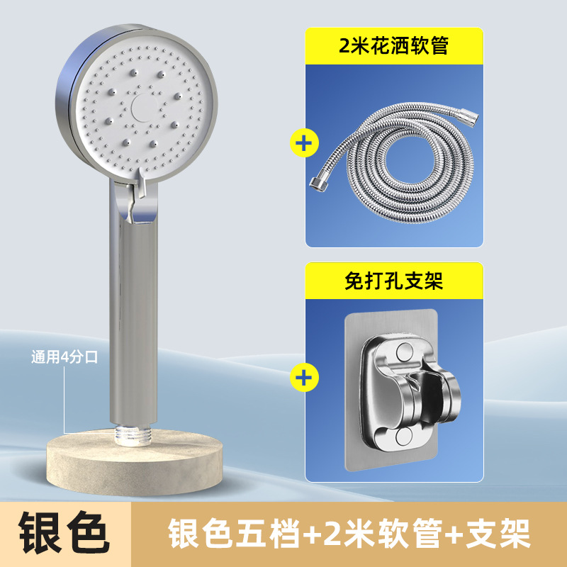 • 실버/5단 슈퍼차저 샤워기 + 실버 베이스 + 1.97m 샤워 파이프