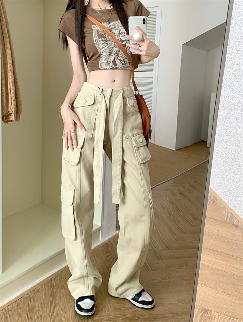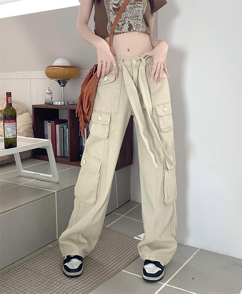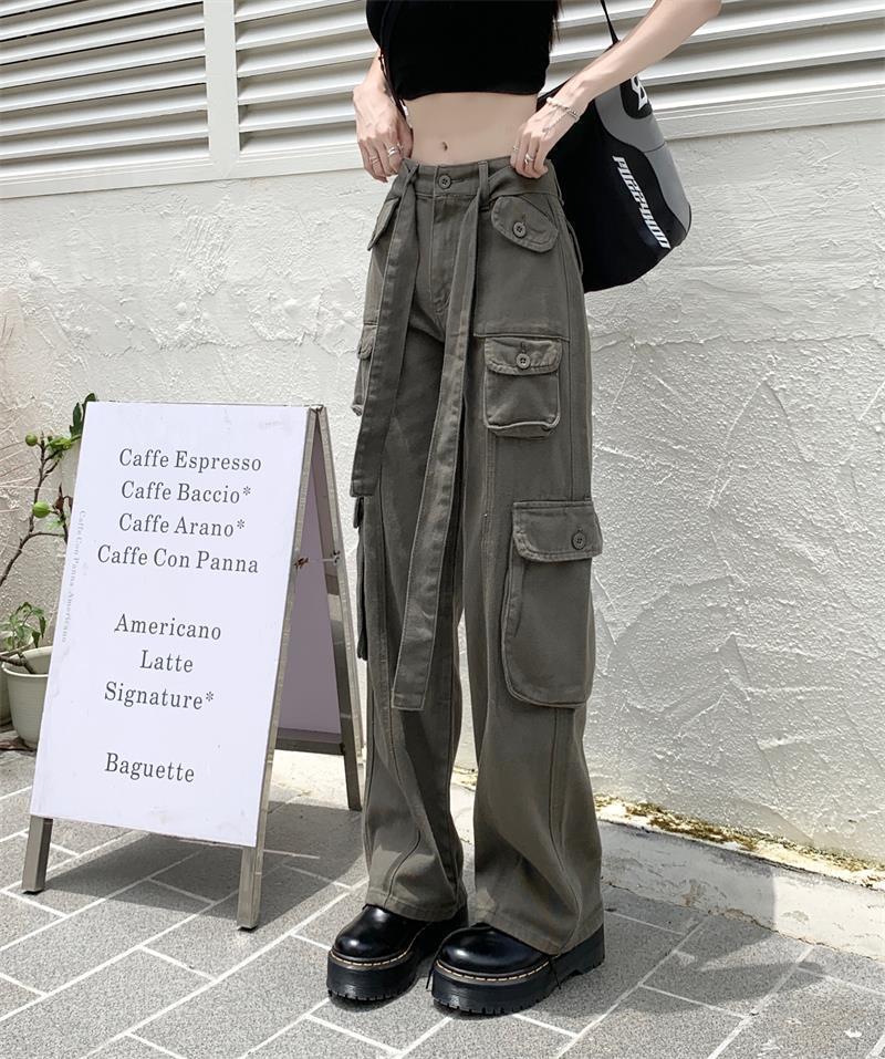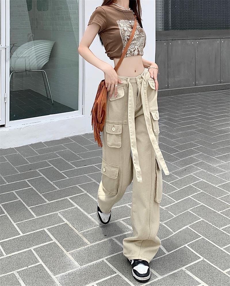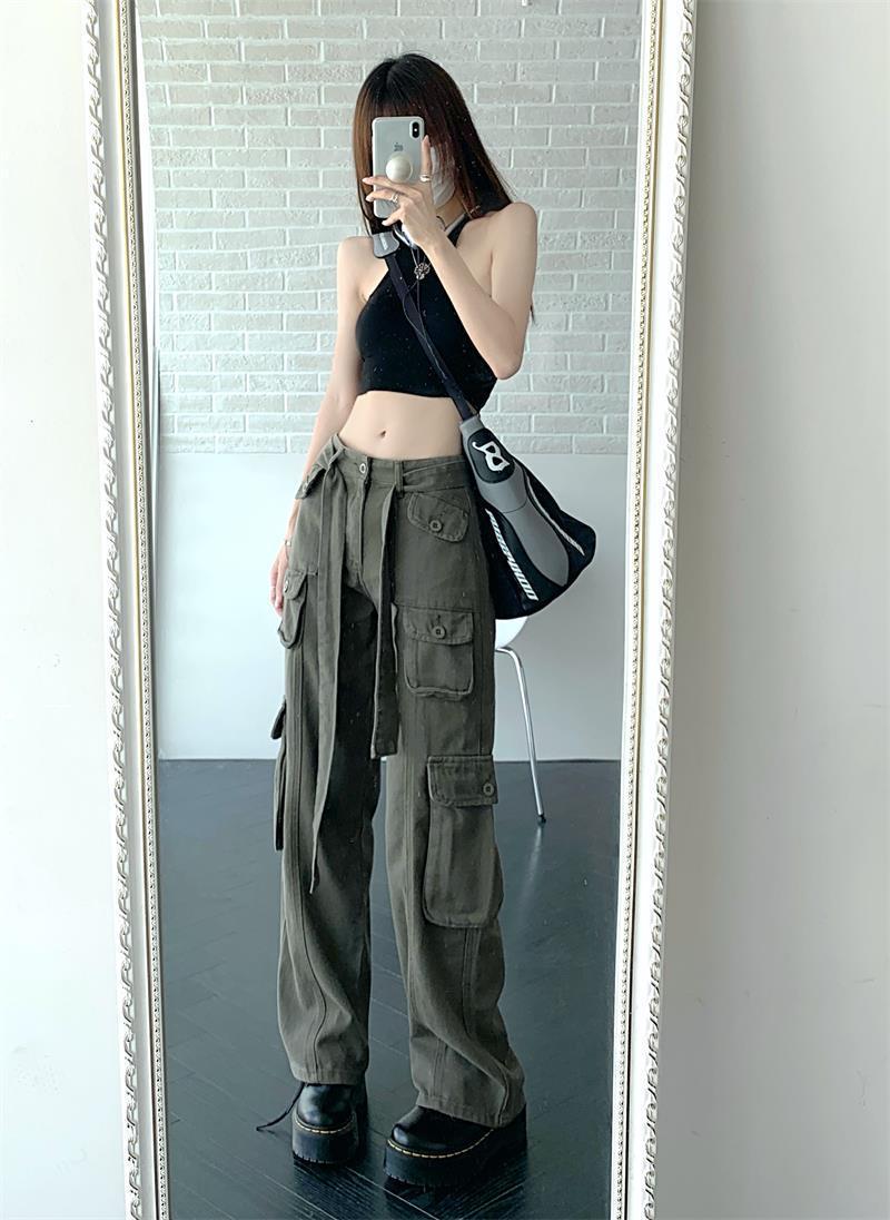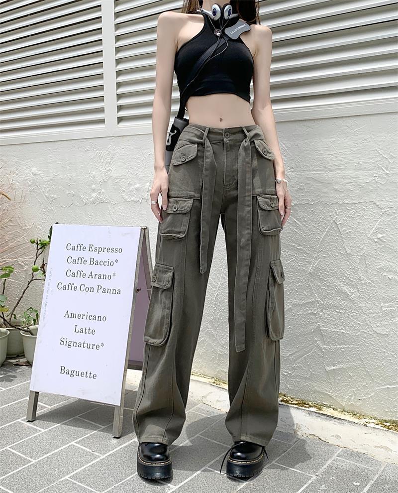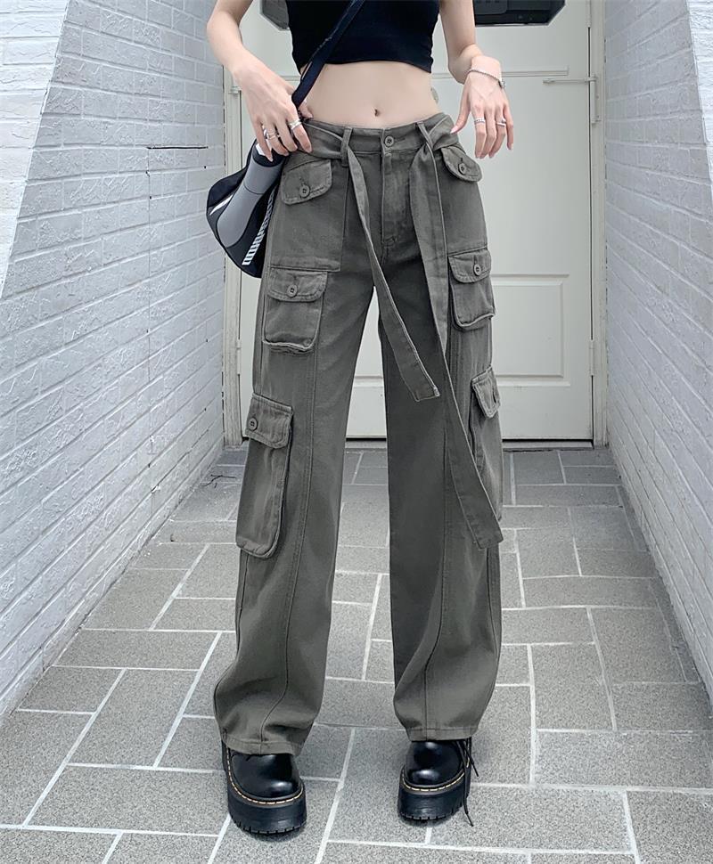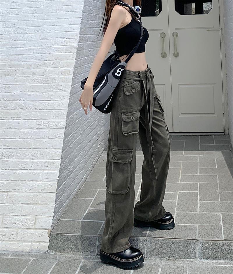 2023 새로운 미국 스타일 레트로 멀티 포켓 오래 된 크라우드 워크 바지 여성용 쿨 스트리트 느슨한 슬리밍 스트레이트 트렌디 팬츠스토어 가기