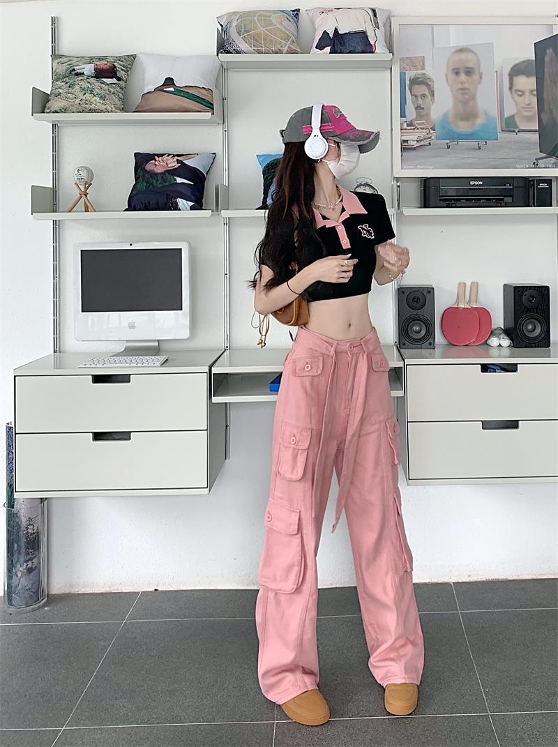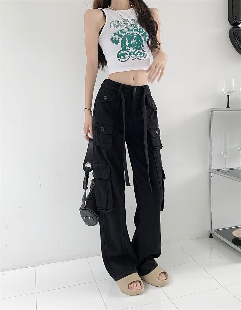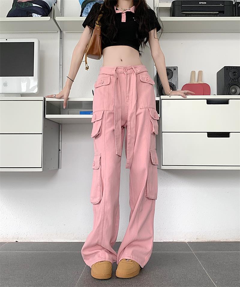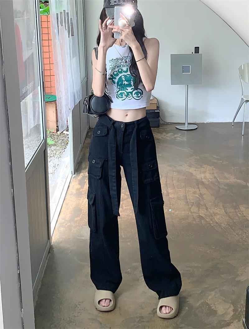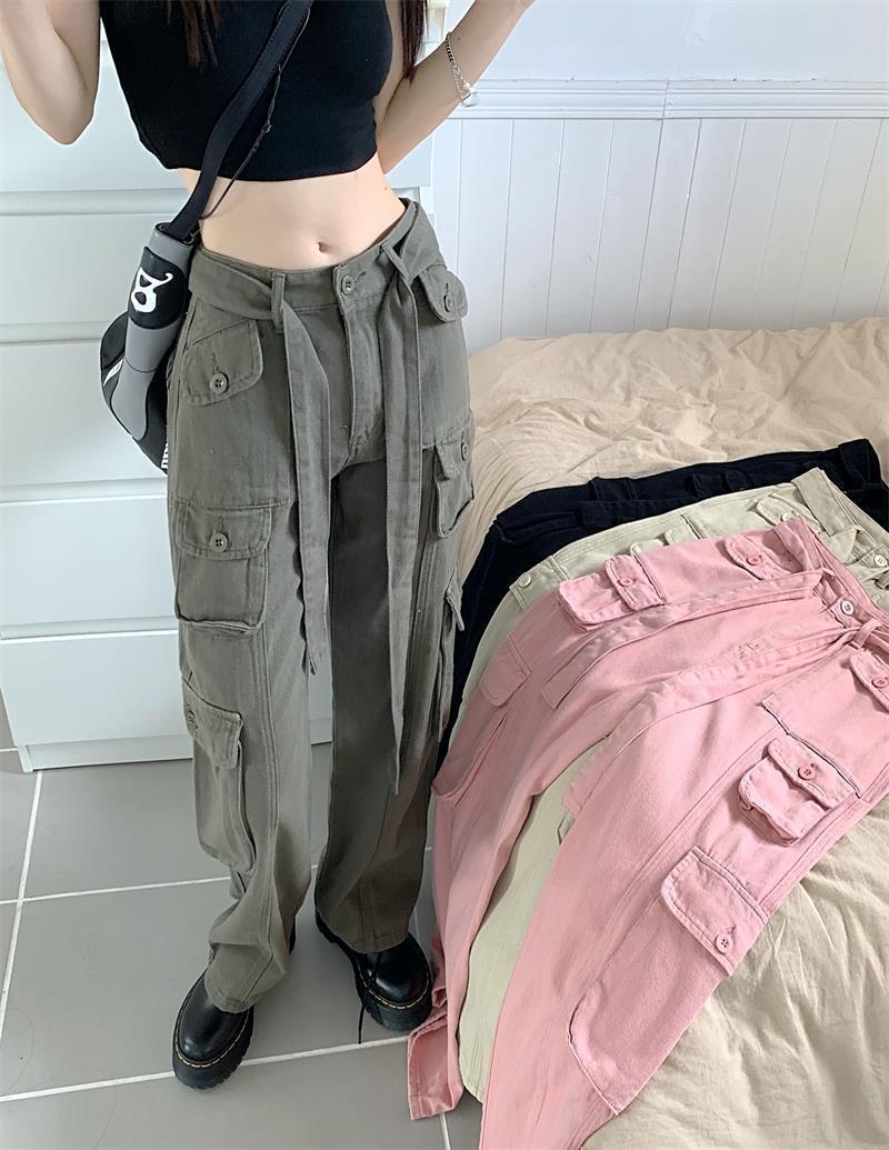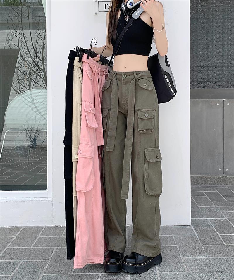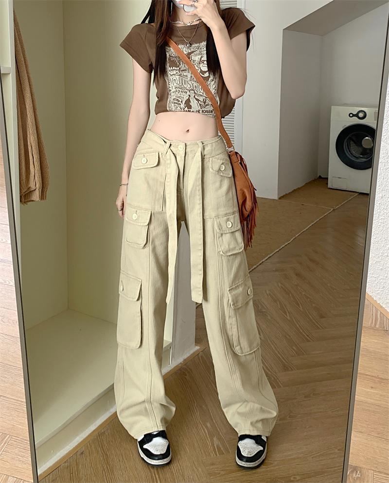 2023 새로운 미국 스타일 레트로 멀티 포켓 오래 된 크라우드 워크 바지 여성용 쿨 스트리트 느슨한 슬리밍 스트레이트 트렌디 팬츠스토어 가기