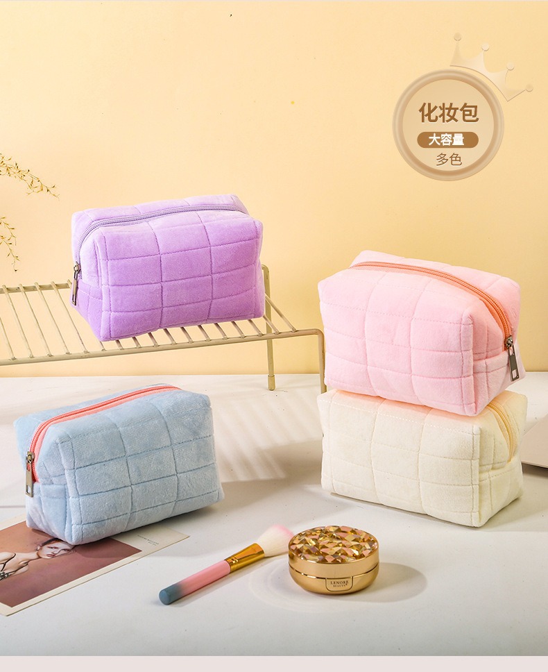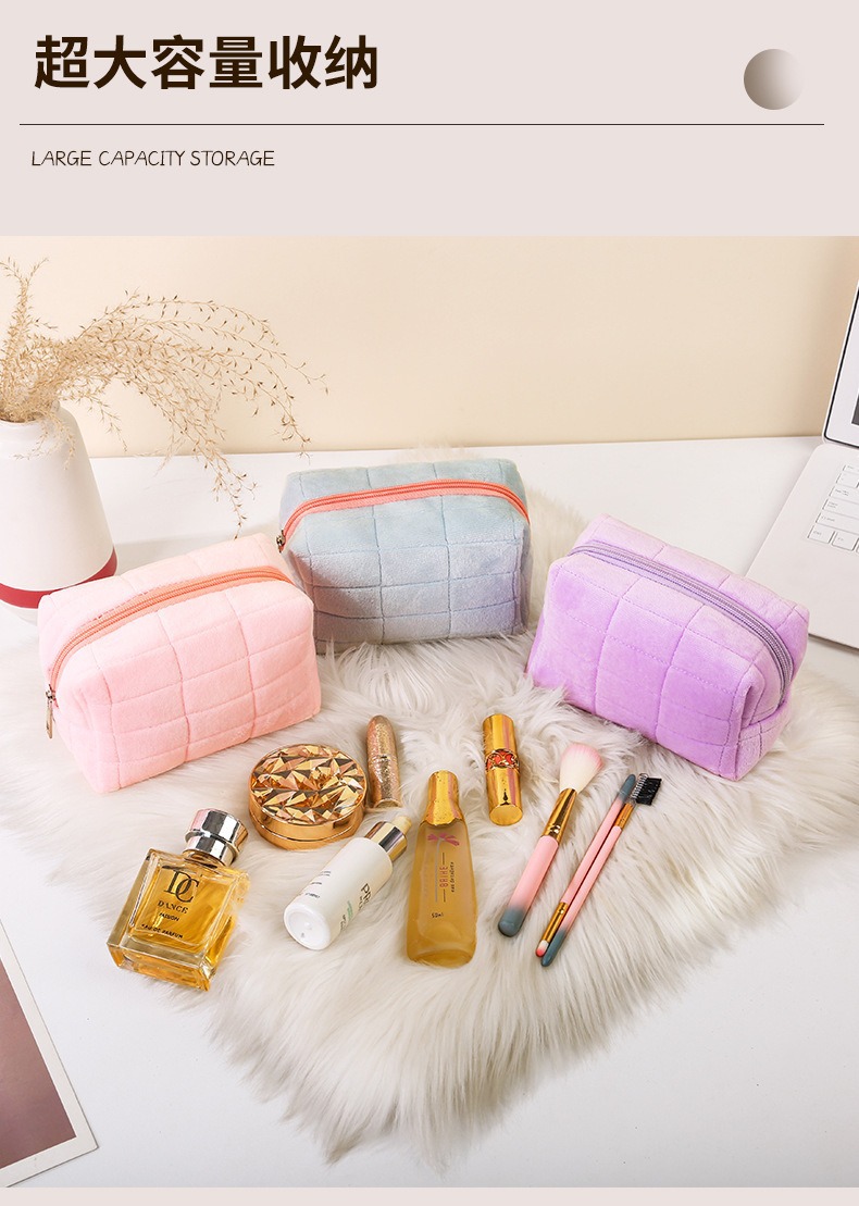 봉제 대형 화장품 가방 여성의 귀여운 높은 색상 퀼트 긴 광장 여행 보관 가방 화장품 세탁 가방스토어 가기