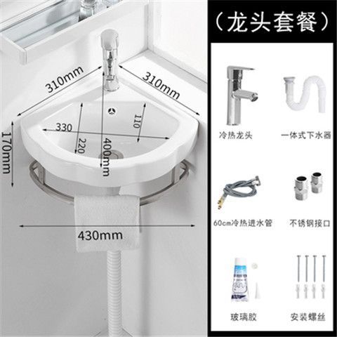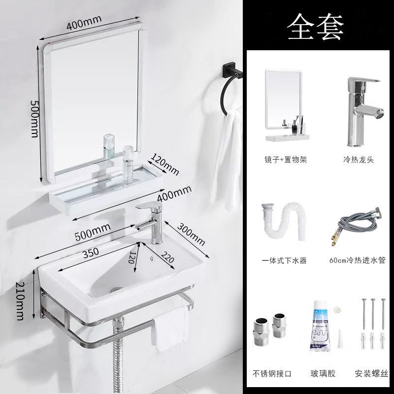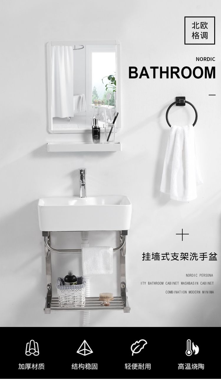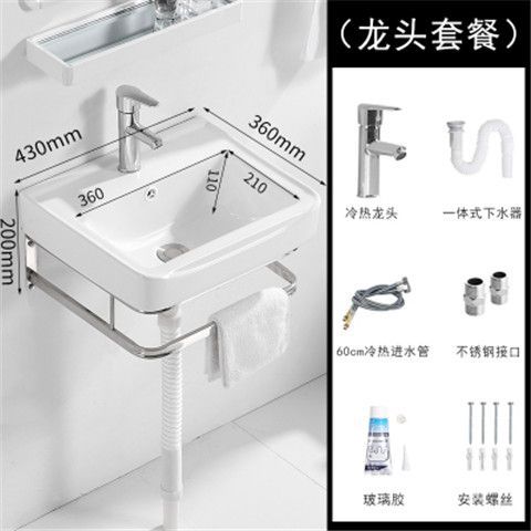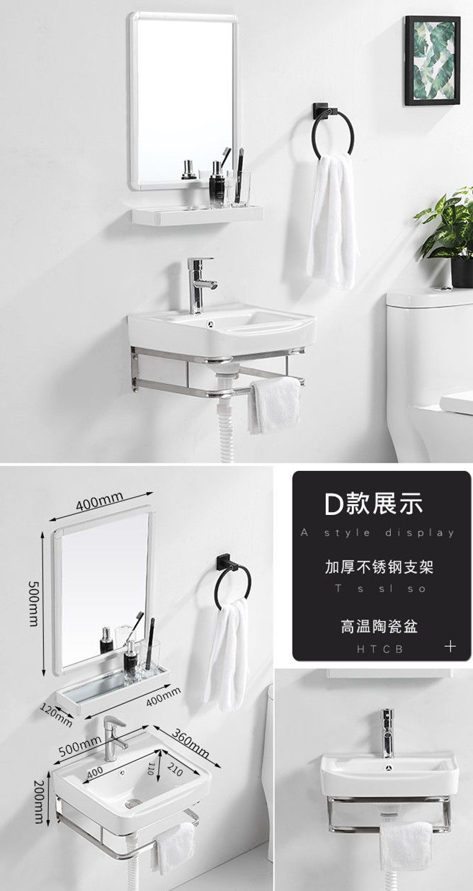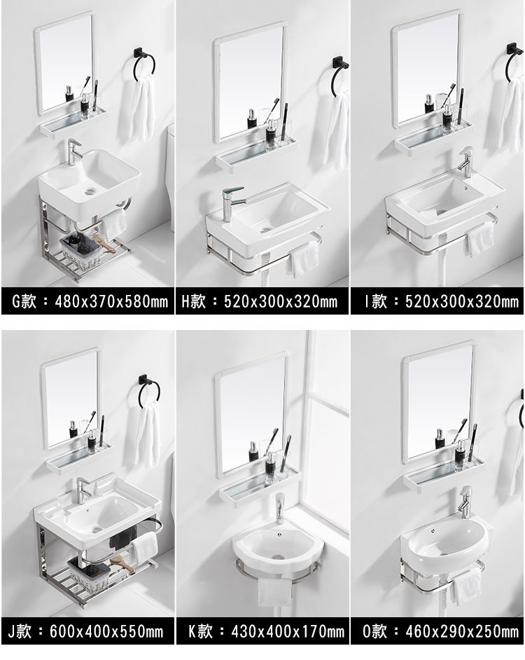 벽걸이형 세면대 스테인레스 스틸 브래킷 세면대 작은 욕실 발코니 세면대 세라믹 세면대