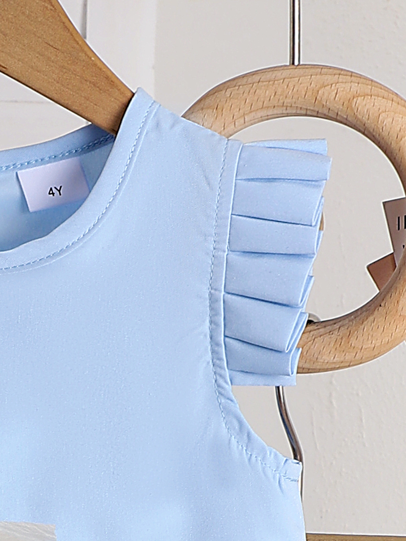 국경 간 유럽과 미국 여름 패션 패션 팬 소녀 세트 중소 규모 어린이 둥근 목 3 차원 꽃 짧은 소매 반바지 투피스 세트