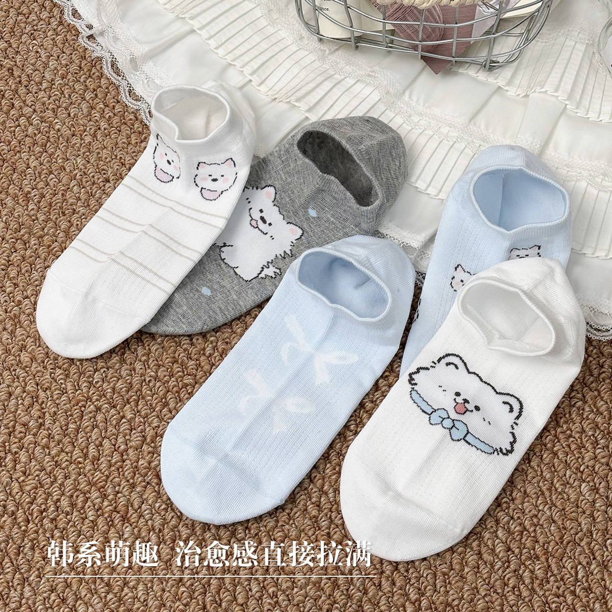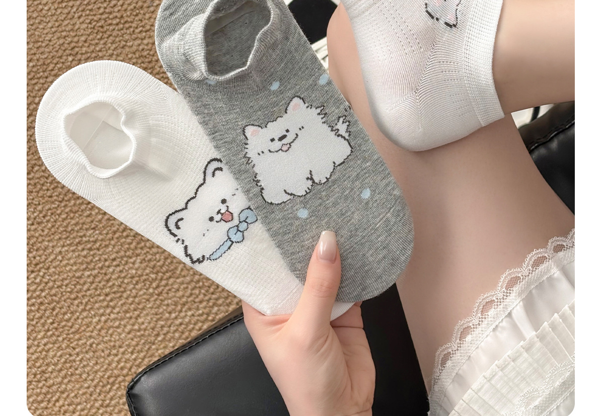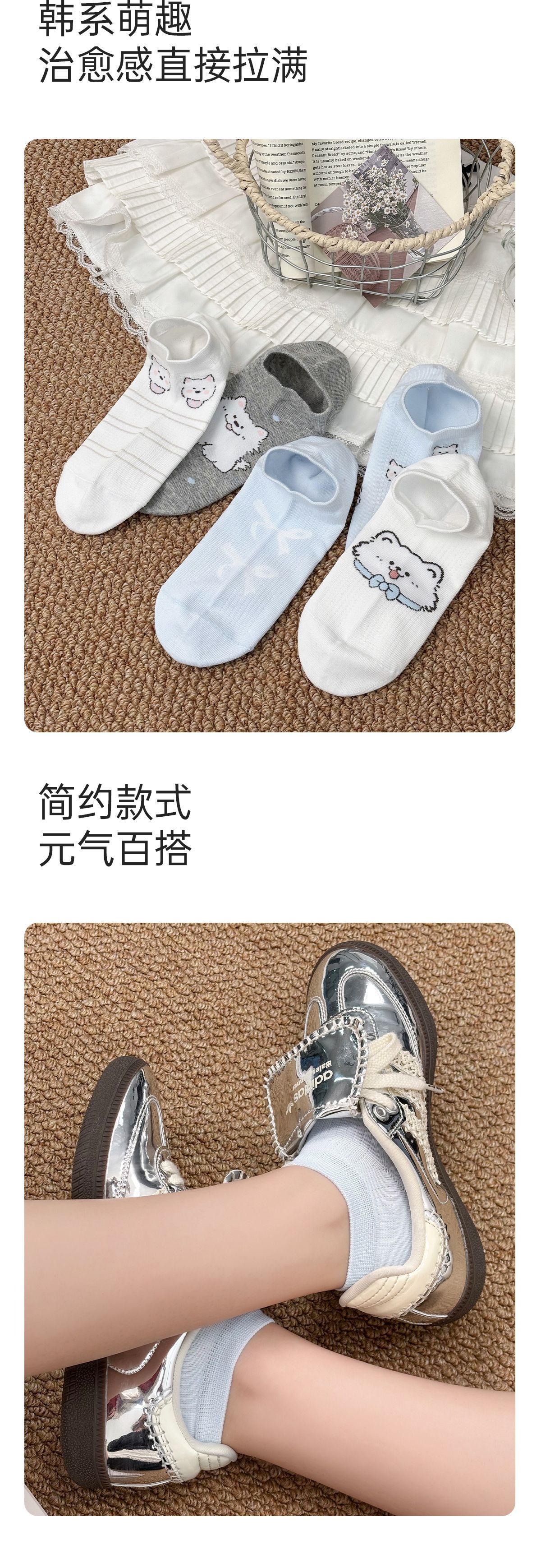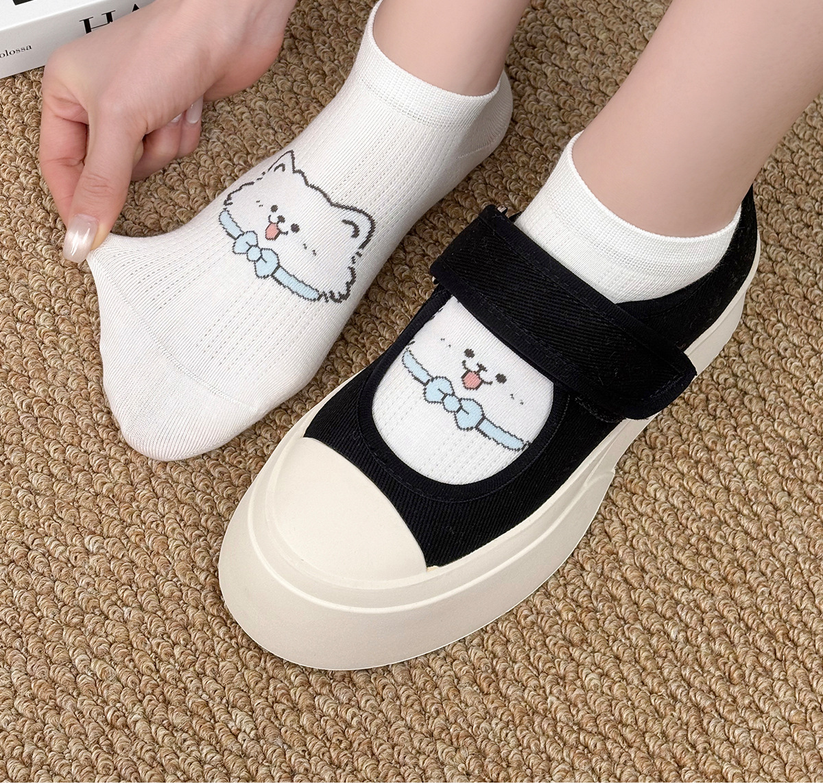 여름 얇은 양말 여성의 귀여운 만화 강아지 보트 양말 낙하 방지 발 뒤꿈치 여성용 대학 스타일 양말스토어 가기