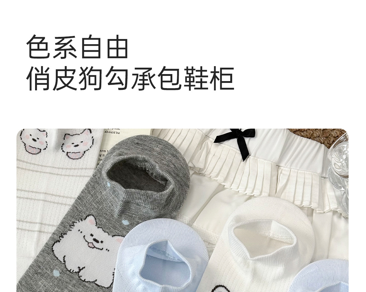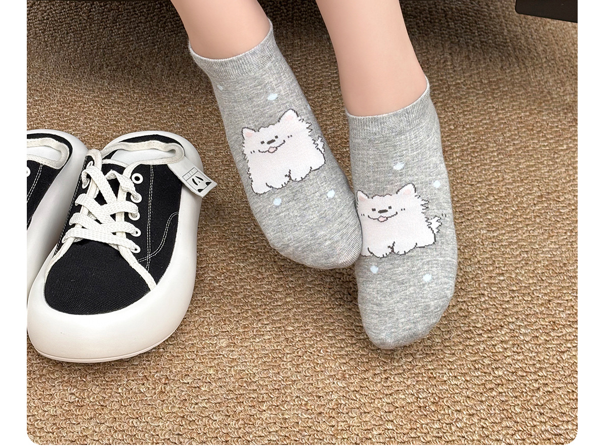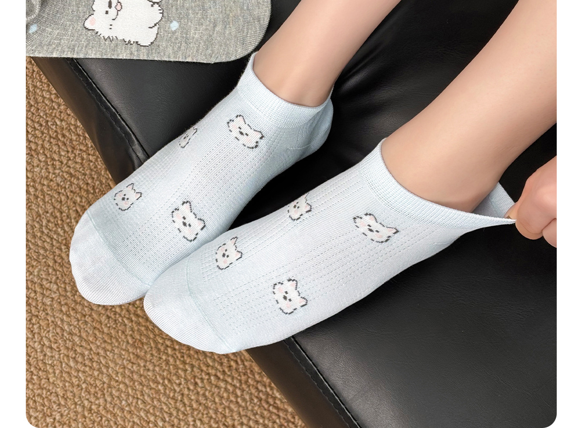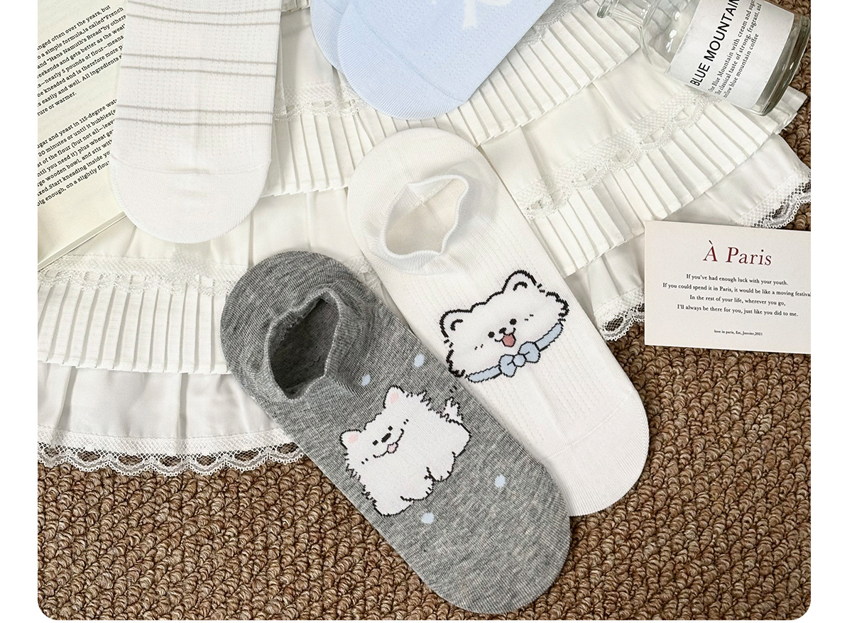여름 얇은 양말 여성의 귀여운 만화 강아지 보트 양말 낙하 방지 발 뒤꿈치 여성용 대학 스타일 양말스토어 가기