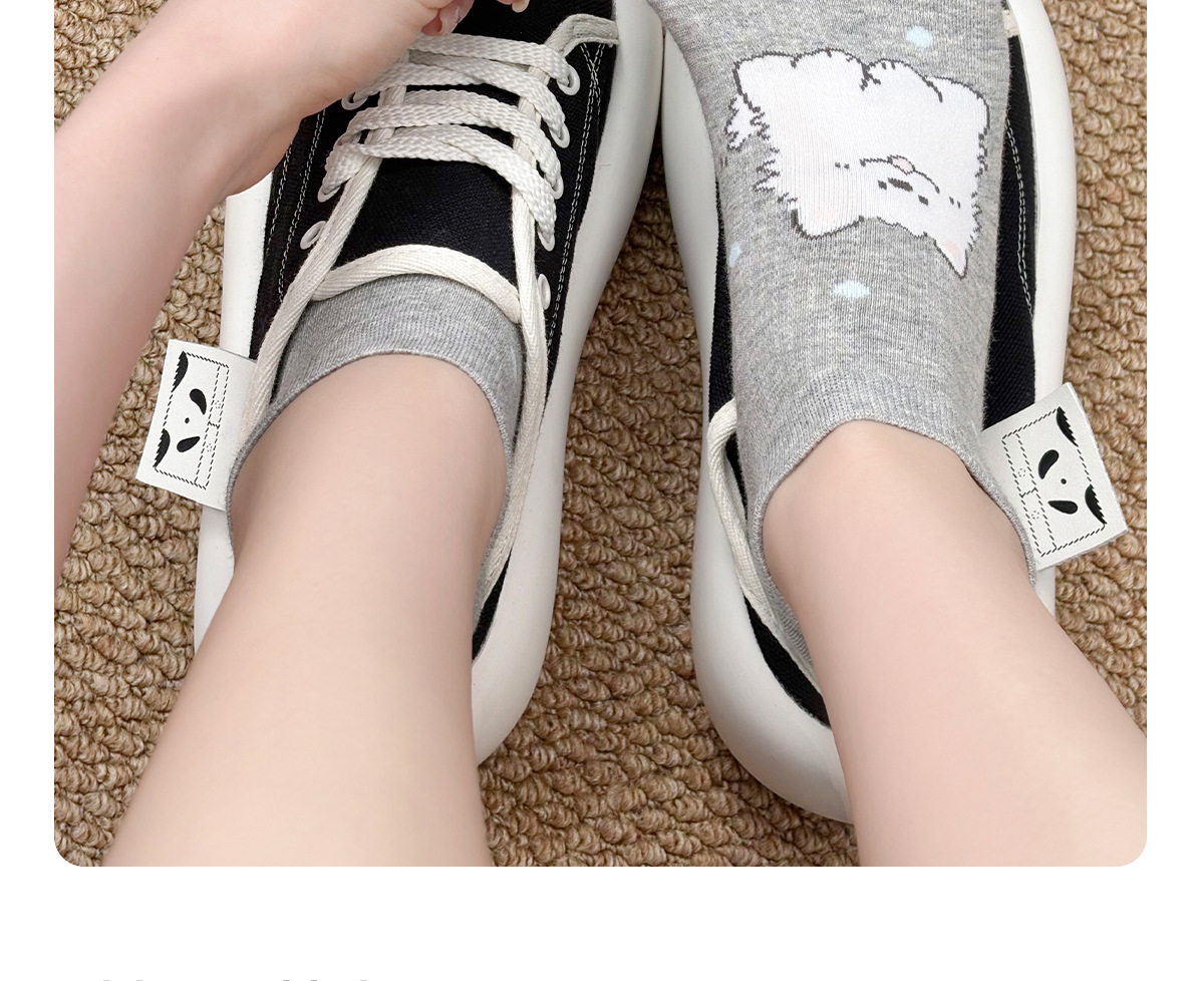 여름 얇은 양말 여성의 귀여운 만화 강아지 보트 양말 낙하 방지 발 뒤꿈치 여성용 대학 스타일 양말