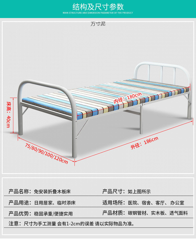 낮잠용 접이식 침대, 접이식 싱글 침대, 가정용 낮잠용 간이 간병인 임대 주택 철제 침대, 간단한 휴대용 낮잠 침대
