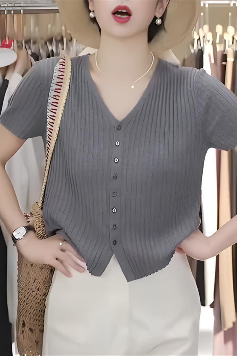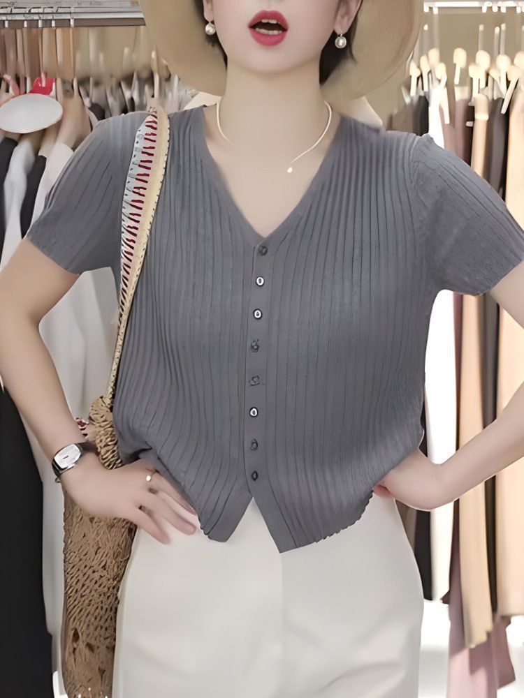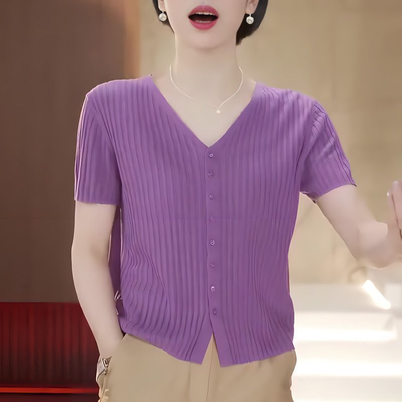 [팩토리 아울렛] 솔리드 컬러 V 넥 루즈 슬림 우아한 니트 카디건 티셔츠 여성 2025 뉴 여름 패션