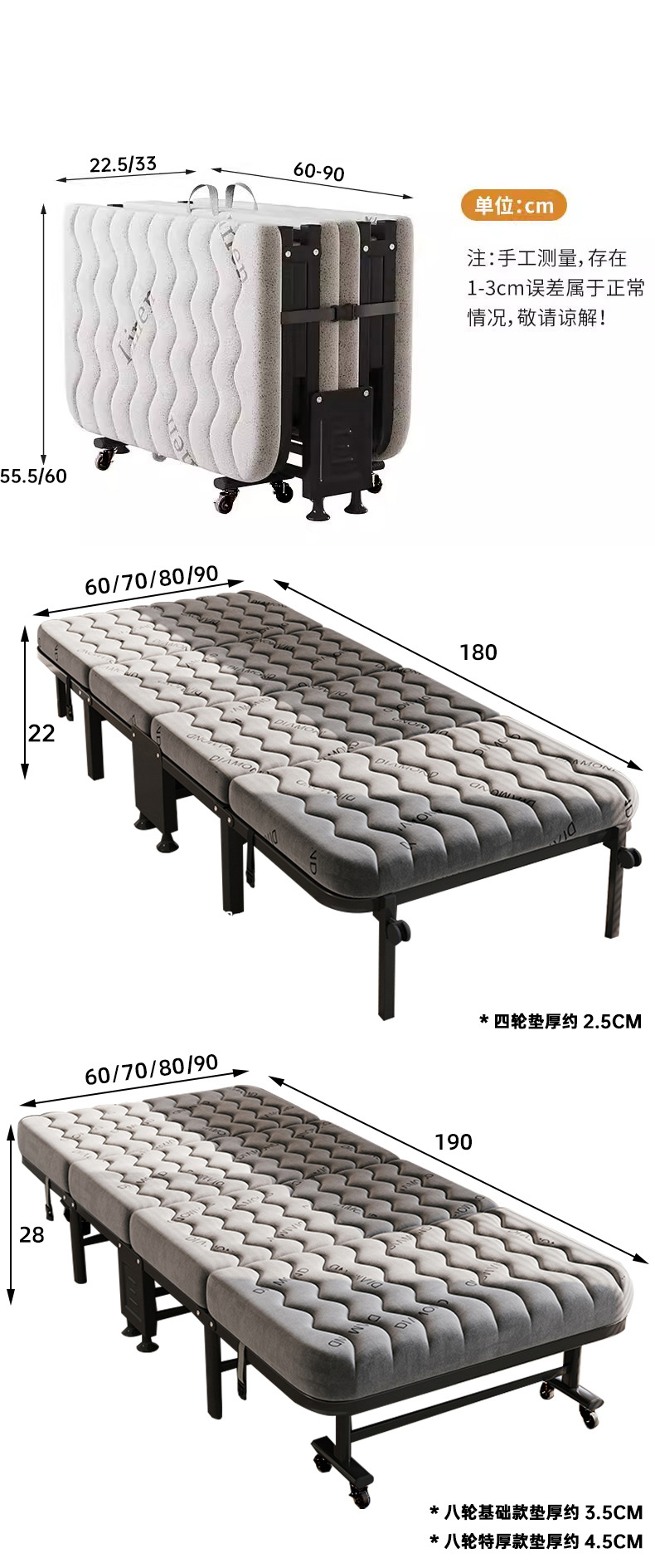 • 물결무늬 4륜 스펀지형 180x80CM 매트리스 두께 3CM