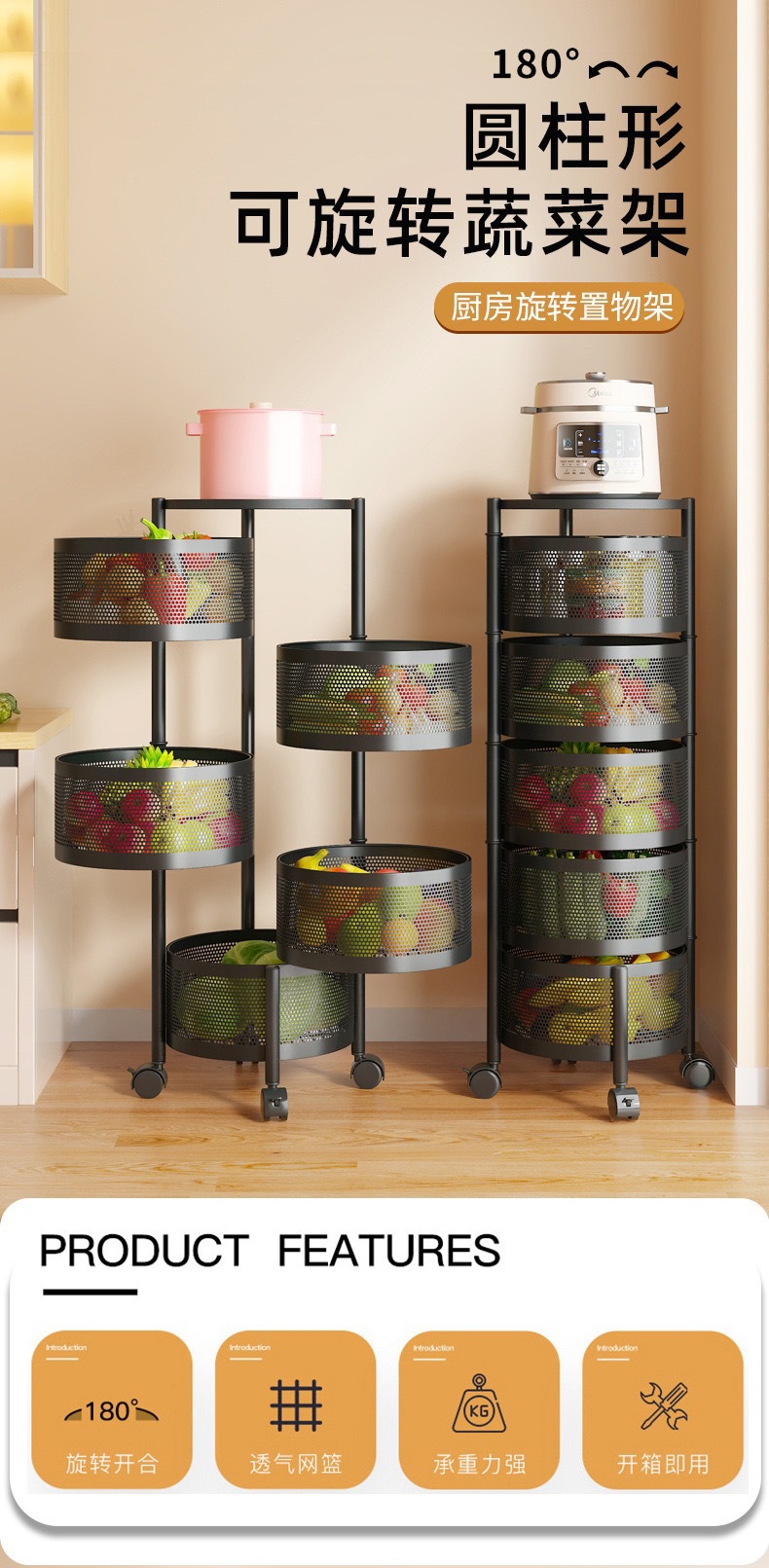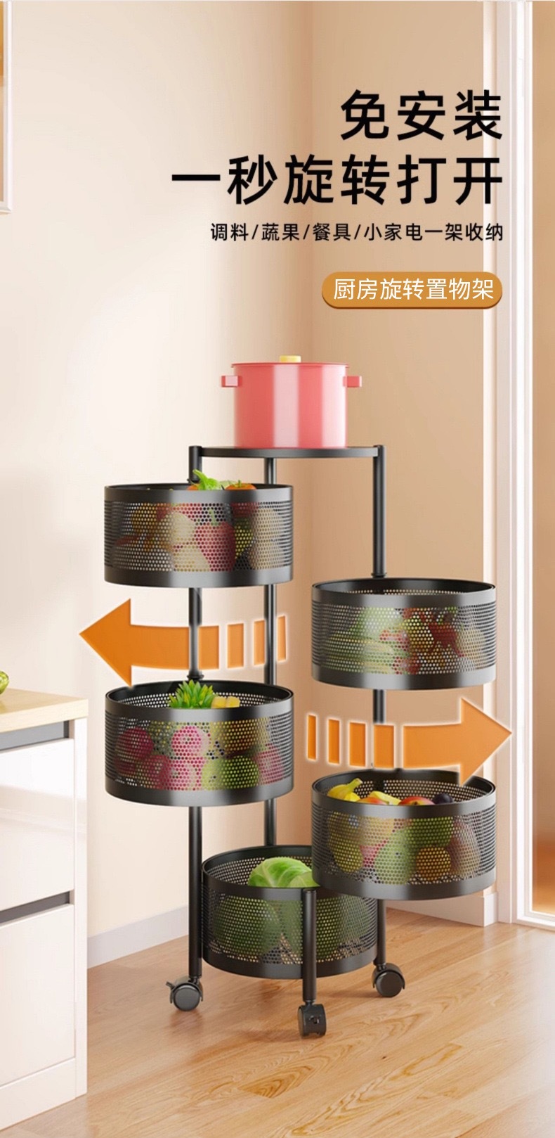 맞춤형 주방 회전 스토리지 랙 홈 플로어 스탠딩 거실 스토리지 랙 스낵 장난감 과일 및 야채 스토리지 랙
