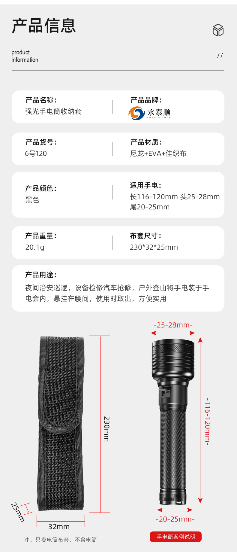 휴대용 손전등 보호 케이스 야외 등산 손전등 보관 허리 가방 나일론 소재 탄성 손전등 케이스 도매스토어 가기