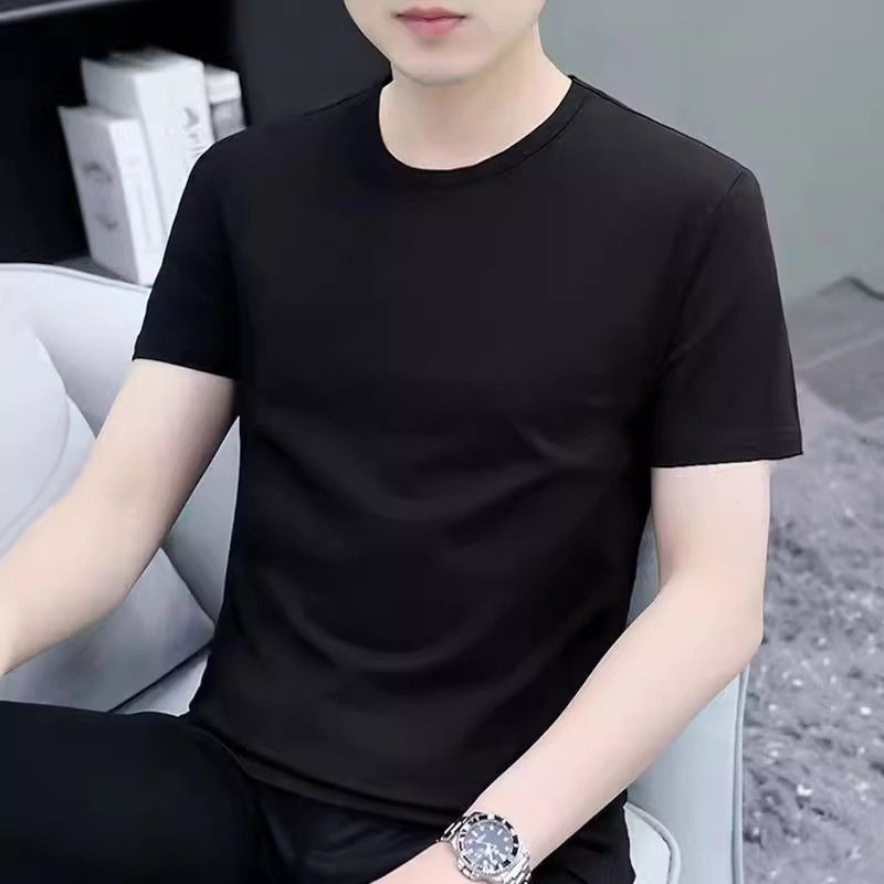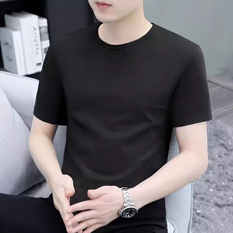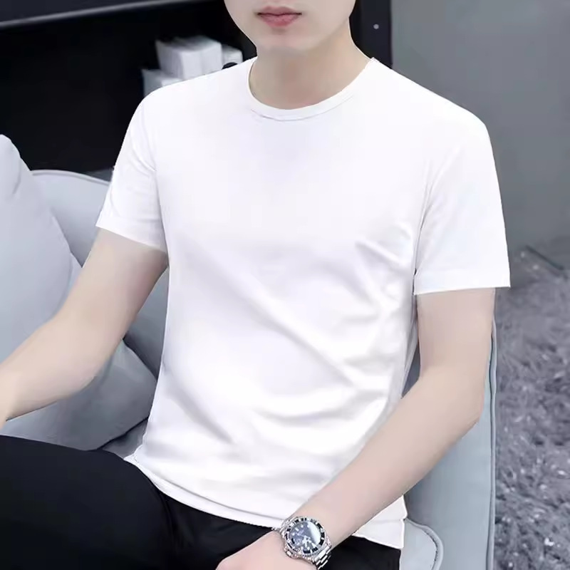 남성 여름 심플 반팔 티셔츠 클래식 다목적 솔리드 컬러 밀크 실크 티셔츠 화이트 반팔 셔츠 탑스토어 가기
