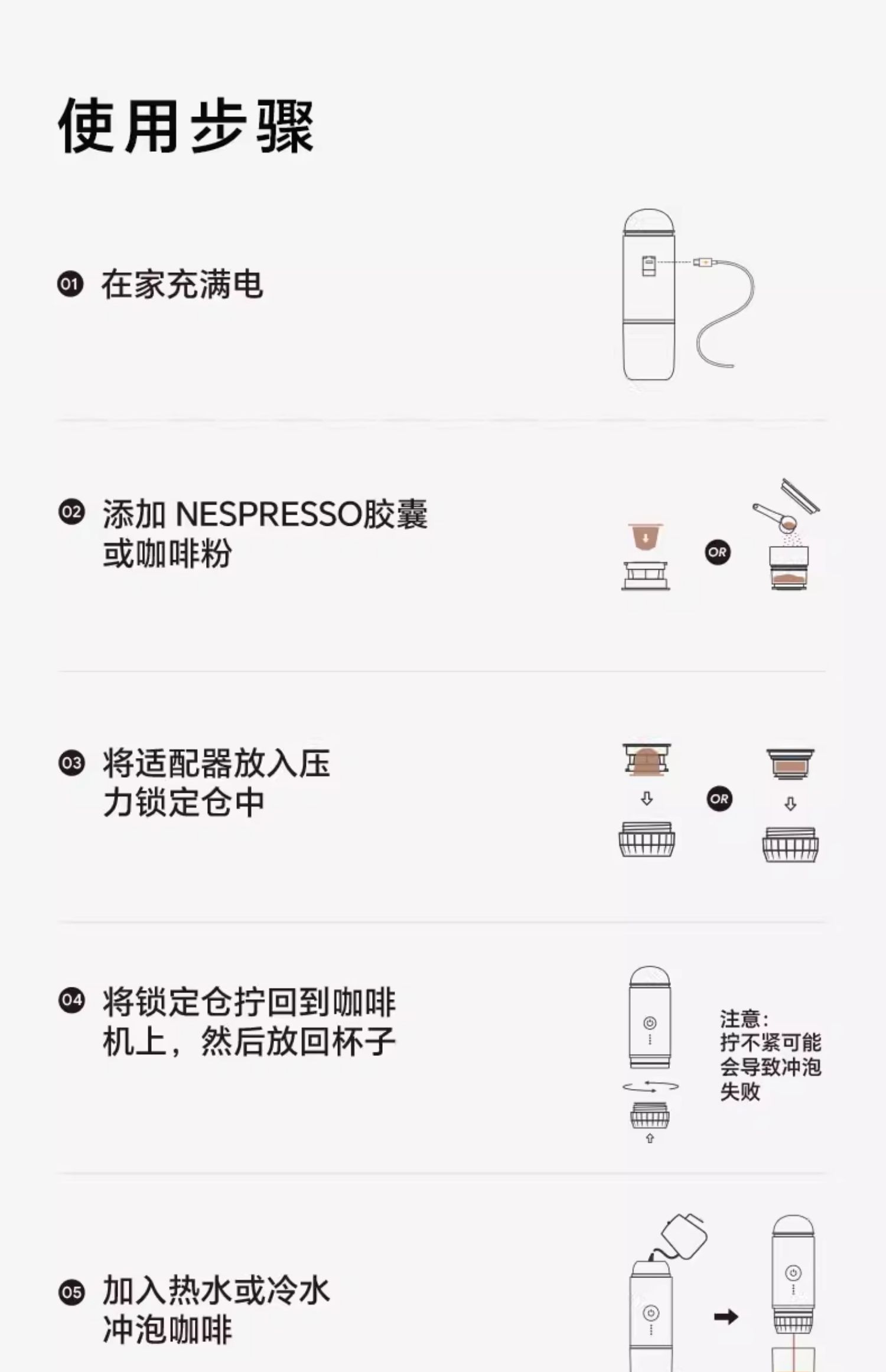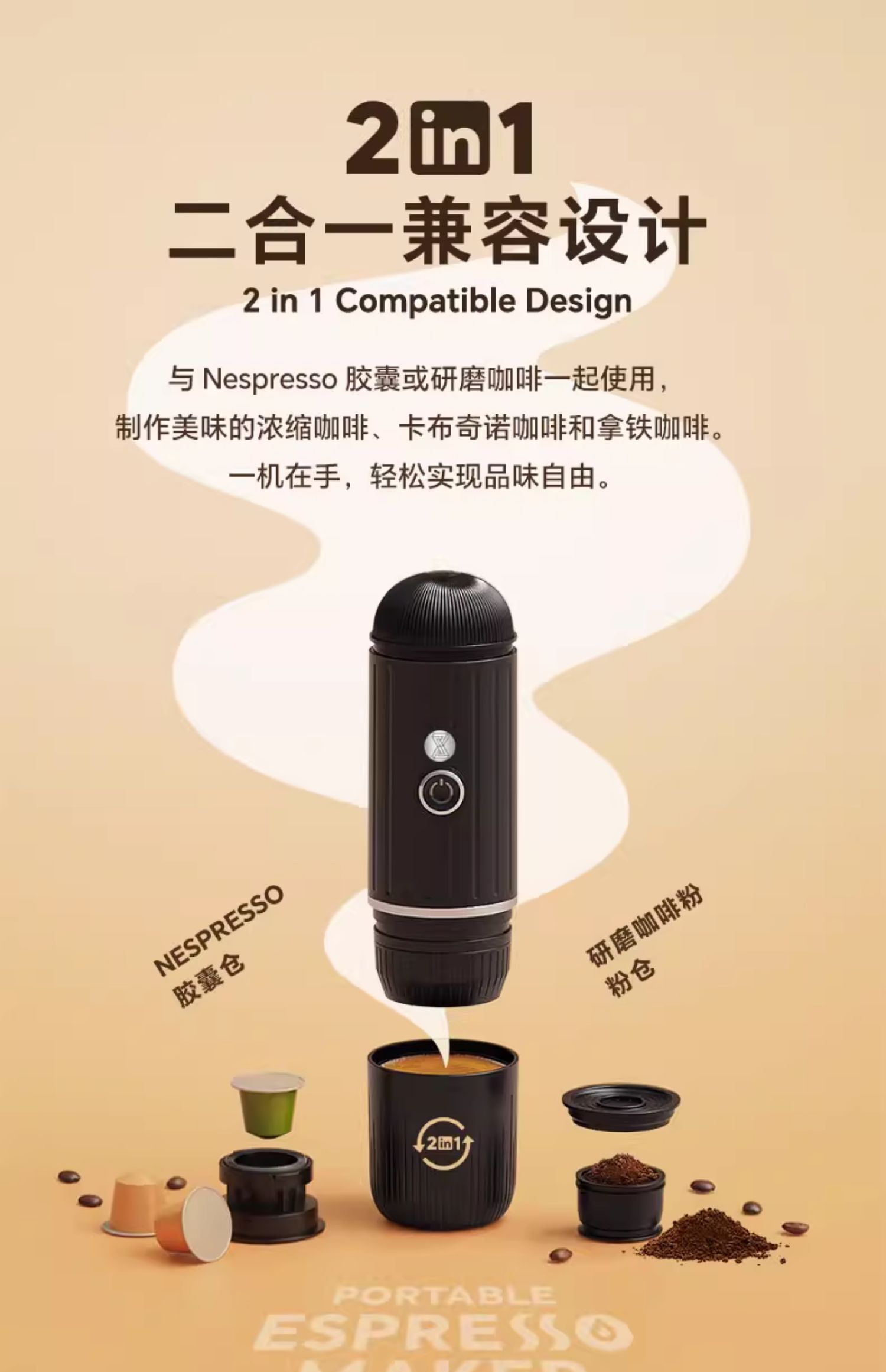 • 펄 화이트 무선 난방 모델| 캡슐 커피 파우더 겸용| 파우더 공급 스푼 + R30 핸드 그라인더