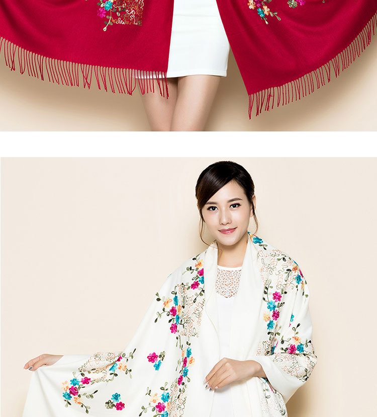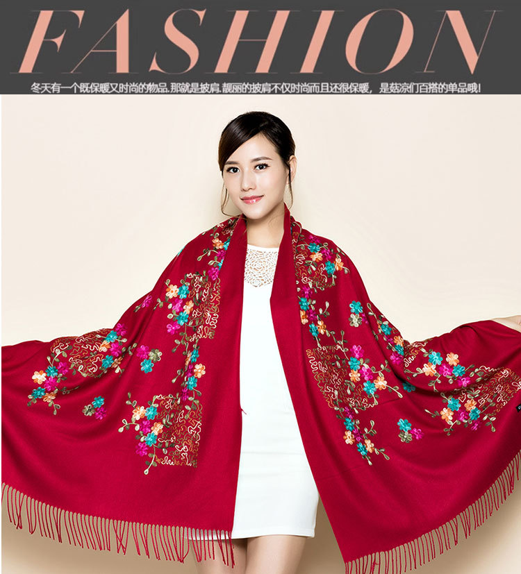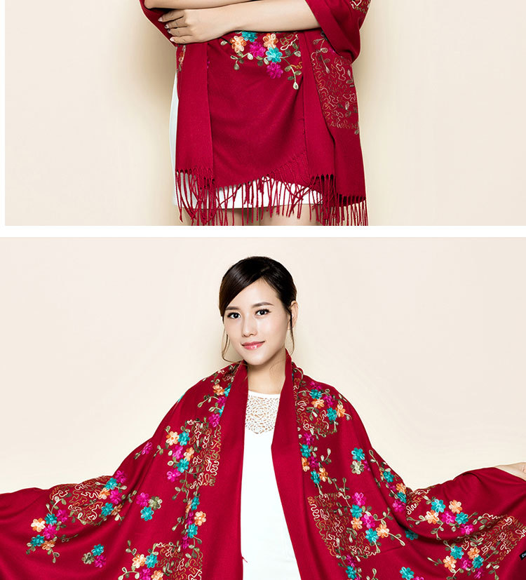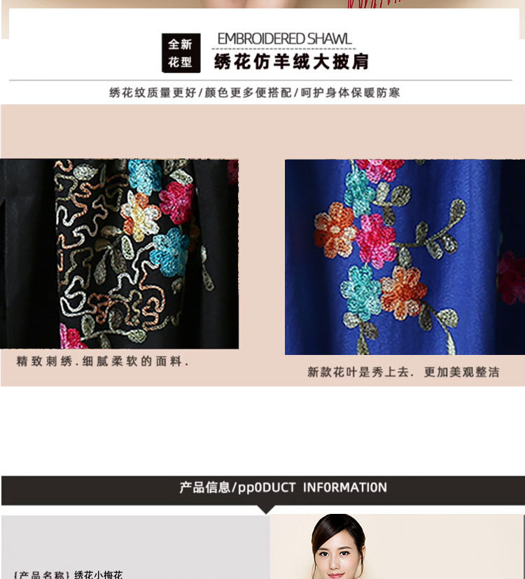 300g 작은 매화 자수 꽃 스카프 모조 캐시미어 목도리 여성 민족 스타일 여행 망토 새해와 휴일을 따뜻하게 유지스토어 가기