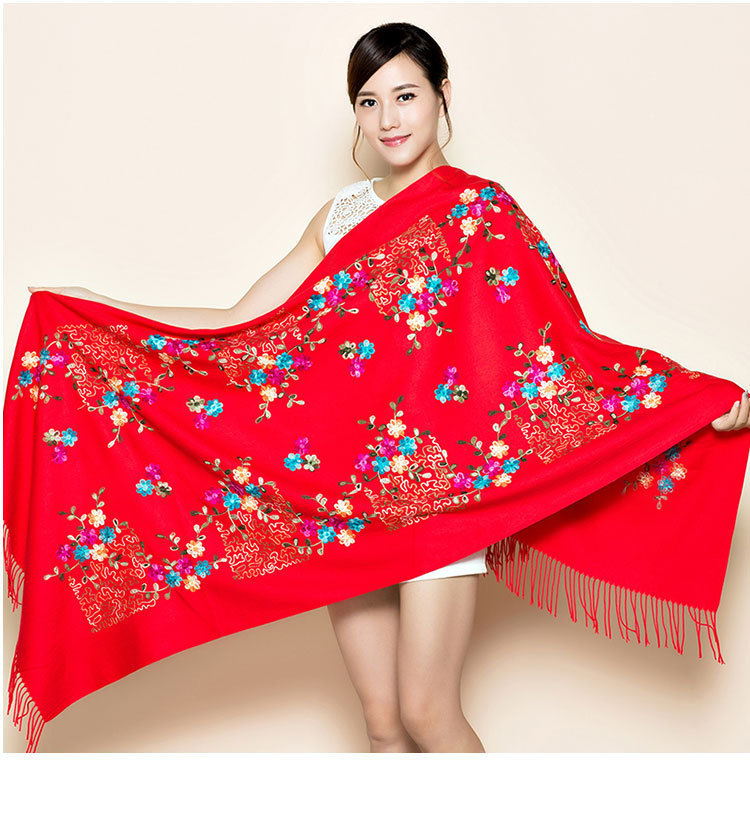 300g 작은 매화 자수 꽃 스카프 모조 캐시미어 목도리 여성 민족 스타일 여행 망토 새해와 휴일을 따뜻하게 유지